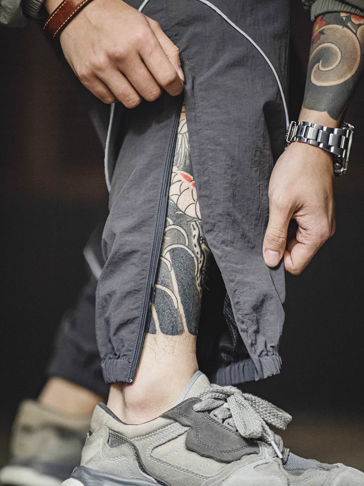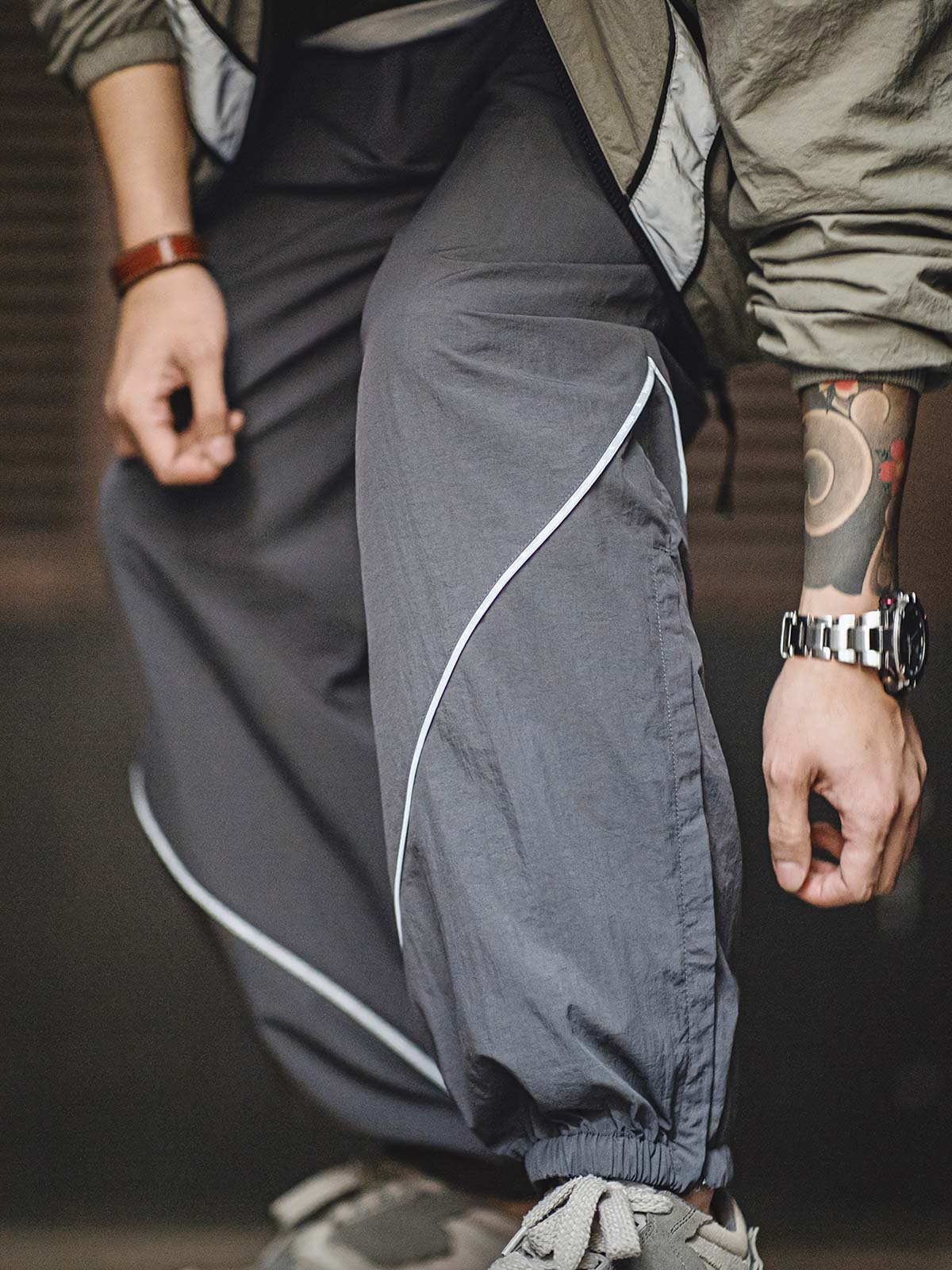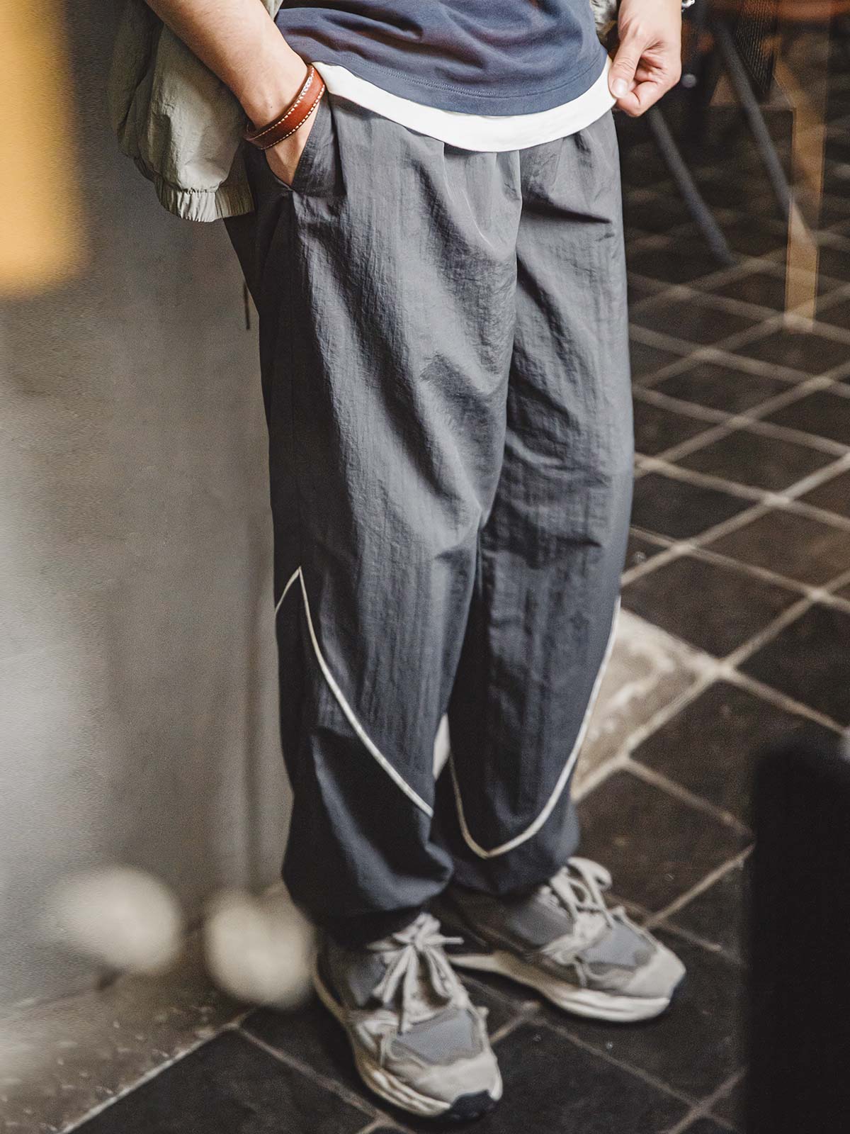 1980年代にフィットネスとストリートファッションの垣根を越えたトラックパンツは、カジュアルウェアの象徴として現代に受け継がれています。シンプルながらも洗練されたデザインで、スポーツの世界だけでなく、日常のファッションアイテムとしても確固たる地位を築きました。