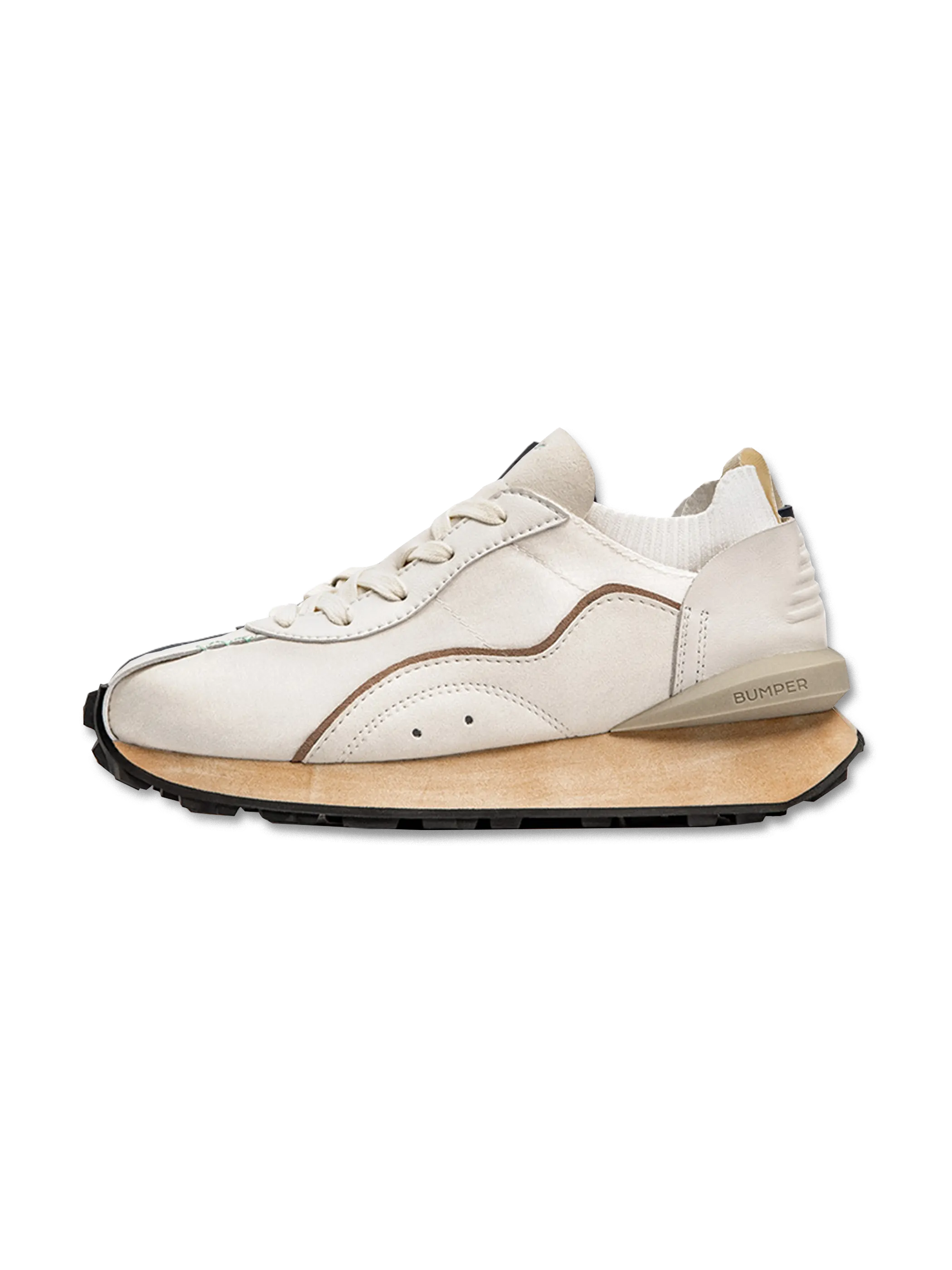 また、アウトソールにはクラシックなバンパーデザインを取り入れ、衝撃吸収性とクッション性を向上。ウォーキングや軽いランニングはもちろん、日常のカジュアルコーデにも映える一足です。