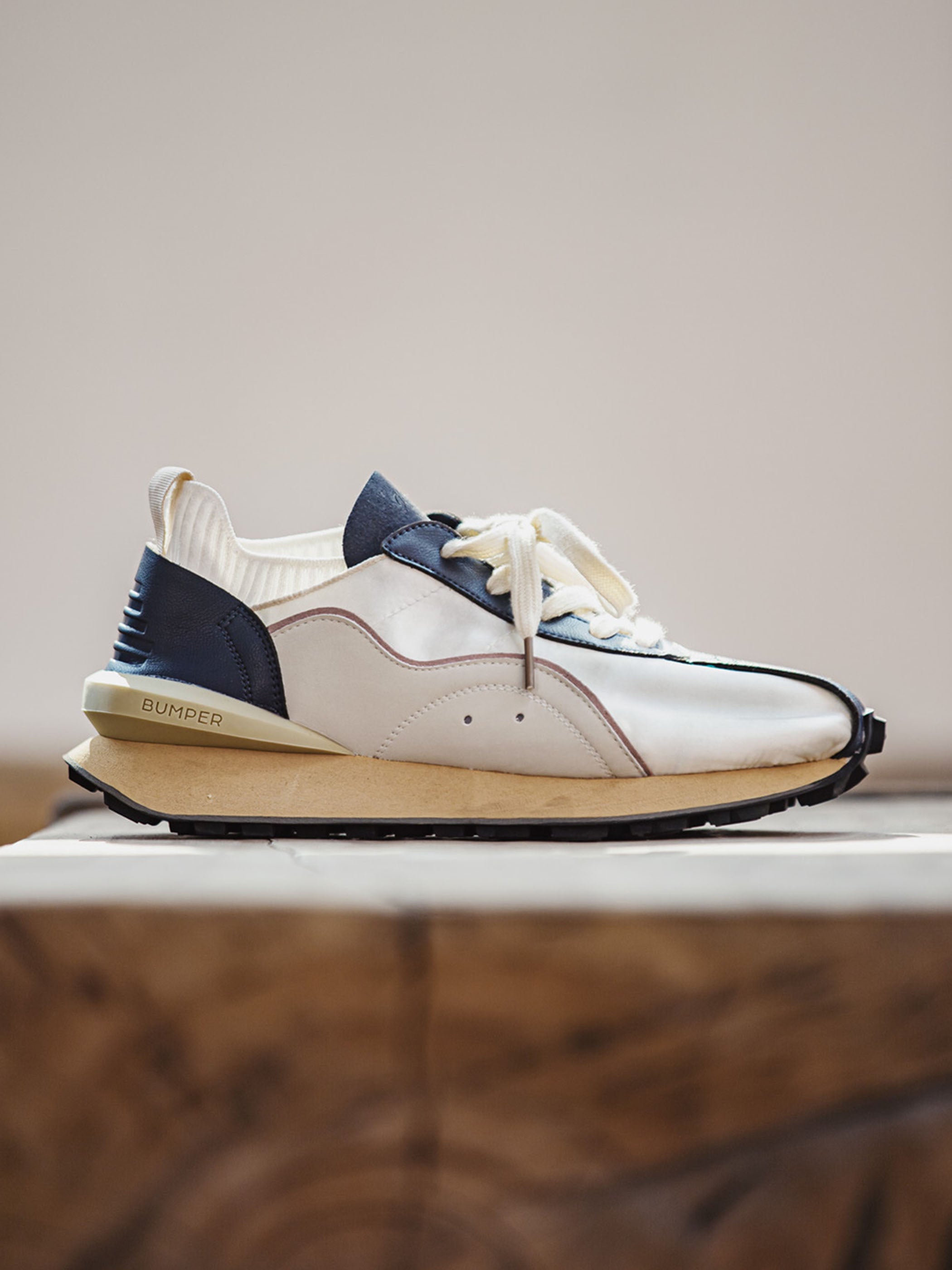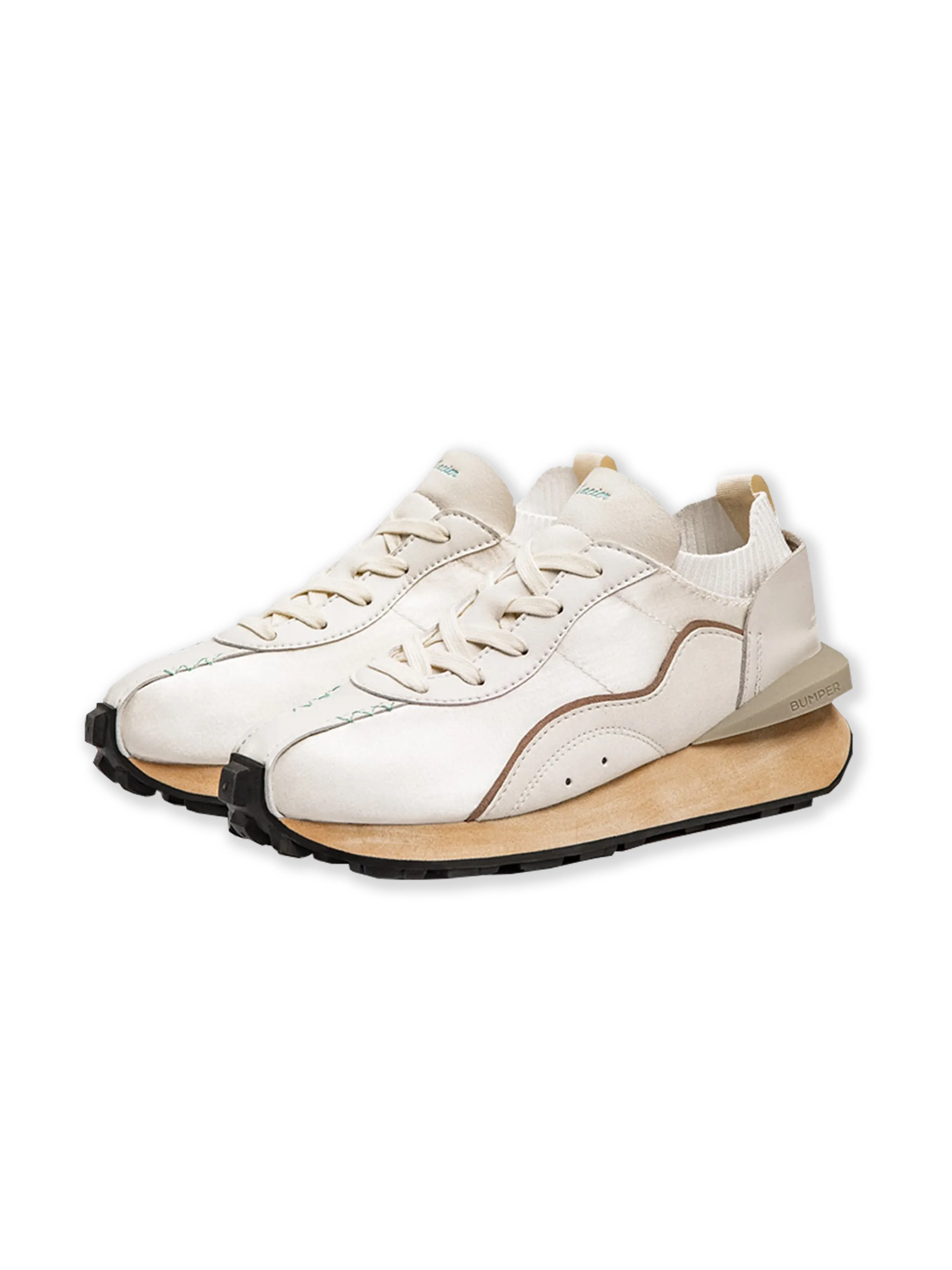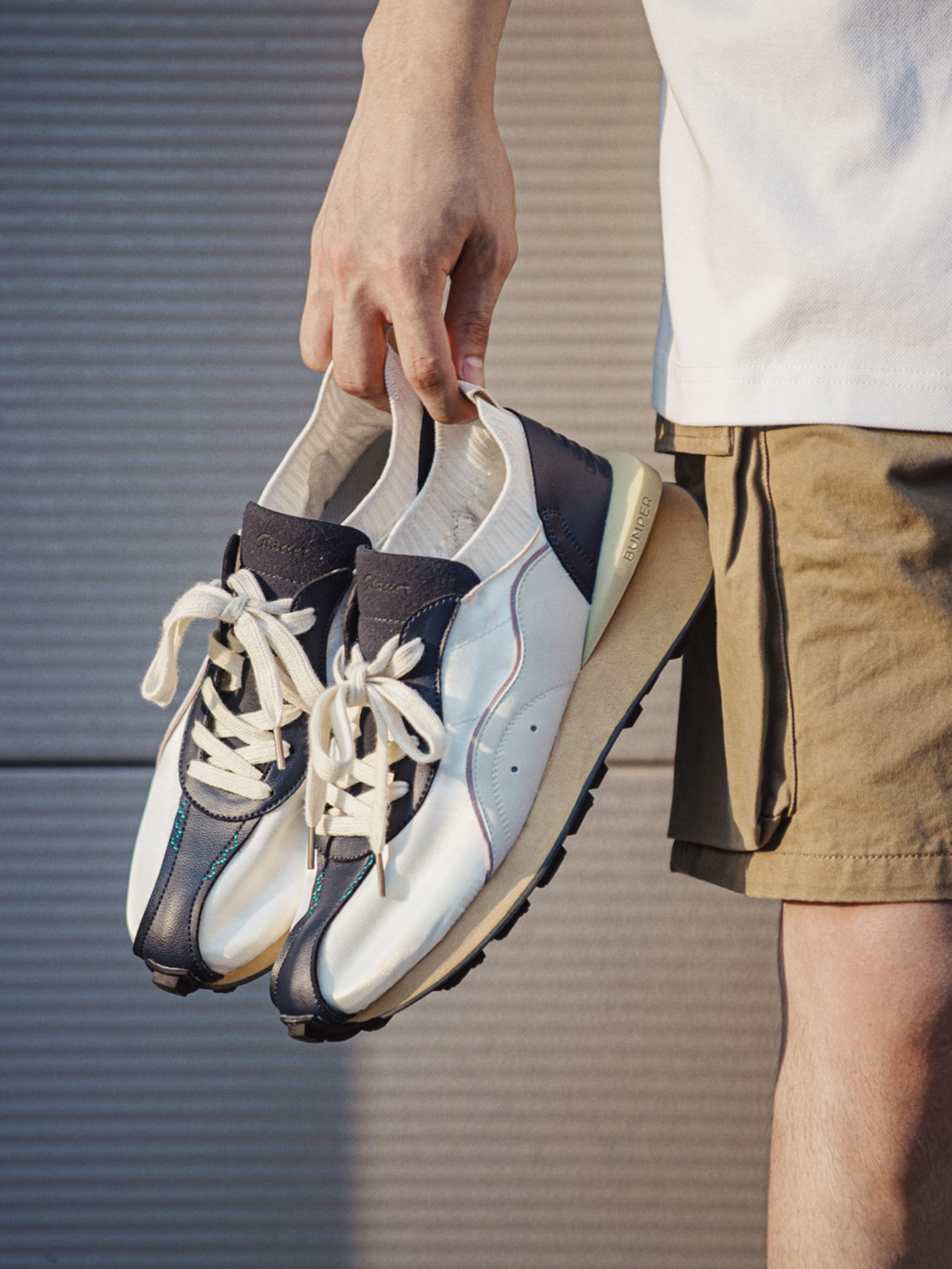アイスシルクライニング×シルク調サテンの組み合わせで、軽量&通気性抜群のヴィンテージランニングシューズ。