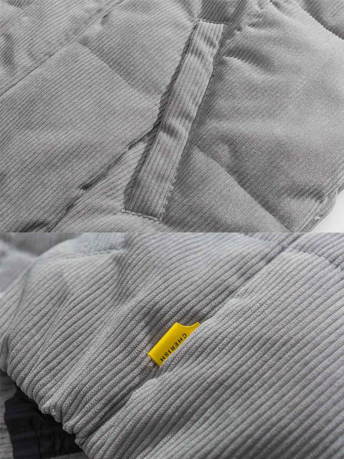 このベストの斜めポケットデザインは、便利で実用的でありながら、全体のカジュアルなスタイルを強調しています。コーデュロイ素材はレトロな感触を加え、ダウンの利点は軽量で暖かいニーズを満たしています。