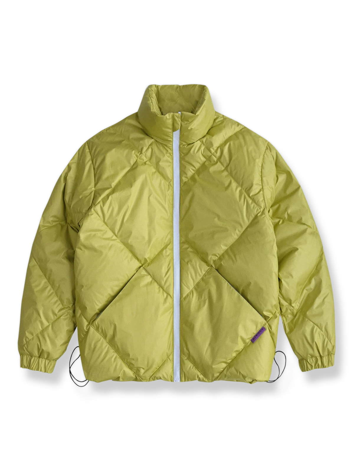 ジャケットの素材と詰め物は、保温性を提供しつつ軽量であることを目指しています。イエローの生地は、曇天時の視認性を高める助けとなる可能性があり、幾何学的なパターンは活動的な感覚を加えています。袖口と裾の締まったリブは、体温の維持と快適さを高めるのに役立ちます。