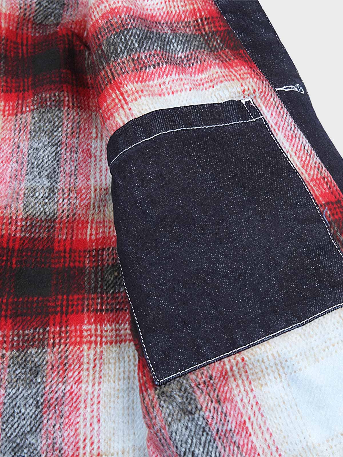 厳選された綿素材は快適さと耐久性を提供し、コーデュロイのパッチワーク襟は細部の美しさを加えます。内側のチェック柄素材と20%のウール混紡は、綿の服に匹敵する保温性を提供します。