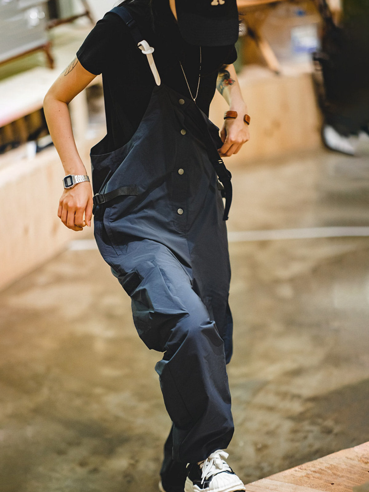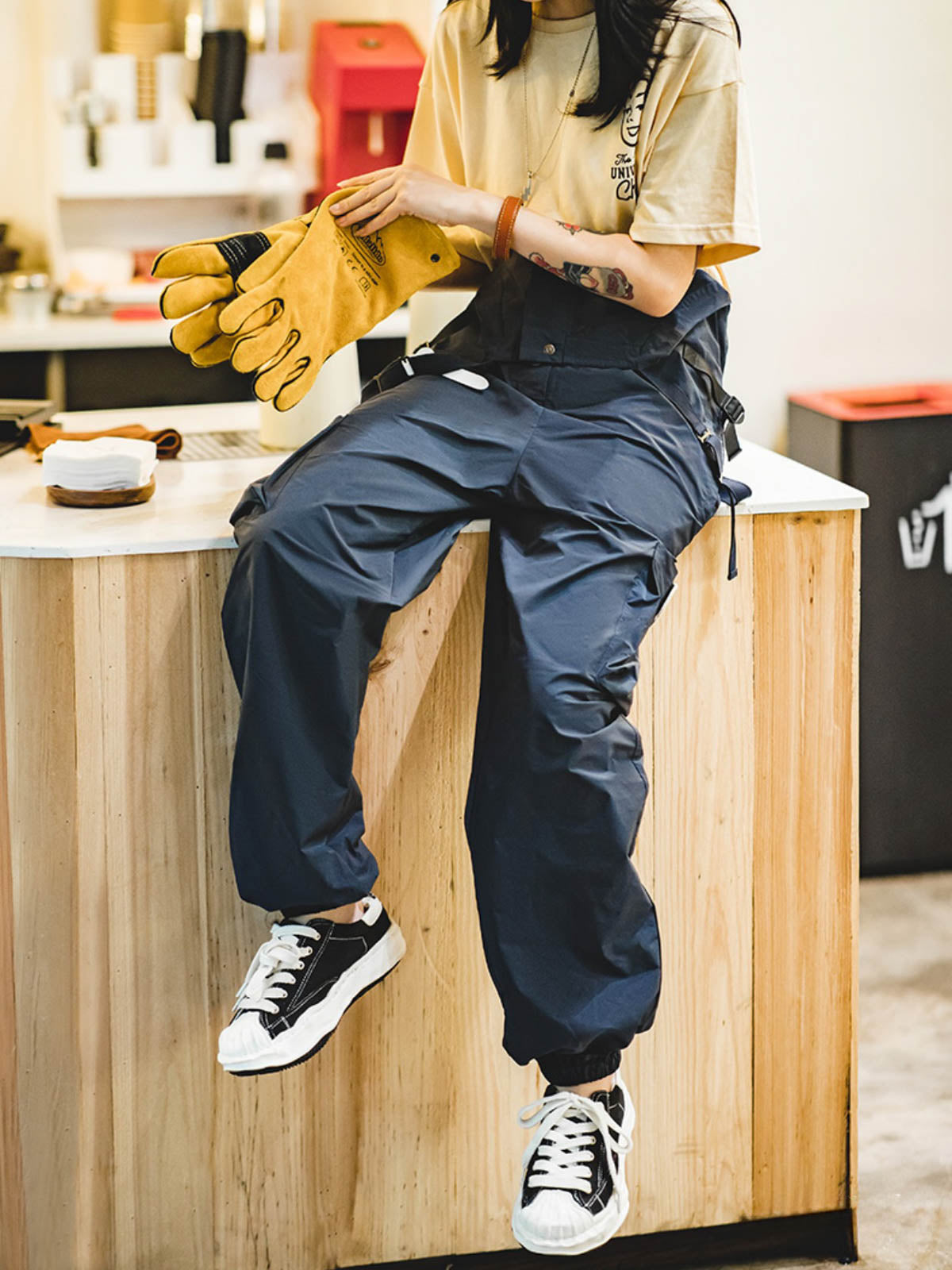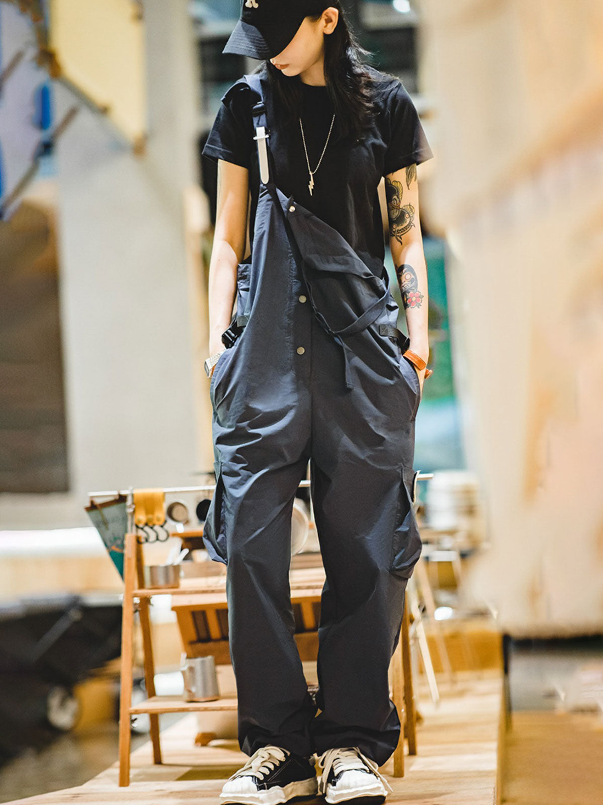 このオーバーオールは100%ポリエステル素材を使用し、軽量で通気性が高く、シワになりにくいのが特徴です。表面には防水加工が施され、さまざまな天候に対応可能です。ゆったりとしたデザインで、極めて高い快適さと動きやすさを提供し、リラックスした山系ファッションを演出します。キャンプや都市での日常使用に最適で、都会とアウトドアを行き来するスタイリッシュなアイテムです。