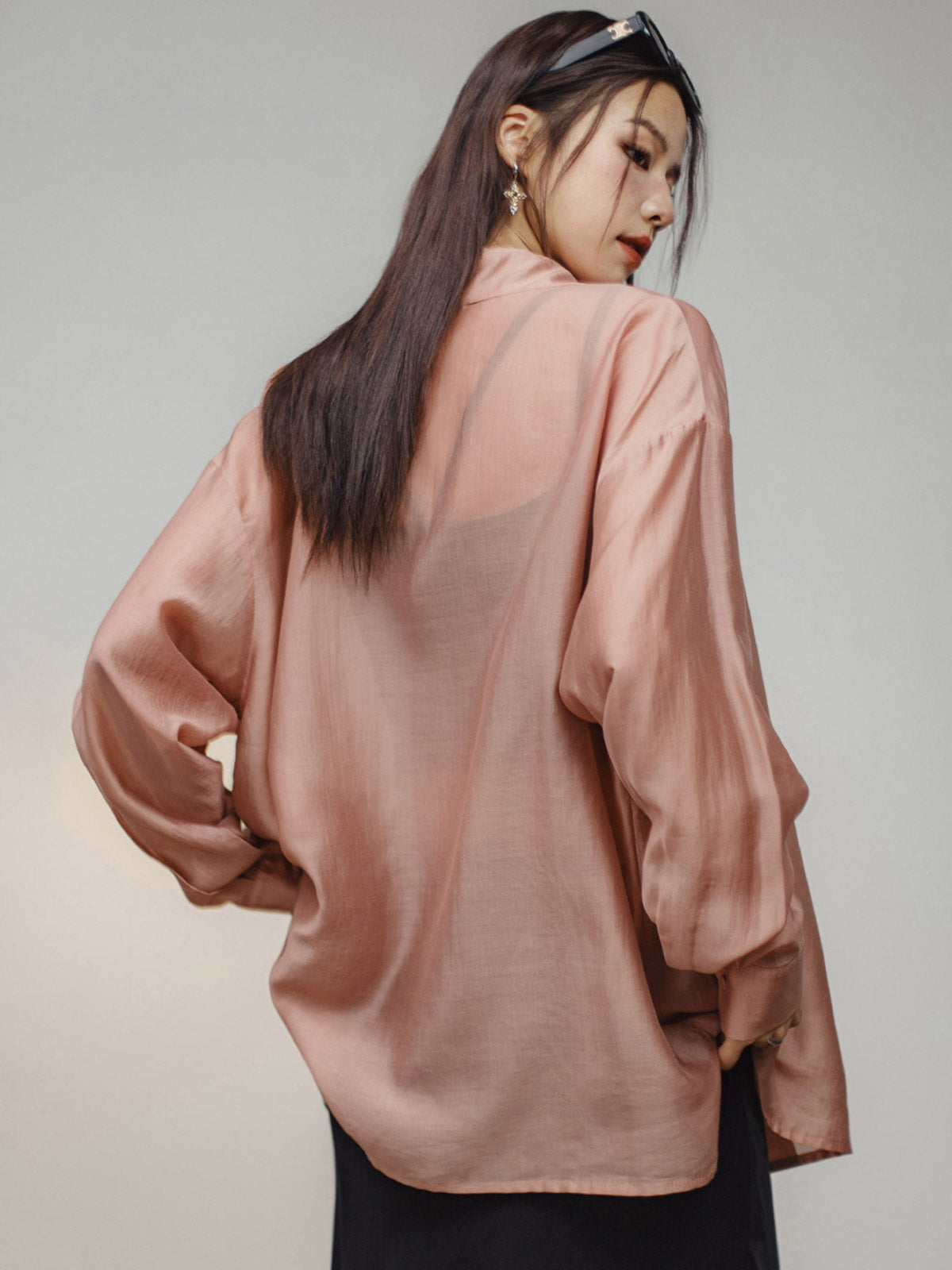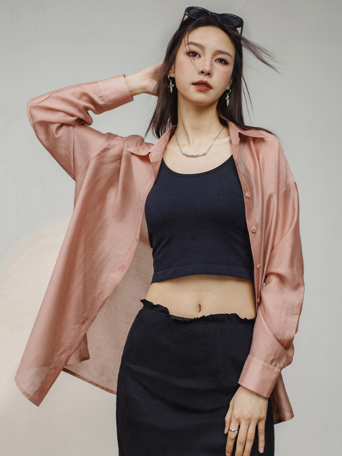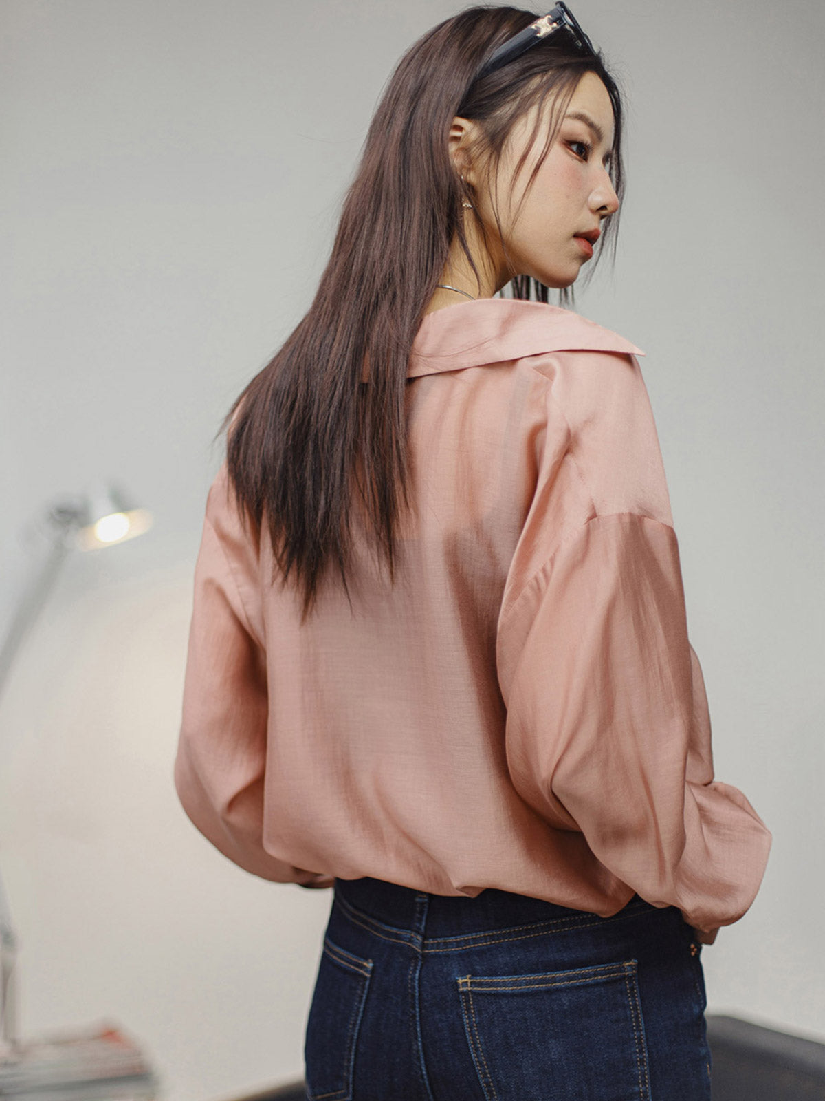 このフレンチピンクライトウェイトシャツは、ファッション性とエレガンスを兼ね備えた多機能シャツです。84.4%のセルロース繊維を使用しており、質感が軽く柔らかく、非常に通気性が優れています。シンプルな襟デザイン、シングルボタン、自然な袖の形状は、顔の輪郭や肌のトーン、体型の不完全さを巧みにカバーします。ピンクの色調が全体に柔らかさをプラスします。このシャツは、エアコン対策のカーディガンや日焼け防止のシャツ、または軽いジャケットとしても活用でき、春、夏、秋の3シーズンで重ね着、単独着、ゆったりとしたスタイルでの着用に適しています。
