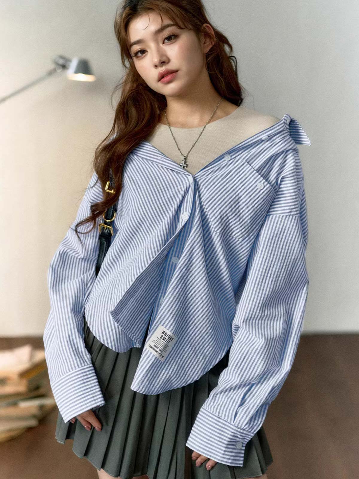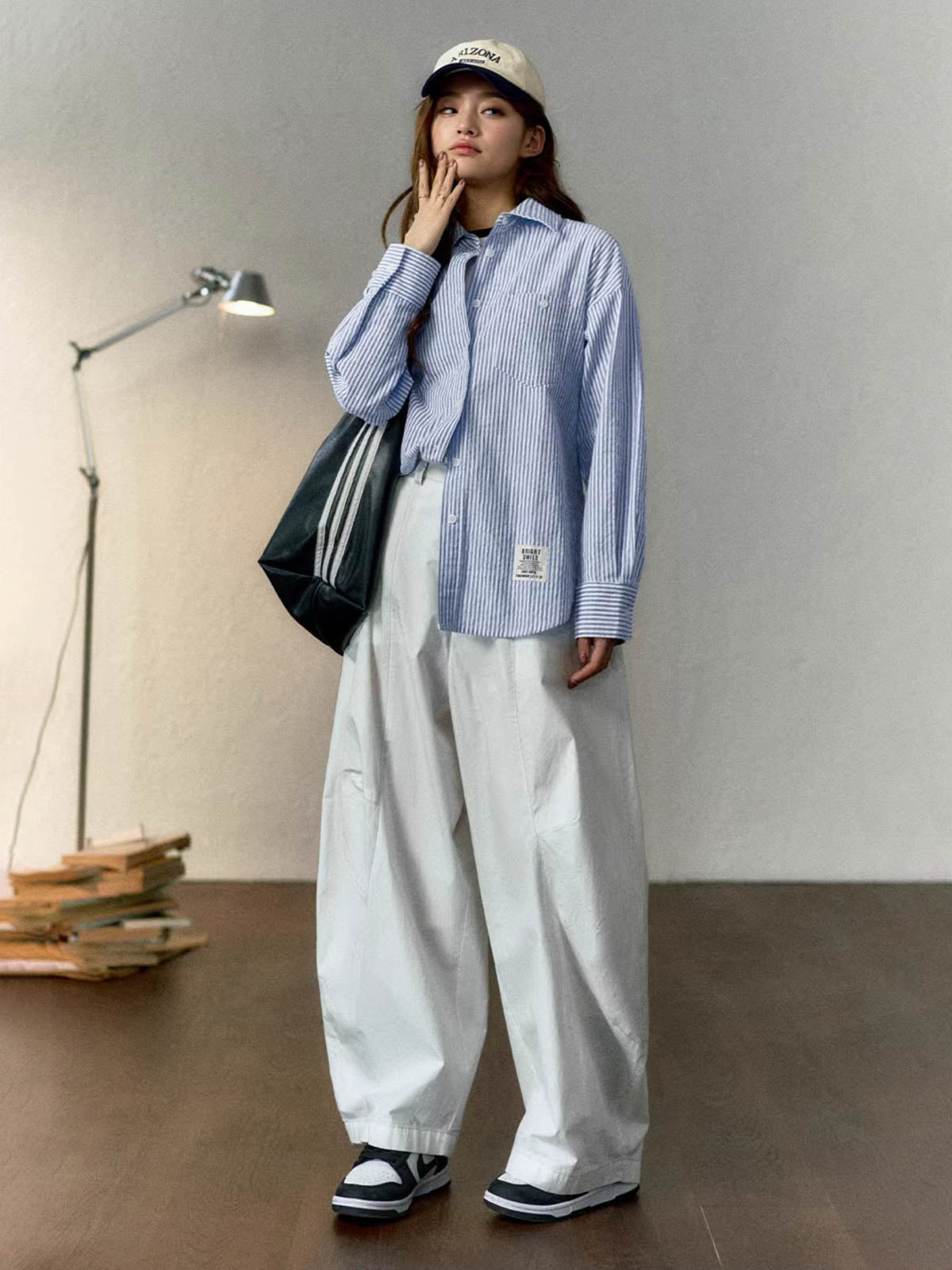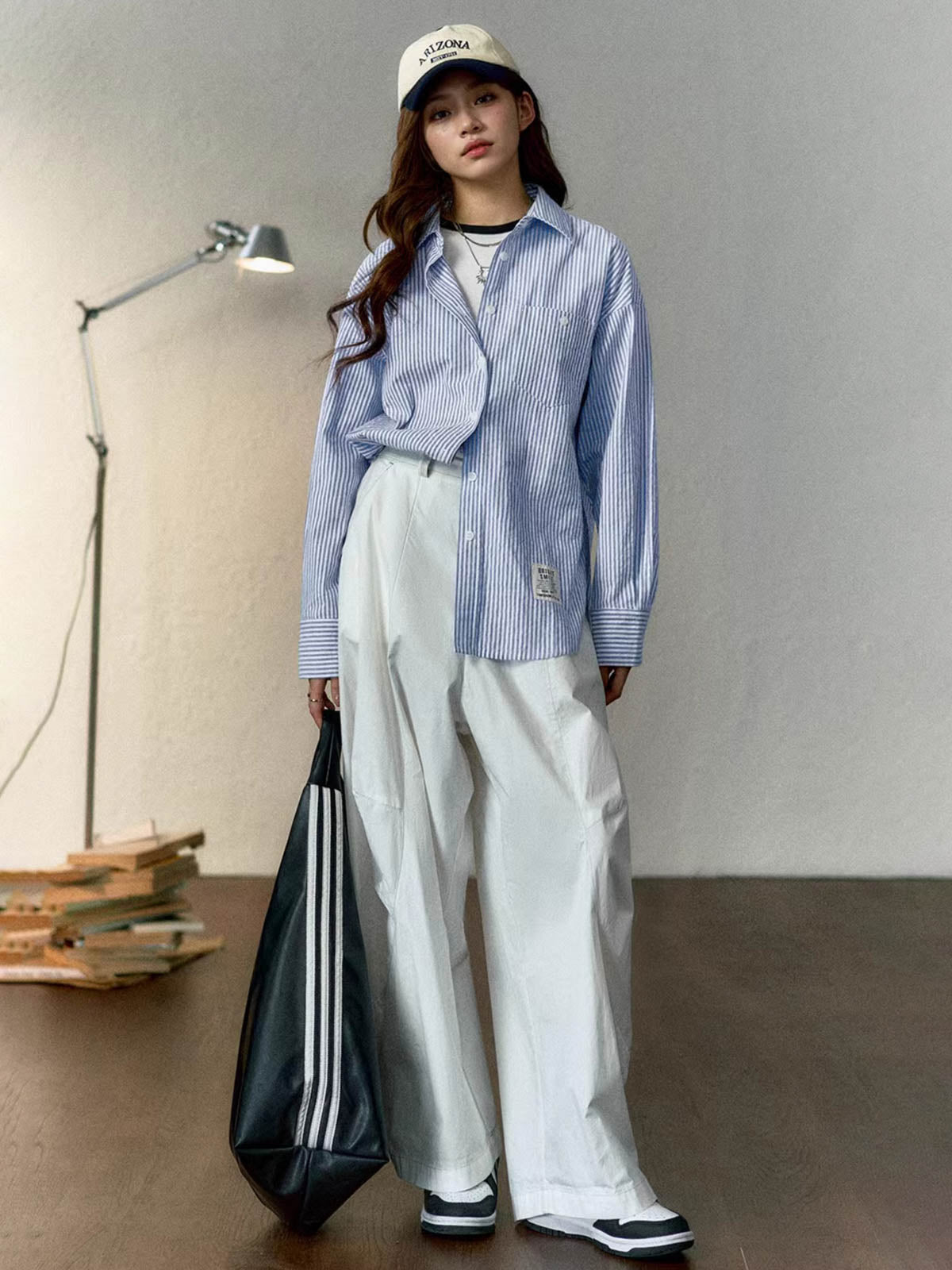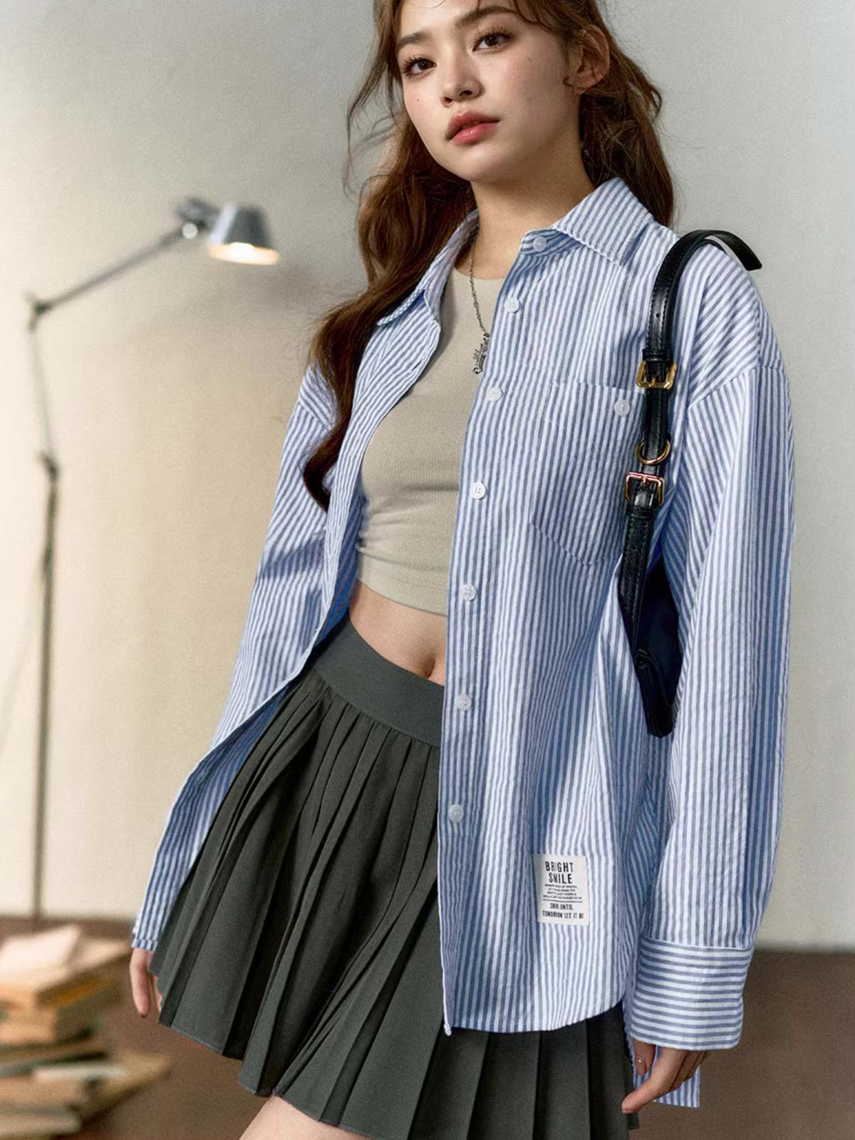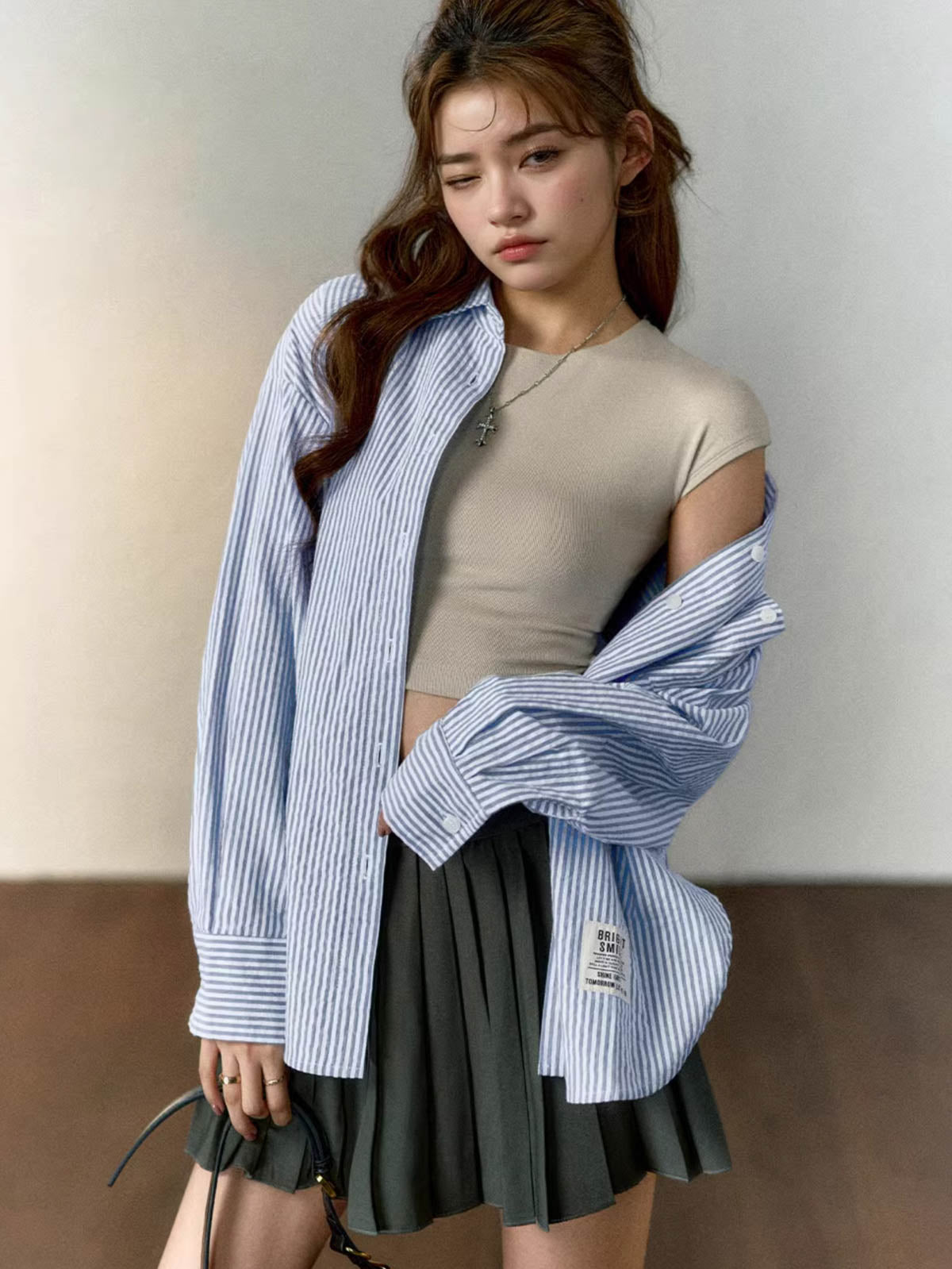 このシャツは100%リネンコットン素材を使用しており、快適さと通気性に優れています。フレンチブルーとホワイトの細いストライプが爽やかな視覚効果を演出し、ゆったりとしたシルエットは快適でリラックスした着心地を提供します。春夏には単品で着用するのに適しており、重ね着にも対応可能です。基本的なアイテムとしてだけでなく、アウターとしても中間層としても活躍し、全体の色調を調和させながら、ワードローブ内で実用的かつスタイリッシュな選択肢となっています。