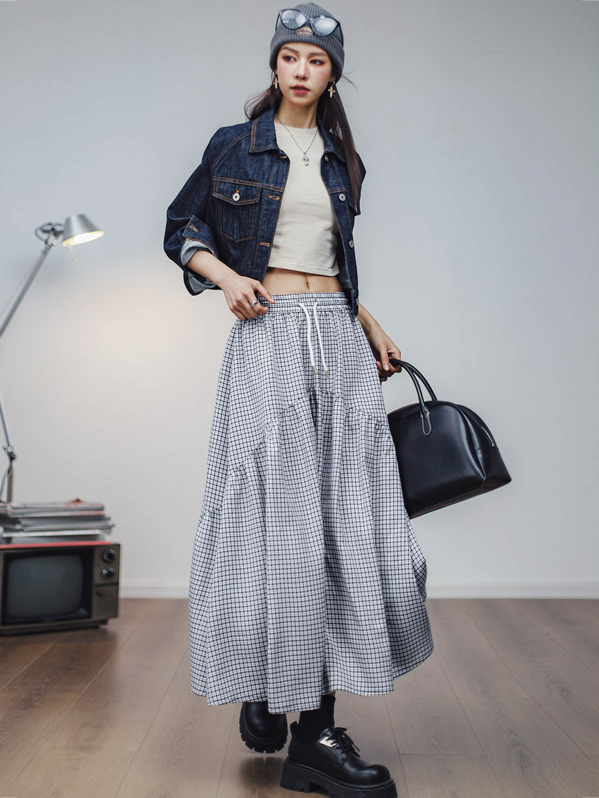 このヴィンテージブラック&ホワイトチェックミディスカートは、そのクラシックなブラック&ホワイトチェック柄デザインで注目を集めます。ゆったりとしたシルエットと不規則なヘムラインが、スリムでありながらスタイリッシュな印象を与えます。スカート丈は足首まであり、ウエスト部分にはゴムとコントラストカラーのドローストリングがアクセントとなり、ヴィンテージ感を引き立てます。通勤、外出、散歩、旅行など、どのシーンでもこのミディスカートは注目の的となること間違いなしです。シンプルなトップスと合わせるだけで、夏のクラシックな若返りアイテムとして際立ちます。