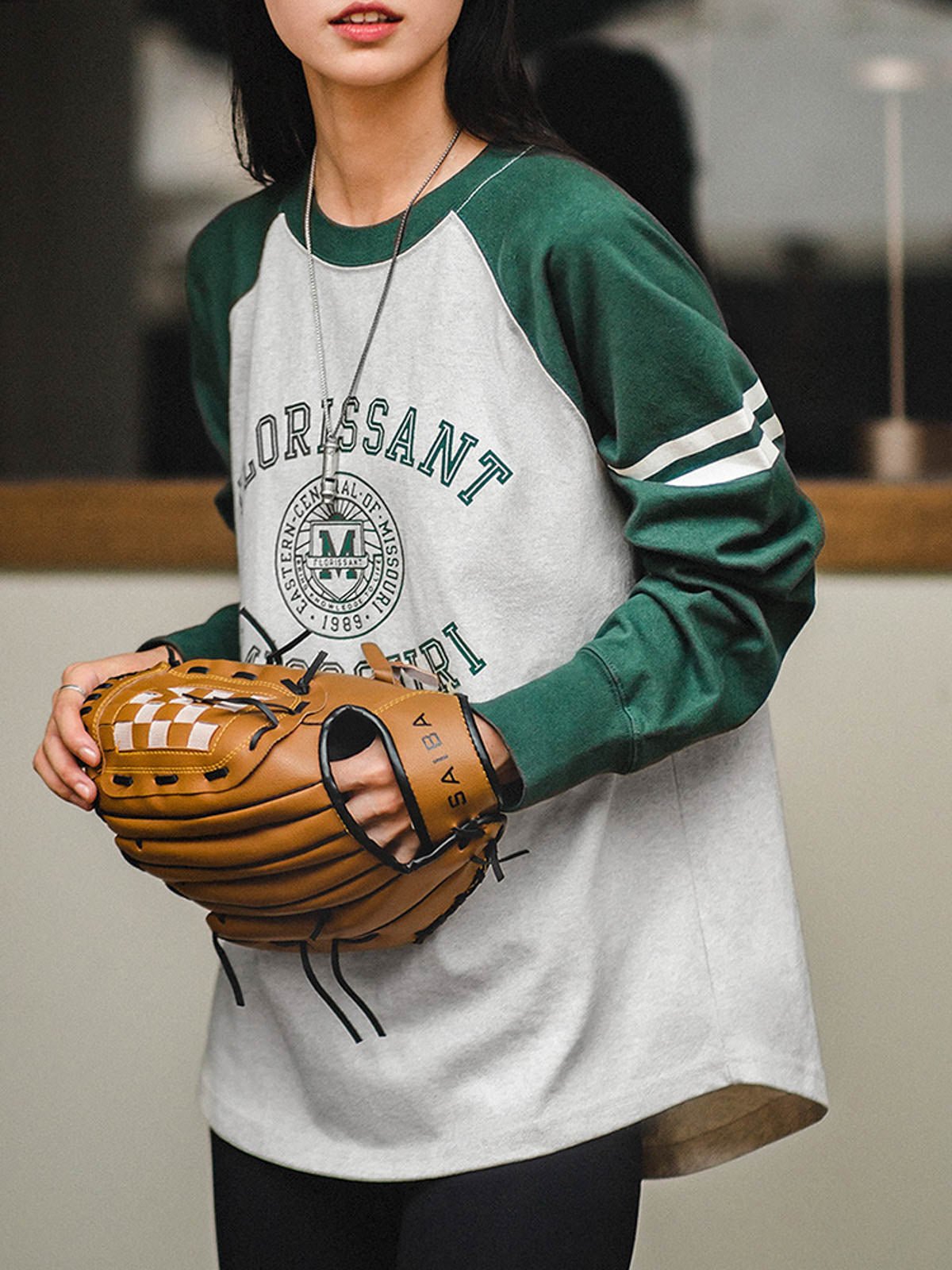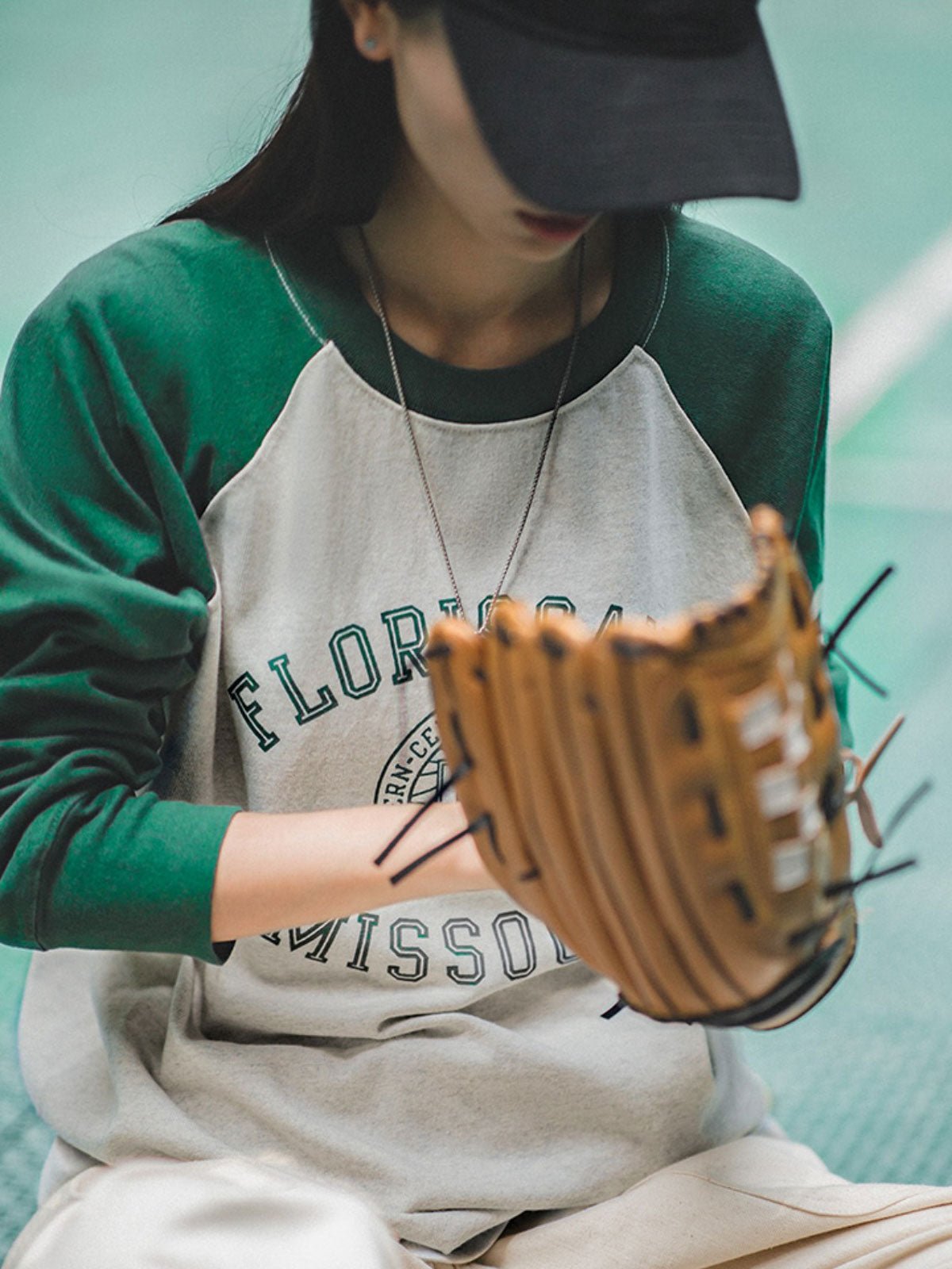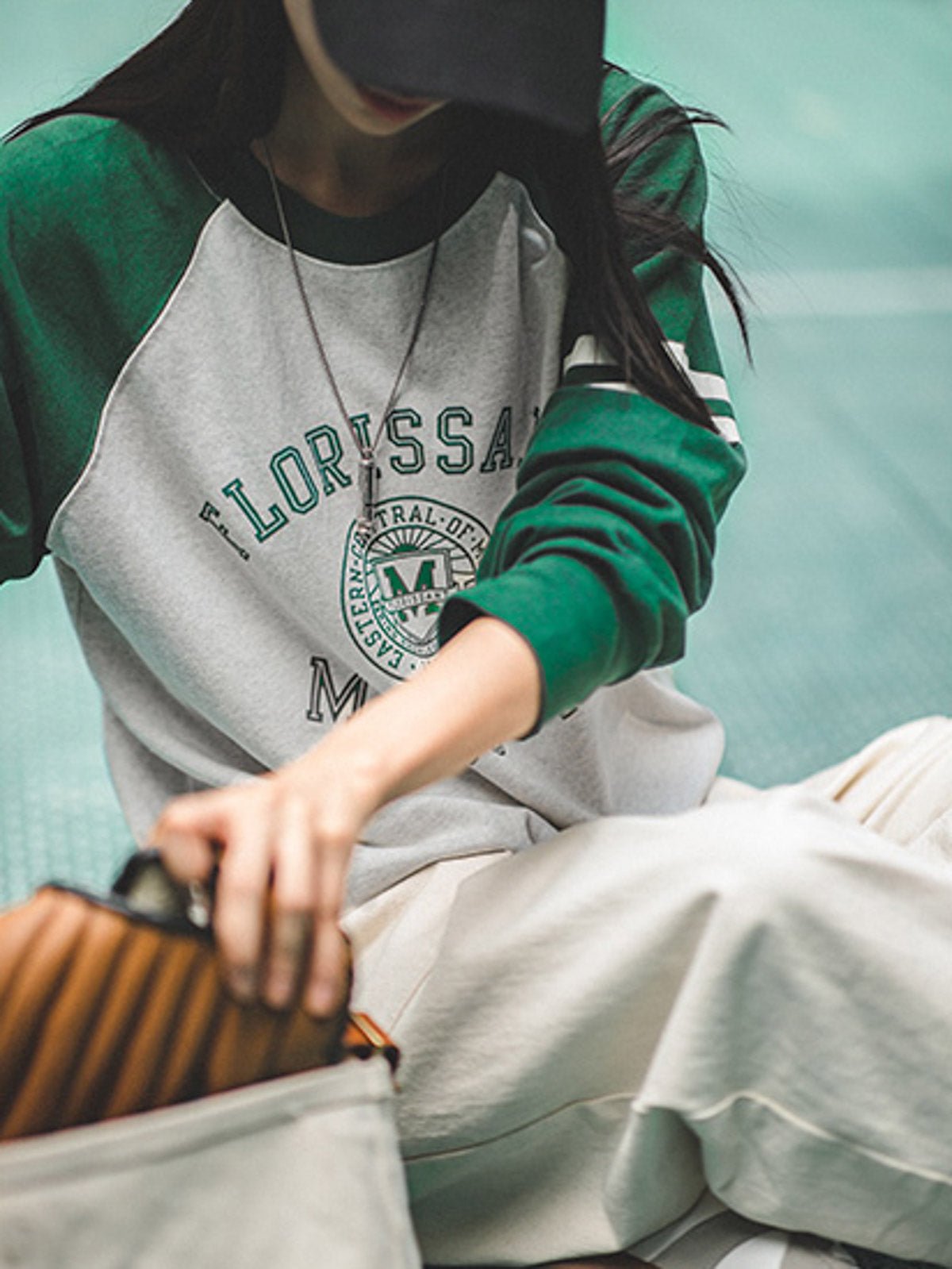 このアメリカンビンテージ配色長袖Tシャツは、80年代のカリフォルニアのクラシックなキャンパスコレクションからインスピレーションを得ています。100%コットン製の生地を使用し、重量は約280g/m²で、しっかりとした落ち感と質感を保証します。フロント中央のアメリカンエンブレムプリントが濃厚なキャンパスの雰囲気を添え、ライトグレーのボディにダークグリーンの配色デザインが施されています。これにより、若々しい印象とともにビンテージ感が一層引き立ちます。ゆったりとしたシルエットデザインで、日常のカジュアルな着こなしに適しており、軽やかなビンテージルックを簡単に演出します。