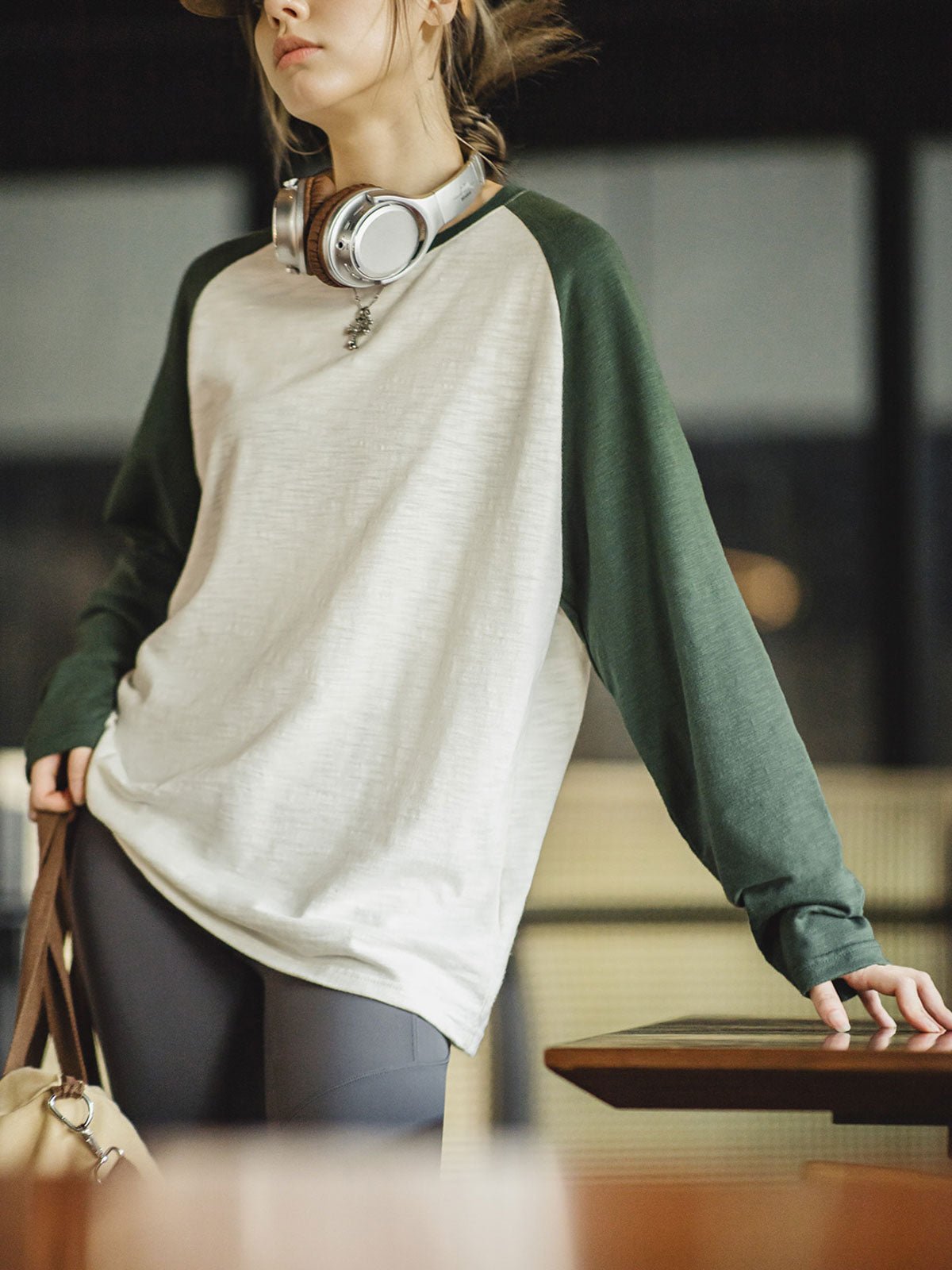 このヴィンテージ風長袖Tシャツは、クラシックな野球Tシャツにインスパイアされ、コントラストカラーのデザインでアメリカンヴィンテージとアカデミックな雰囲気を醸し出します。竹節糸を使用した生地は、自然なテクスチャーを持ち、肌触りが良く通気性に優れています。ラグランスリーブデザインは肩と首周りを引き締め、若々しい文字プリントが活力を添えます。このTシャツを着れば、日常のコーディネートやカジュアルなお出かけにも簡単に対応できます。