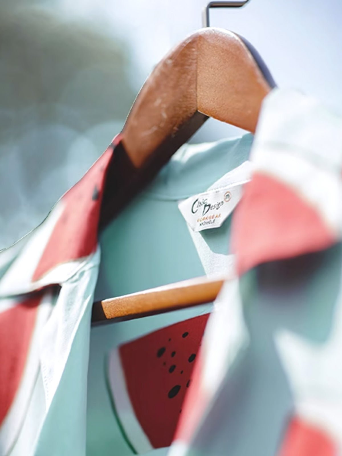 爽やかなスイカ柄デザイン、夏にぴったりのゆったりキューバカラーシャツ。