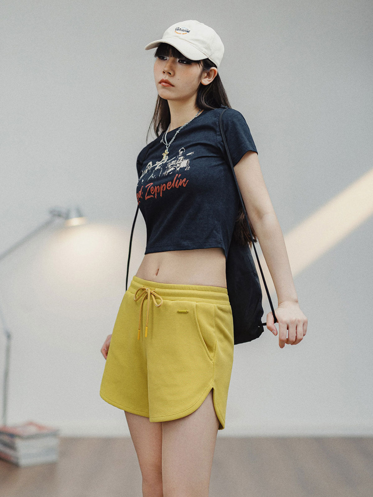 このワッフルショーツは、97.8%のポリエステルと2.2%のポリウレタンエラスタンで作られており、優れた通気性と弾力性を持ち、さまざまなスポーツシーンに適しています。ゆったりとしたワイドレッグデザインとハイウエストのドローコードで、快適な着用感と脚長効果を提供します。サイドのアーチ型スリットデザインにより、運動中の動きやすさが増し、ファッション性もアップします。ショーツのスリム効果が抜群で、ランニング、フィットネス、日常のカジュアルな着こなしに最適な選択です。