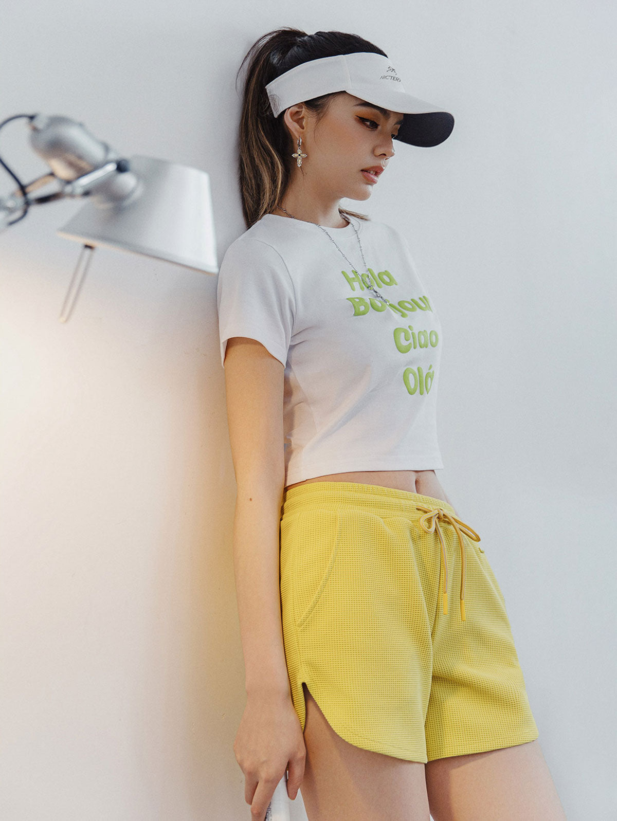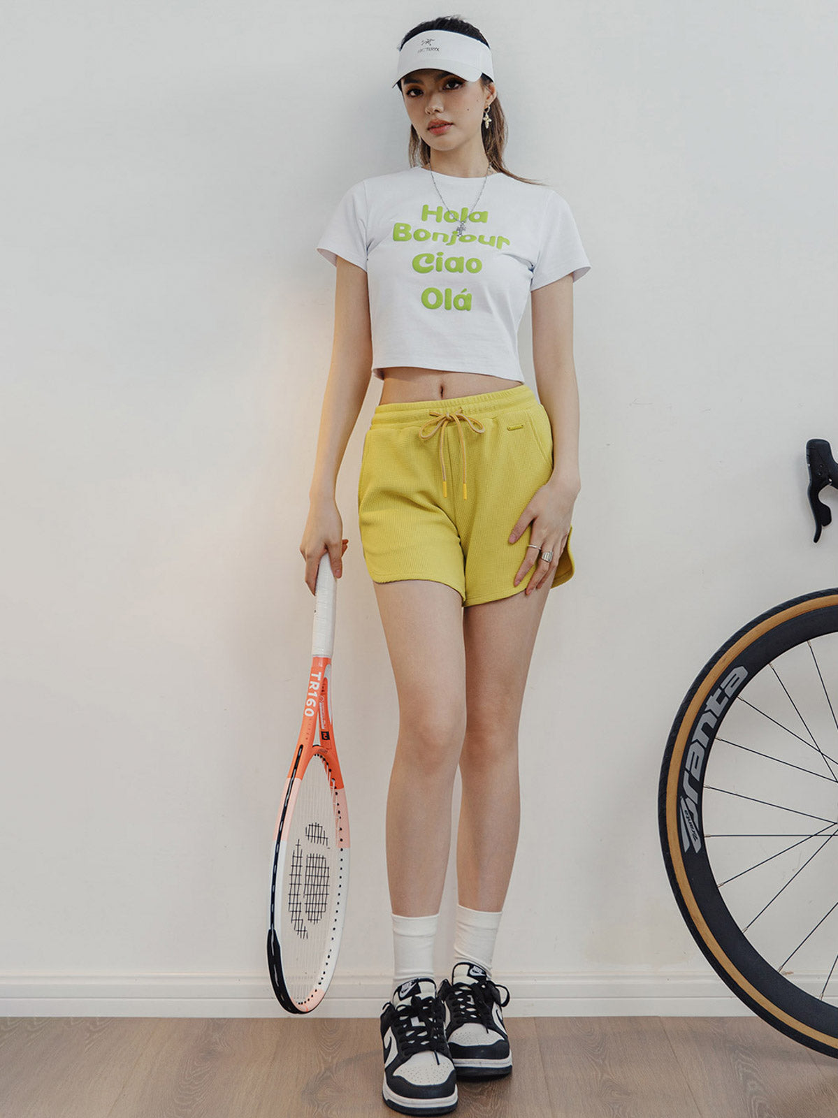 このカジュアルなスポーツショートスリーブTシャツは、100%柔らかなコットン生地を使用し、究極の快適さを提供します。独特の四ヶ国語プリントデザイン(Hola, Bonjour, Ciao, Olá)は、文化の多様性を示すとともに、衣服に楽しさと識別性を加えます。Tシャツは明るいホワイトの背景にテンダーグリーンのフォントを採用し、発泡ジェルプロセスで作成されており、夏の着こなしに爽やかな感覚をもたらします。日常のお出かけ、スポーツ、週末のリラックスタイムにも簡単に合わせられ、ラフでスタイリッシュな夏のスタイルを演出します。