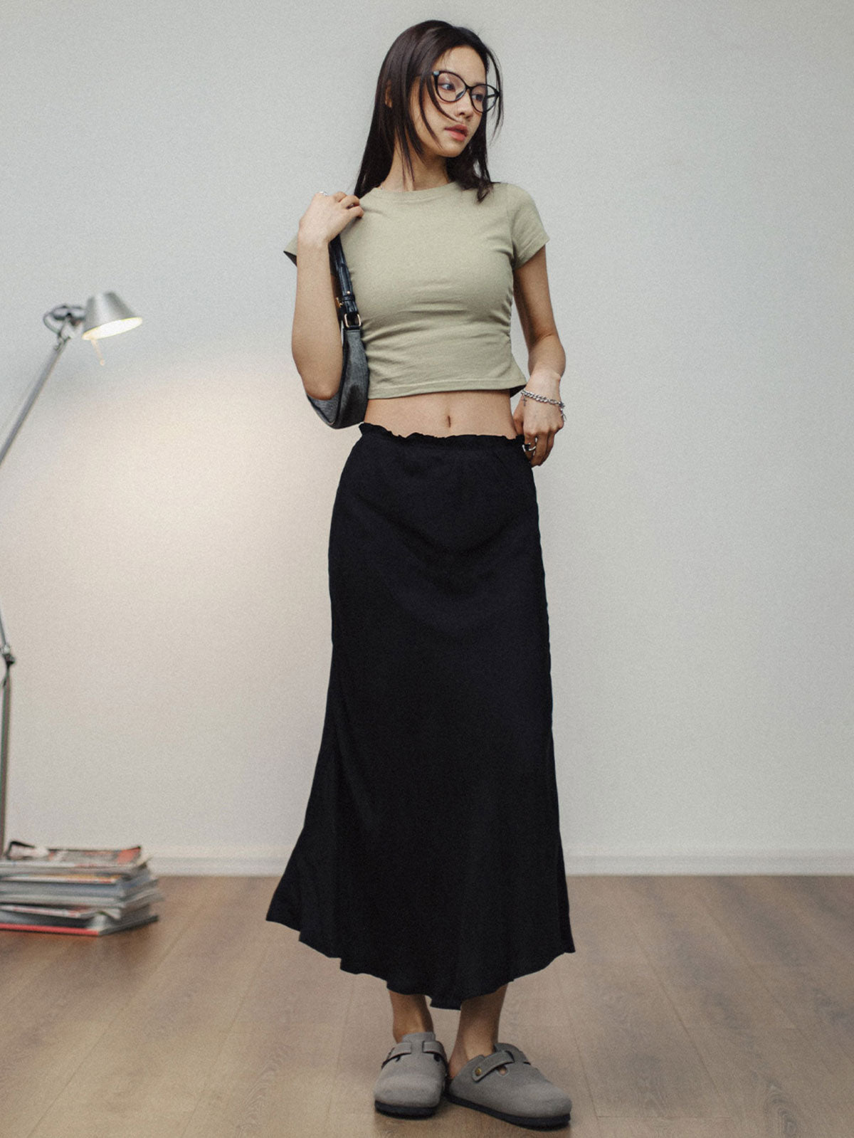 このクロップトップギャザー付き半袖Tシャツは、スリムフィットの短丈デザインとウエストギャザーで、ウエストラインを強調しつつお腹を自然にカバーします。立体的でスリムに見せる効果があります。3色のバリエーション:アースカラーのカーキ、クラシックなブラック、春にぴったりのミントグリーン。どんなボトムスとも相性が良く、外出や通勤、日常のコーディネートに活躍します。シンプルながらもスタイリッシュで実用的なデザインは、夏の装いに理想的です。