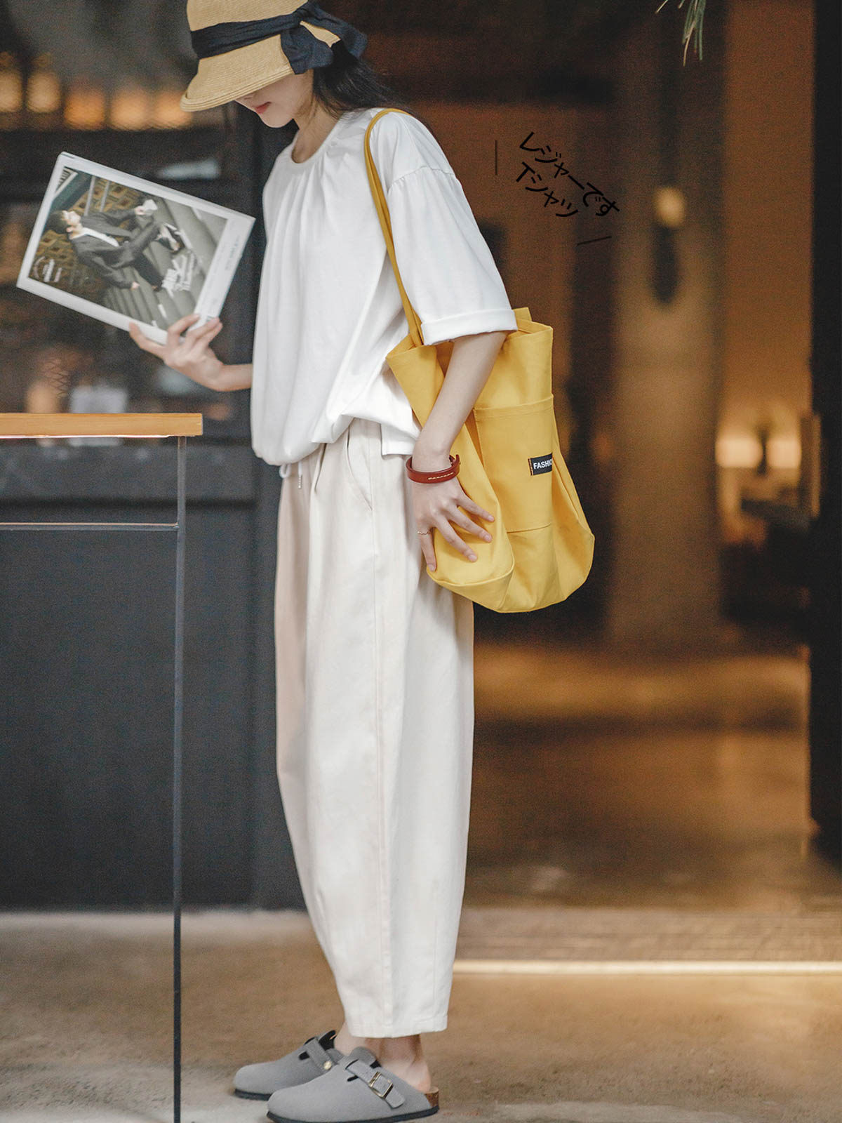 このフレンチヴィンテージ無地ハーフスリーブTシャツは、78.4%のコットンと21.6%のポリエステルで作られており、シルクのような涼しさを提供します。純白のデザインにフレンチプリーツのラウンドネックが立体的で層のあるディテールを加え、リラックスした雰囲気のフレンチスタイルを演出します。ゆったりとしたドロップショルダーとサイドスリットデザインは、快適で自由な動きを可能にしながら、二の腕を巧みに隠して全体のスリム効果を高めます。ネックラインのプリーツデザインが視覚的にスカートのような効果を生み出し、首元に視線を集中させてスリムに見せます。日常のコーディネートやバケーションスタイルに最適です。