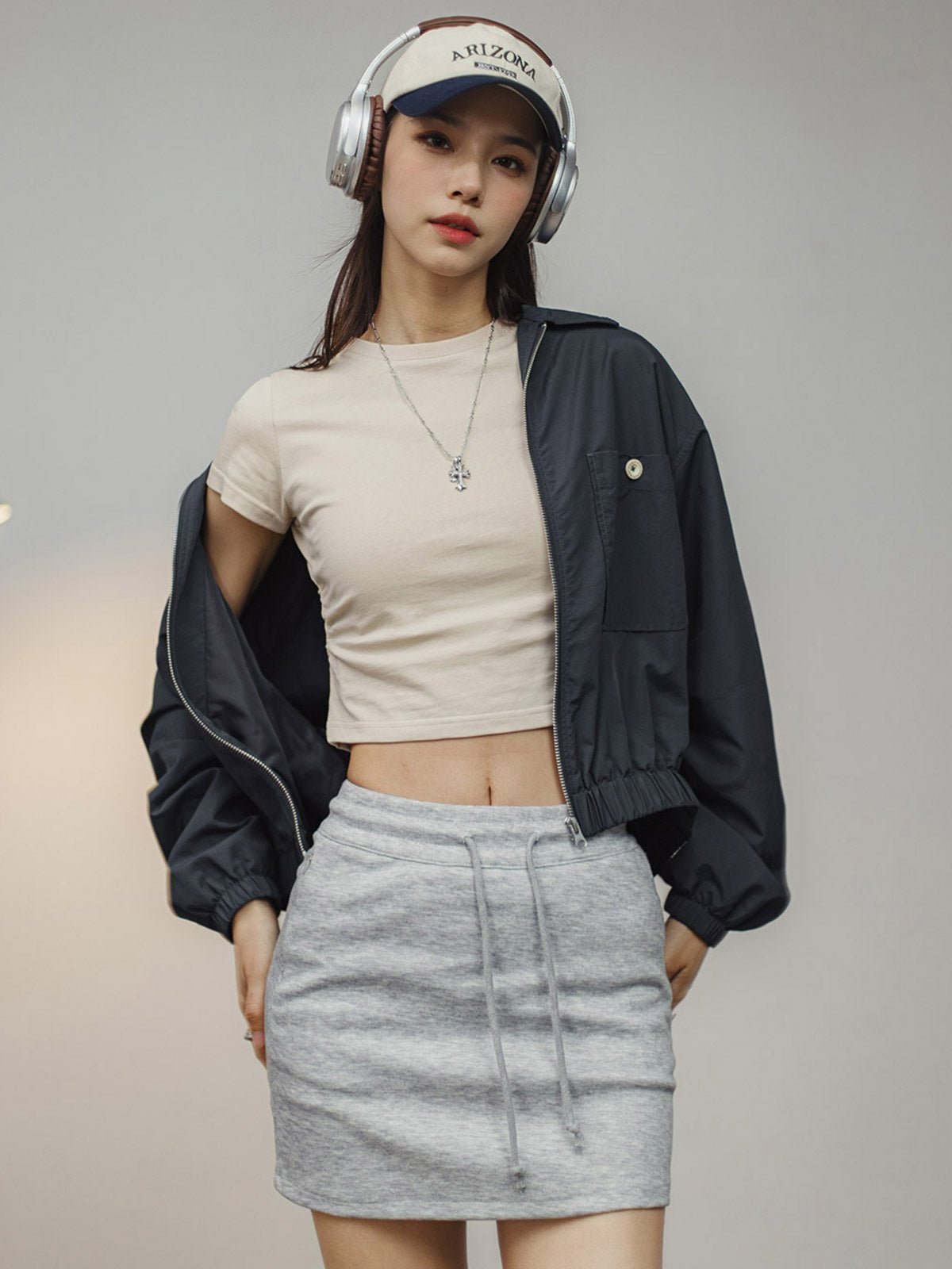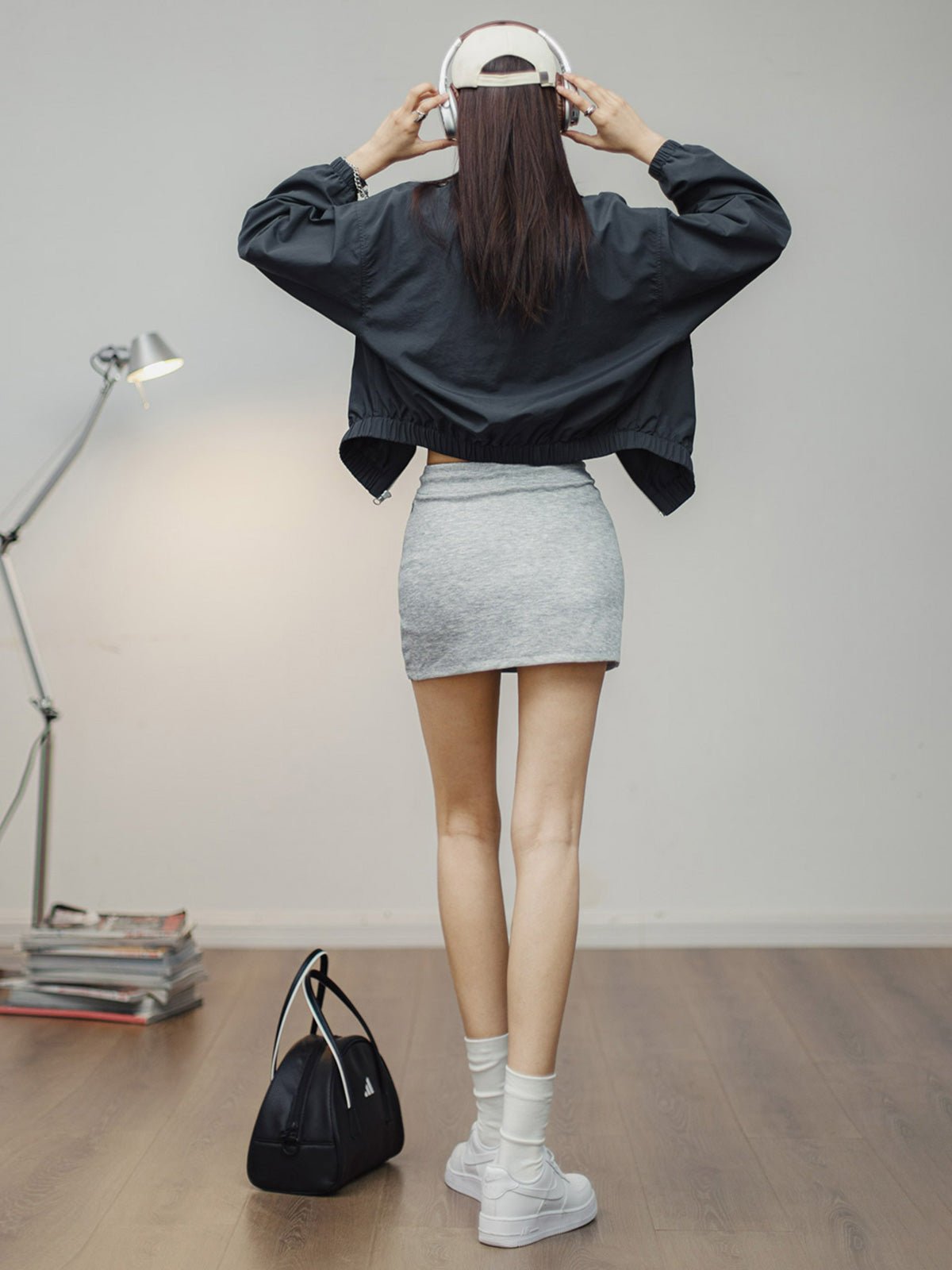 ショート丈デザインのベースボールカラージャケット、春の雰囲気満点。
