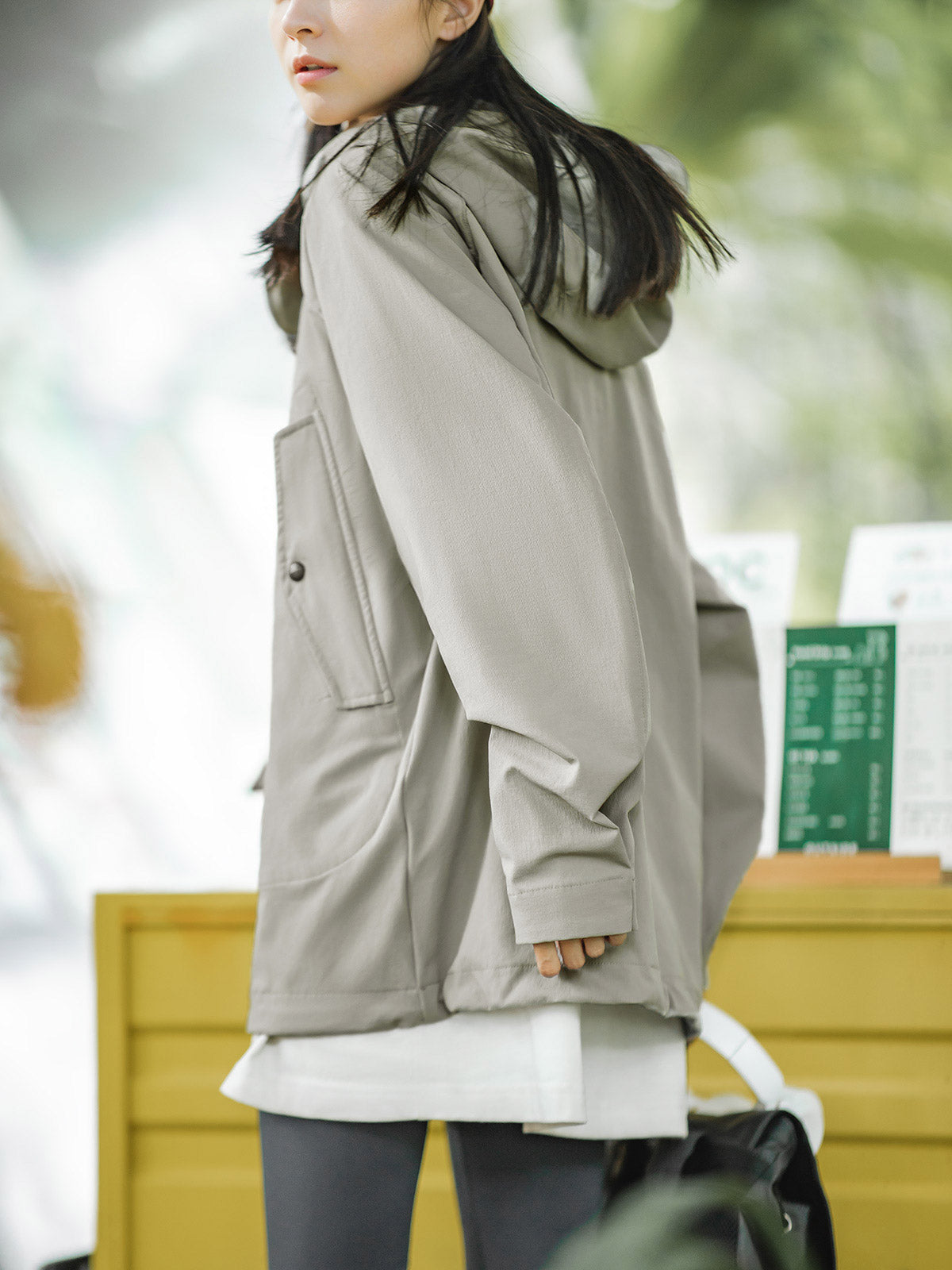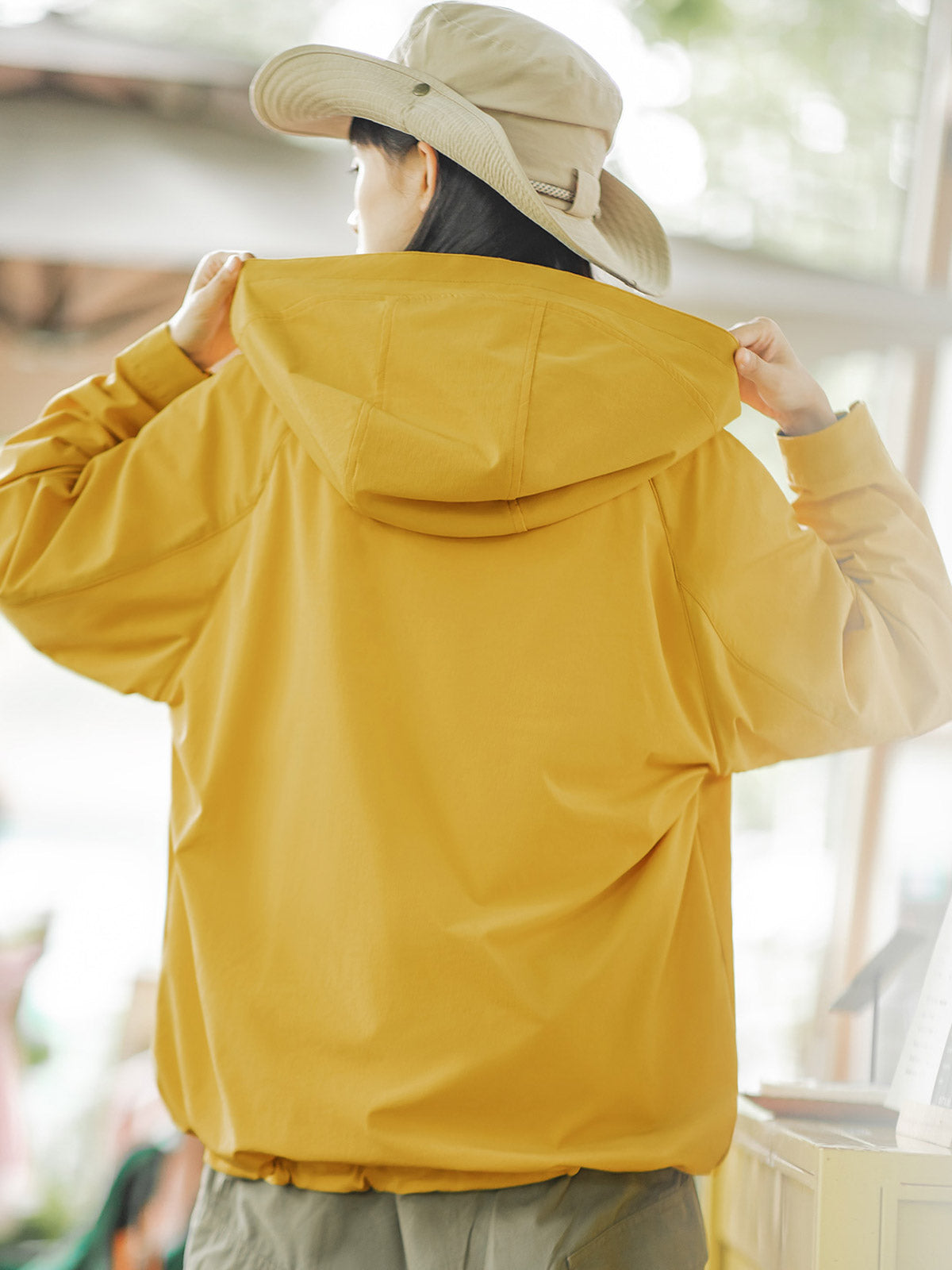 このフーデッドジャケットはクラシックなデッキジャケットからインスパイアされており、黄色と灰色のデザインでミリタリースタイルとカジュアルスタイルを融合させています。フード付きデザイン、ハーフジップのストラップ、両サイドのパッチポケット、裾のドローコードなどのディテールが、ジャケットに立体感を与え、動くたびに軽快な印象を与えます。非対称のパッチポケットと適切な位置にあるストラップデザインにより、このフーデッドジャケットは秋のコーディネートで特に目を引き、山系の雰囲気を簡単に引き立てます。