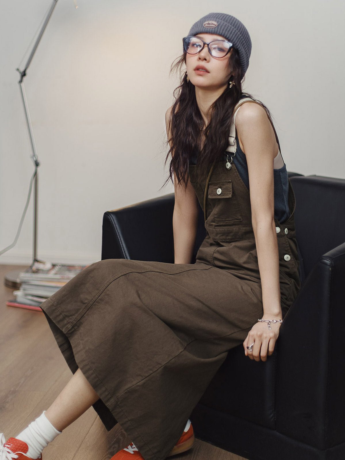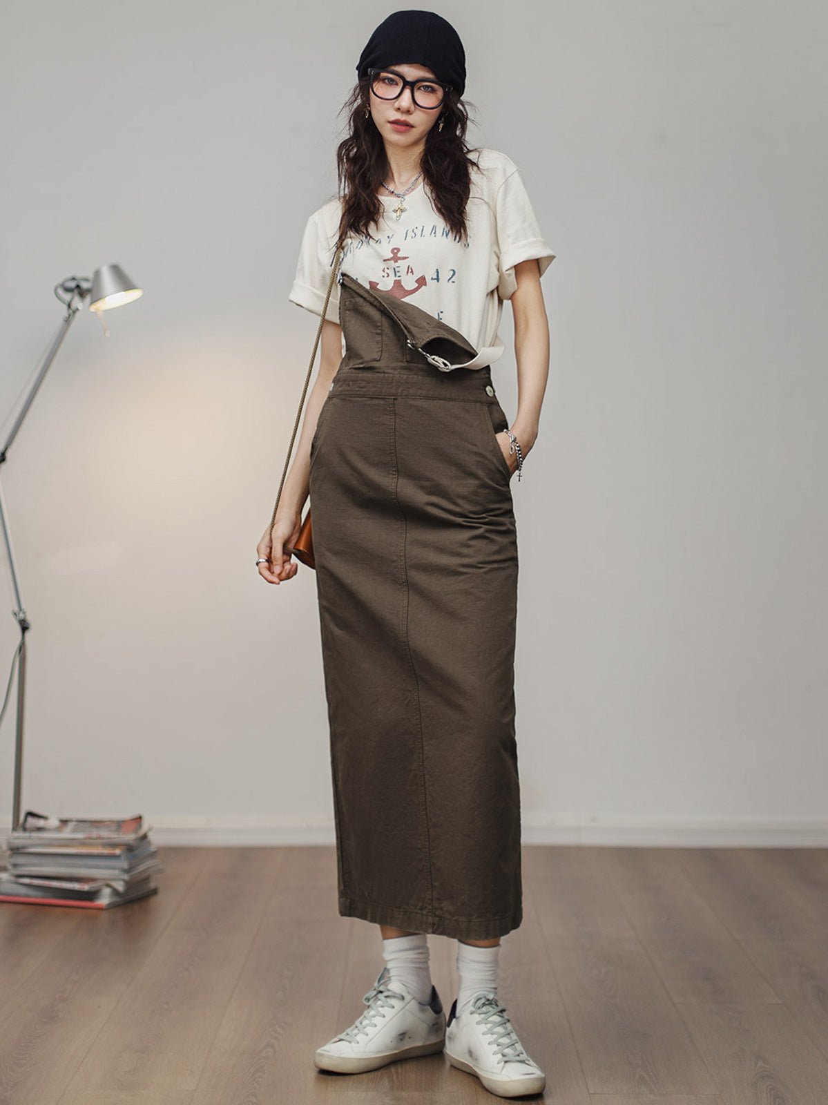 このアメリカンビンテージのコーヒーカラーエプロンドレスは、100%コットン素材を使用しており、快適で通気性に優れています。ストレートシルエットのロングデザインで、ウエストサイドには調節可能なダブルバックルを備えており、体型に合わせてフィット感を調整できます。胸元には二種類のポケットデザインが施されており、実用性とともに若々しさをプラスしています。ホワイトとコーヒーの配色がアクセントになり、目を引くデザインです。春、夏、秋といった様々なシーズンに、小さなキャミソールやTシャツと合わせて、カジュアルでおしゃれなスタイルを簡単に作ることができます。