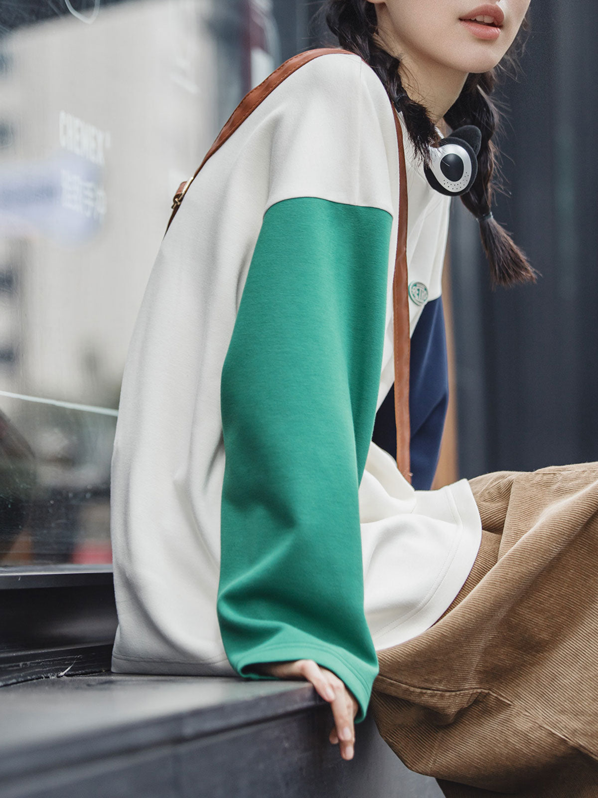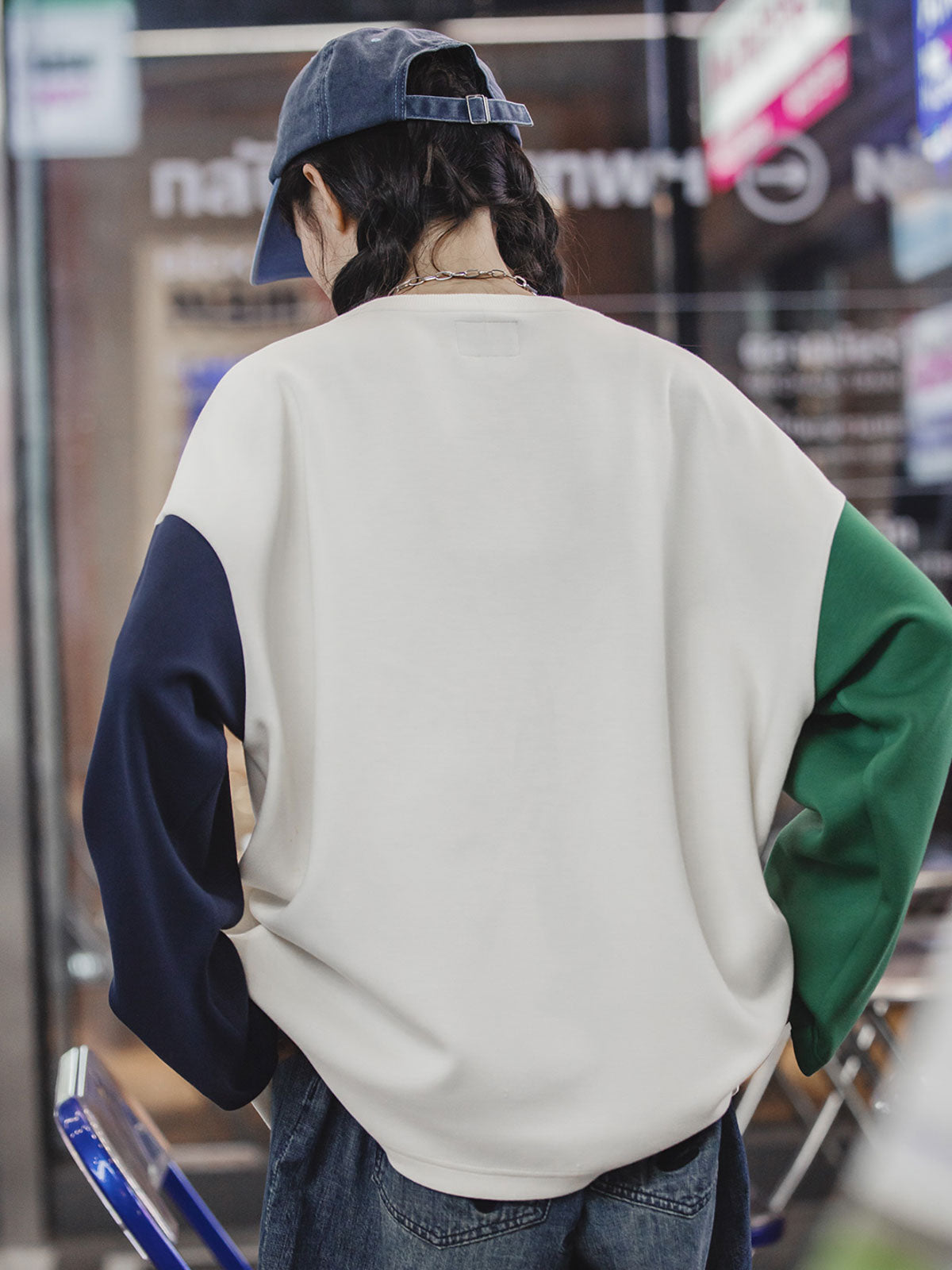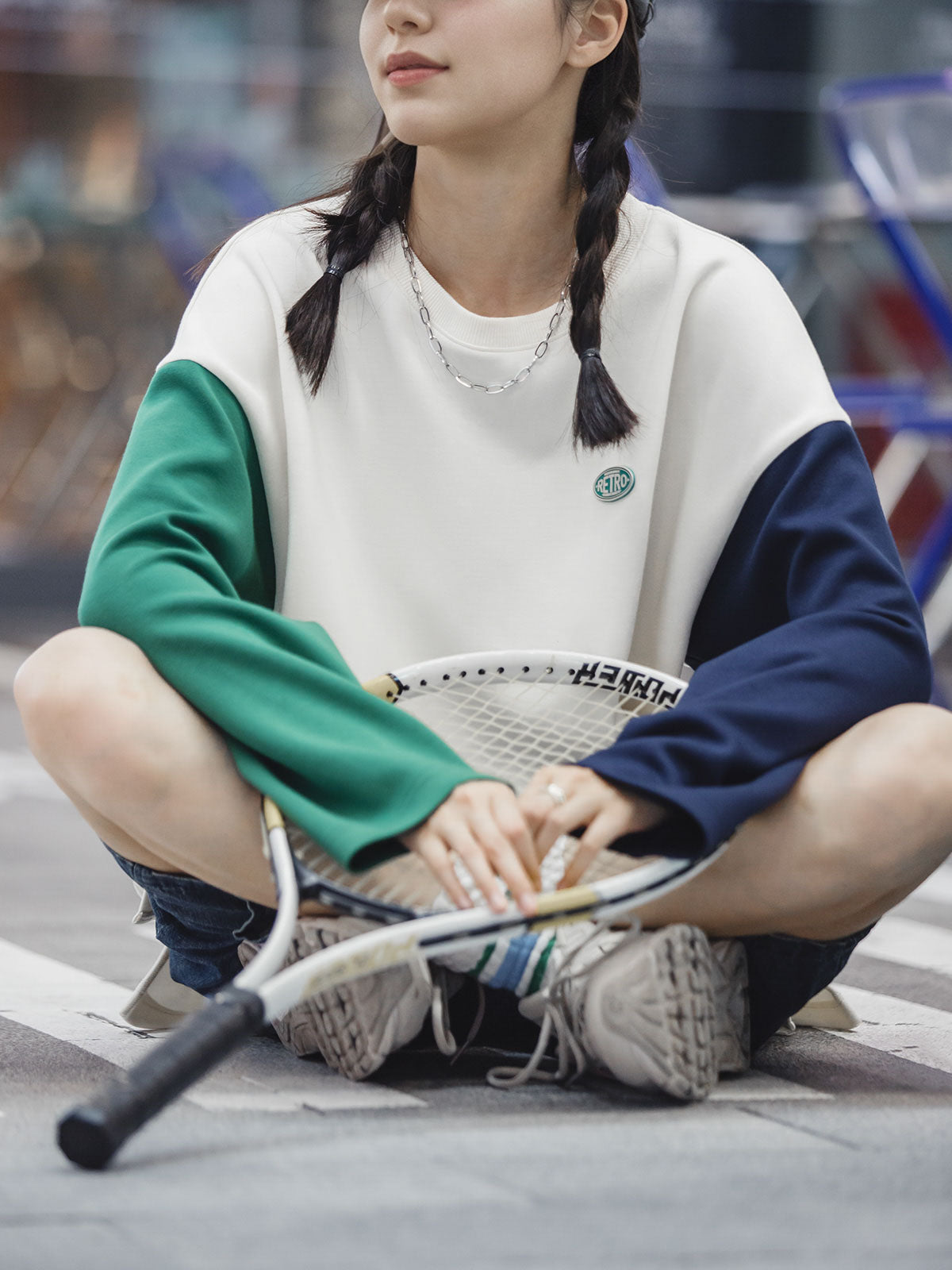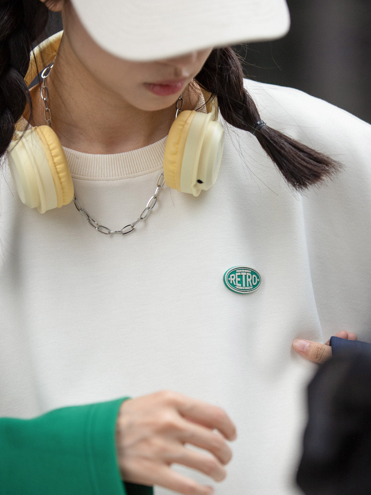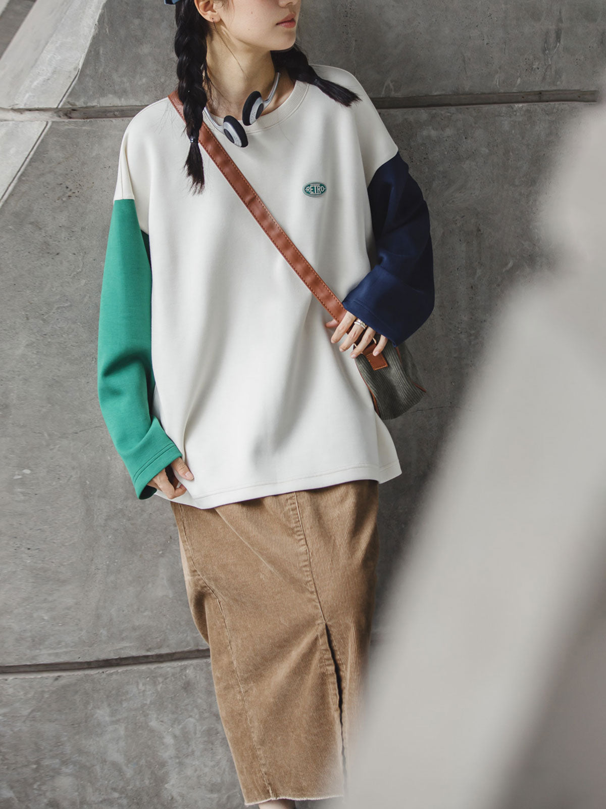 このアメリカンヴィンテージアカデミースタイルの配色プルオーバースウェットは、49.7%のポリエステル、44.1%のビスコース、6.2%のポリウレタンで作られており、快適な着心地を提供します。袖口にはヴィンテージグリーンとブルーの配色が施され、ユニークなアカデミックな雰囲気を醸し出します。ゆったりとしたオーバーサイズシルエットとドロップショルダーデザインで、着心地が良く、体型を問わずフィットします。胸にはヴィンテージ風の小さなエンブレムが付き、リブネックにはスマイルデザインが施されており、細部にこだわったデザインです。初秋の着用に最適で、どんなアイテムとも合わせやすく、濃厚なヴィンテージスタイルを演出します。