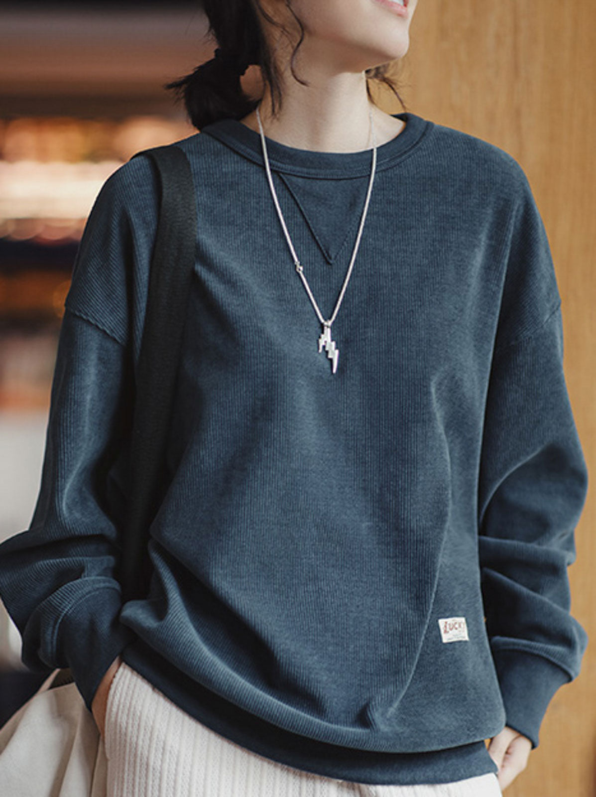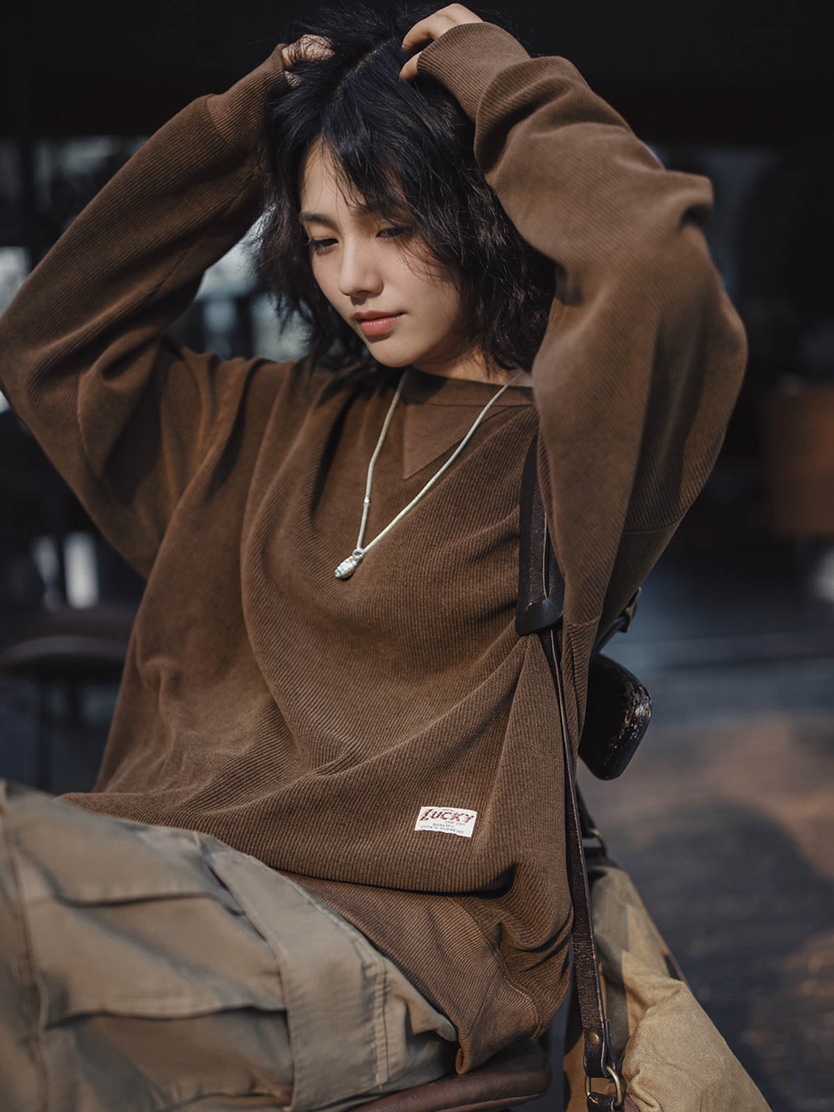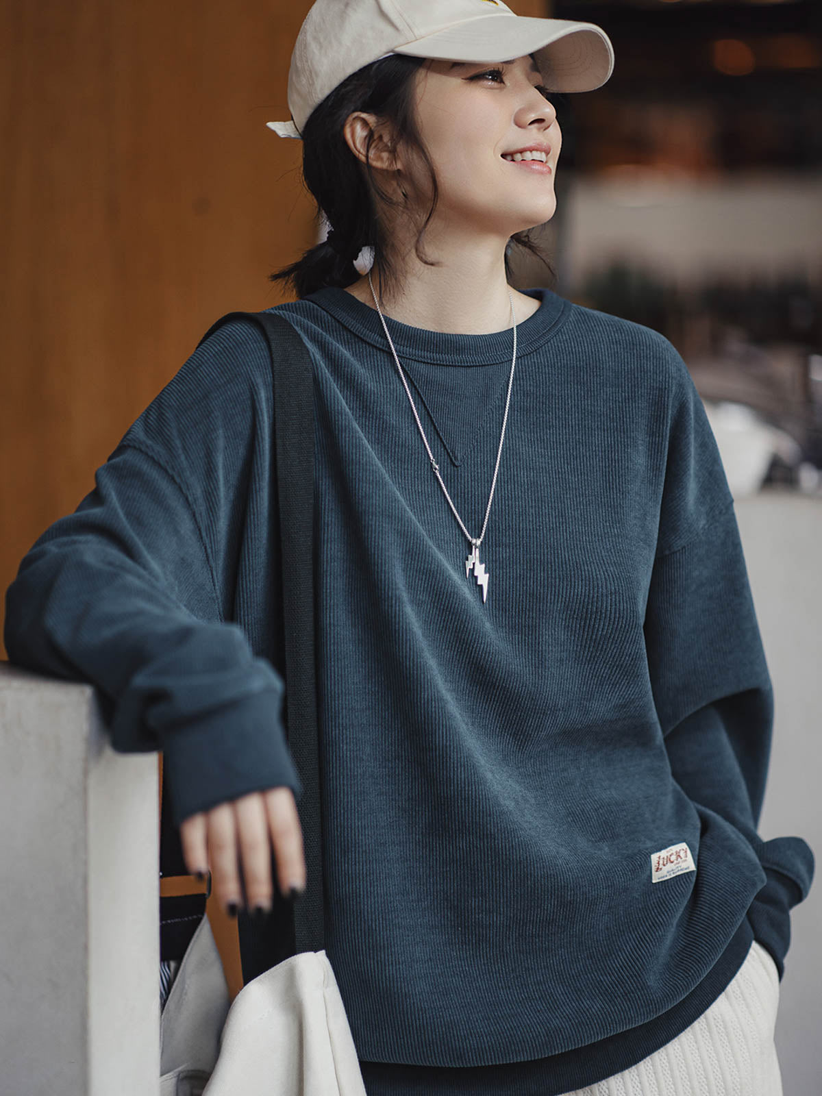 このアメリカンヴィンテージシェニールスウェットは、初級から上級まで幅広く対応するクラシックなベーシックアイテムです。頻繁に着用される特徴を持ち、ワードローブの必需品として重宝されます。象徴的な三角形のステッチデザインとアメリカンスタイルのゆったりとしたシルエットが特徴で、400g/m²の高密度シェニール素材は、豊かなフリース質感を提供し、立体的なリブ構造が視覚的な深みを増します。柔らかくしっかりした質感で、低彩度のダークネイビー、アイボリー、コーヒーカラーの3色展開で、秋冬のさまざまなシーンに自然に溶け込みます。ヴィンテージ感のあるシェニール素材は、ピリングしにくく、しわになりにくい特性を持ち、背面のヴィンテージ風ボタンと「LUCKY」織りネームが独自のヴィンテージ感をさらに引き立てます。