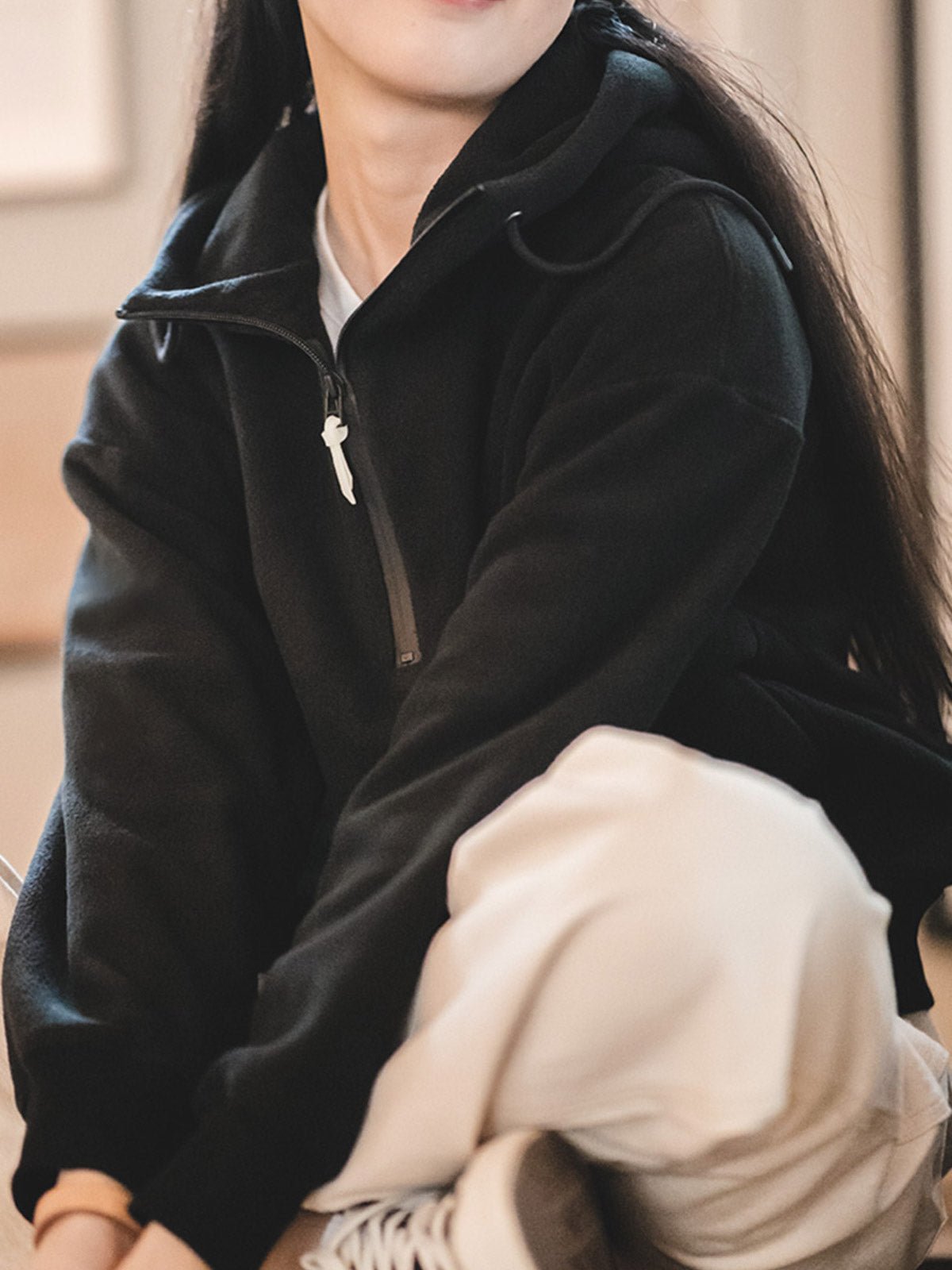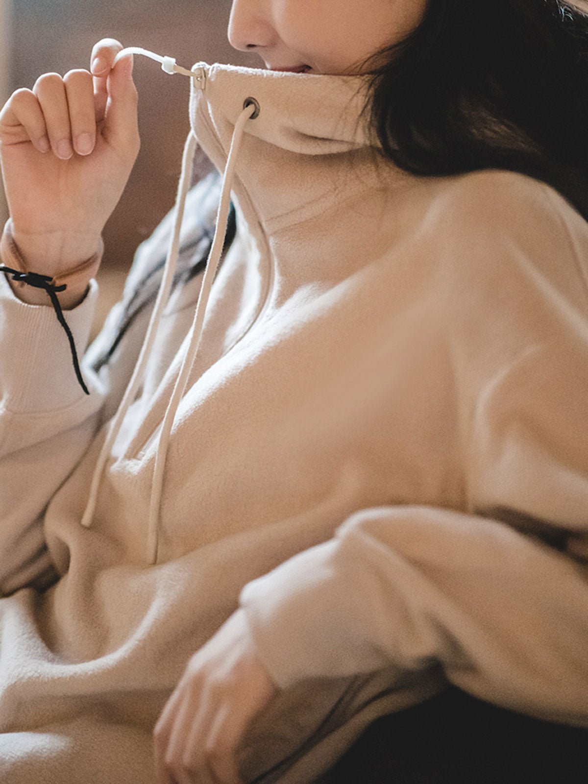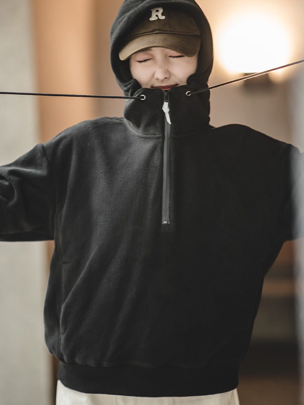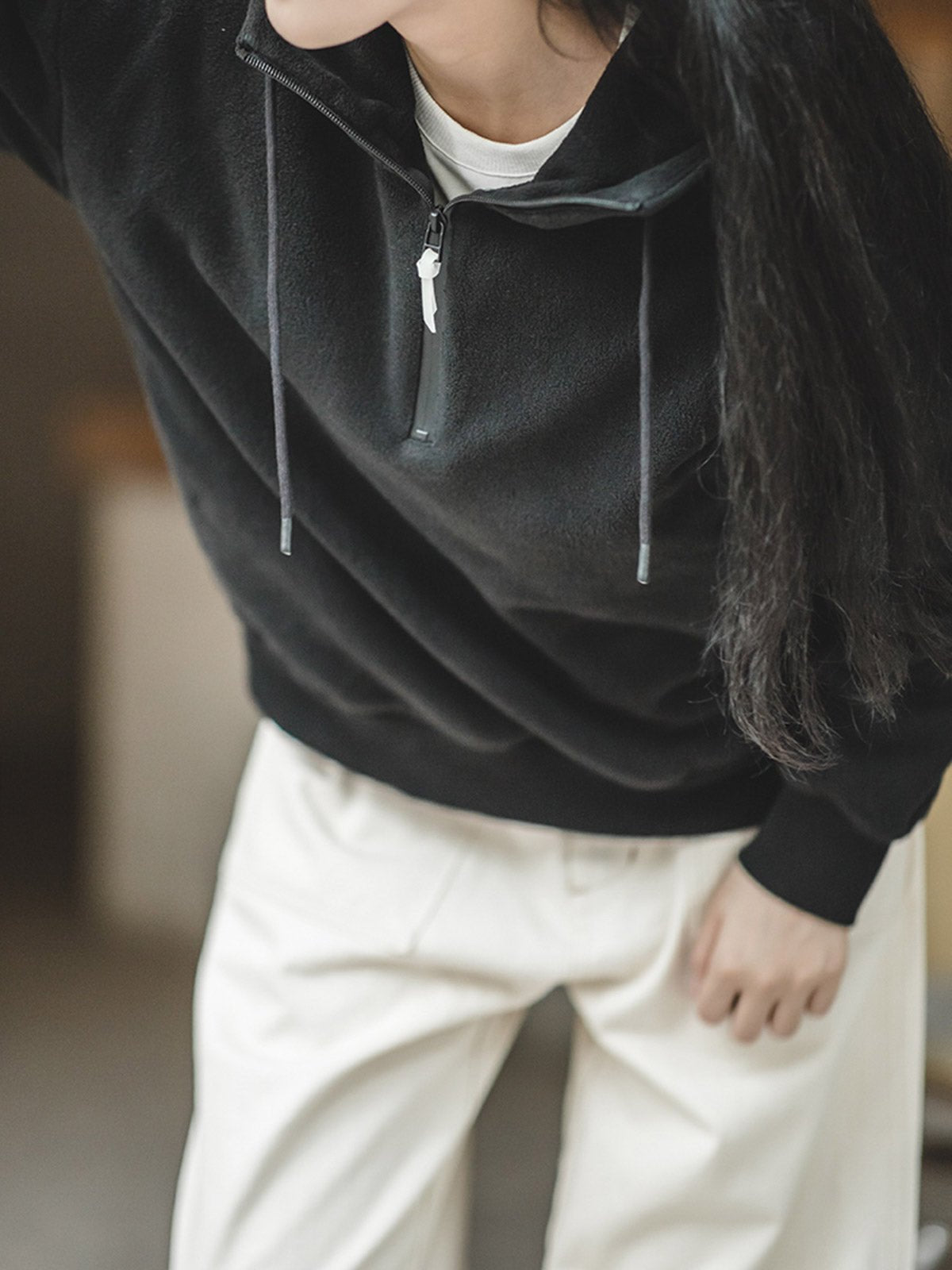 このアメリカンスタイルのフリース裏地ヘビーフーディーは、ダブルサイドフリース素材で作られており、100%ポリエステル繊維で構成されています。ブラッシング、コーミング、カッティング、フリースなどの多くのプロセスを経ており、表面はふんわりとしており、裏面は柔らかく、暖かくて軽量です。シンプルなベーシックカラーのデザインは、ワードローブの様々なアイテムと簡単に組み合わせることができます。カフェでのひととき、図書館での読書、雨の日のリラックス、疲れた時のリラックスタイムなど、あらゆるシーンで快適な着心地を提供します。