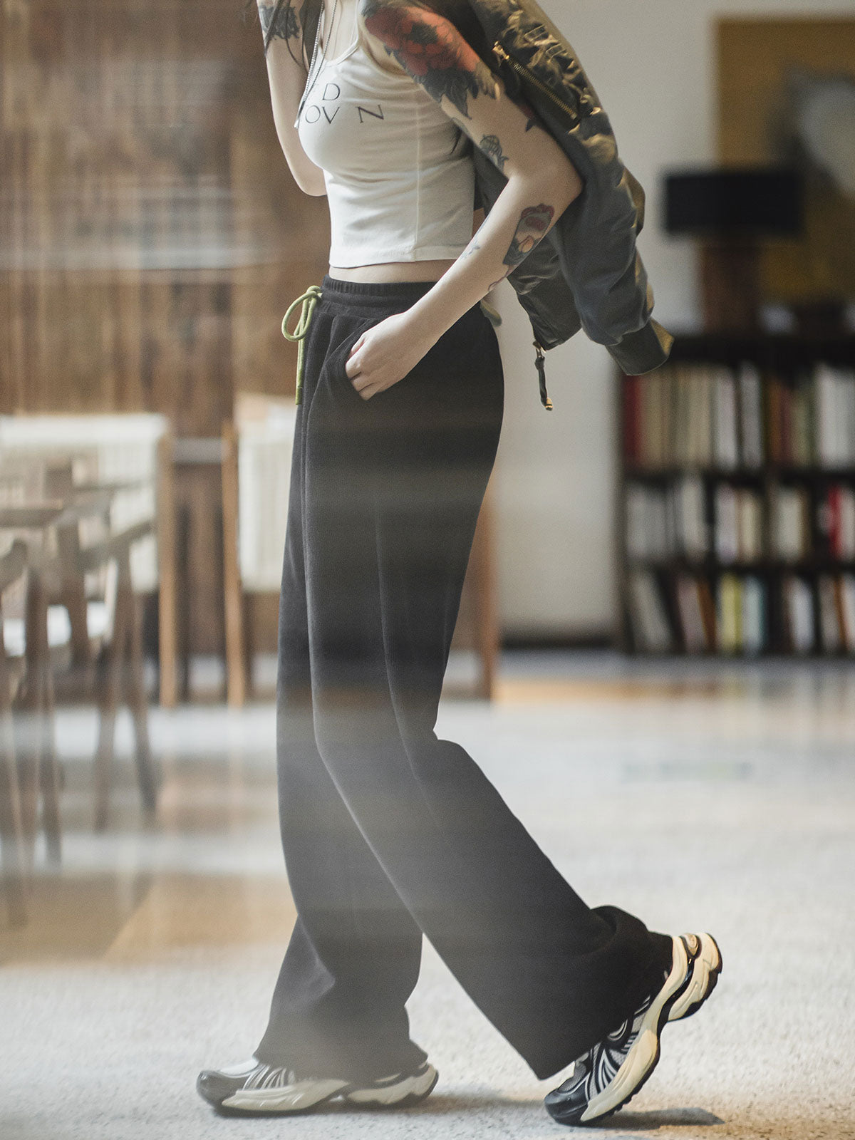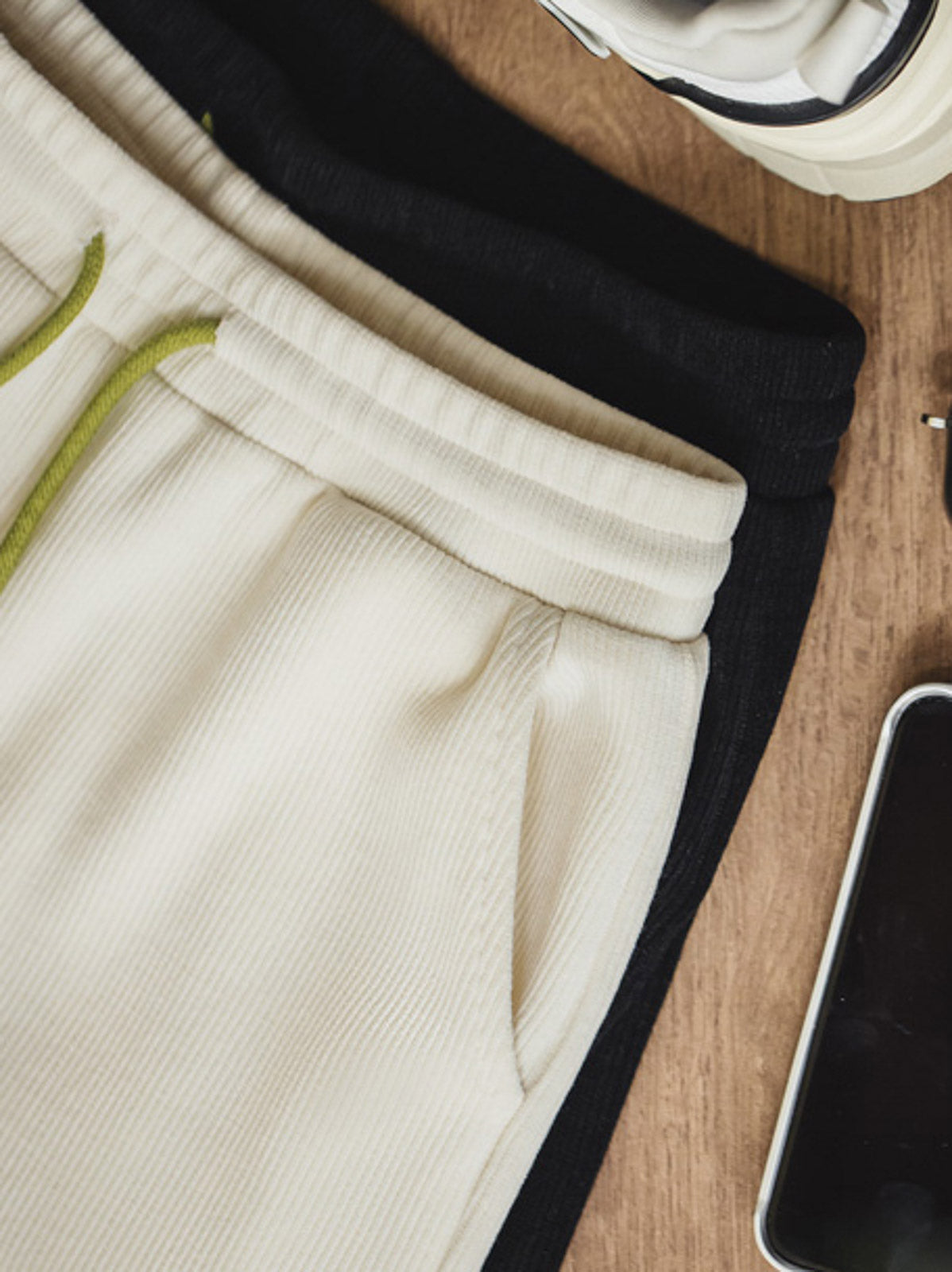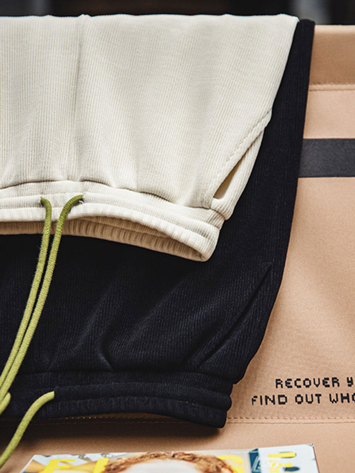 このヴィンテージ風シェニールカジュアルパンツは、直線的なシルエットで梨型体型の方に特におすすめです。微かな伸縮性と余裕のあるデザインにより、体にぴったりと張り付かず、スリムな印象を与えます。落ち感のあるラインが脚を長く見せ、シェニールコーデュロイ素材が暖かさとヴィンテージ感を提供します。シェニールの豊かな質感は、シワになりにくく自然なドレープを保ちます。クラシックなブラックとホワイトのカラーオプションで、秋冬の多様なシーンに対応可能です。ウエストのグリーンのドローコードがシンプルなデザインにアクセントを加えます。