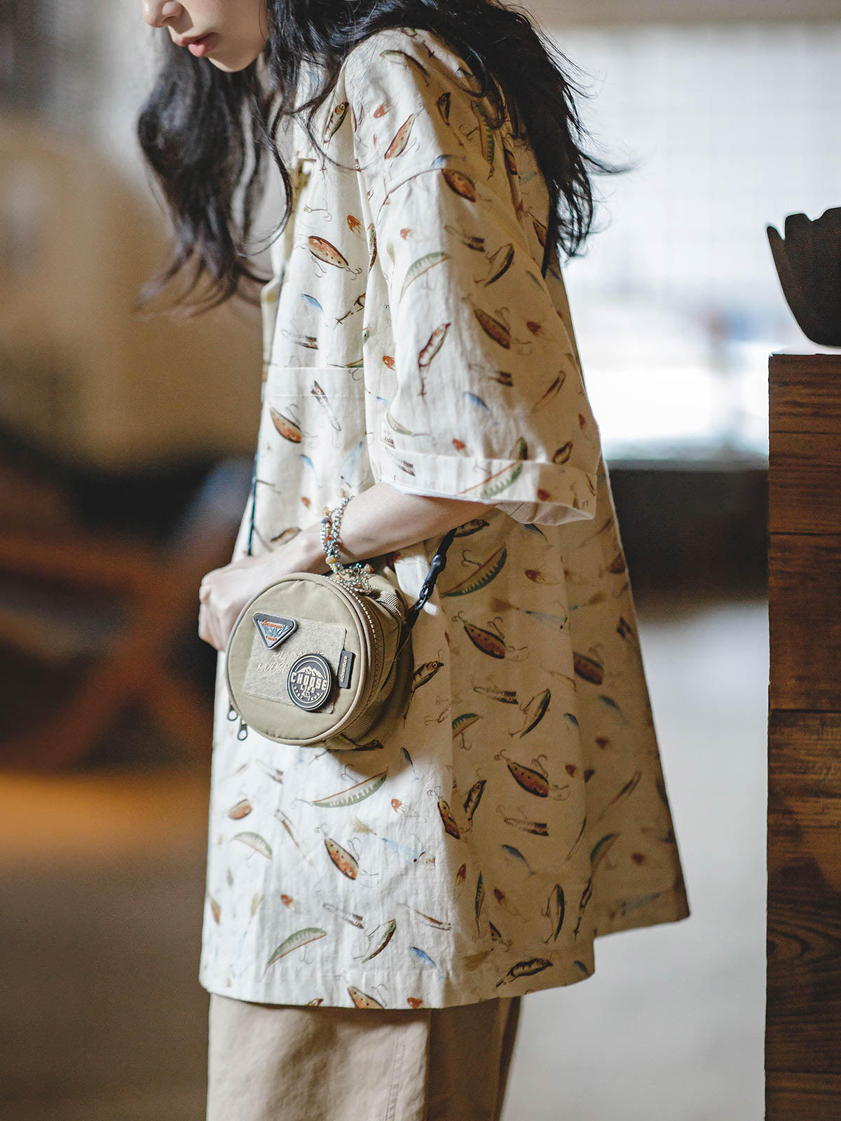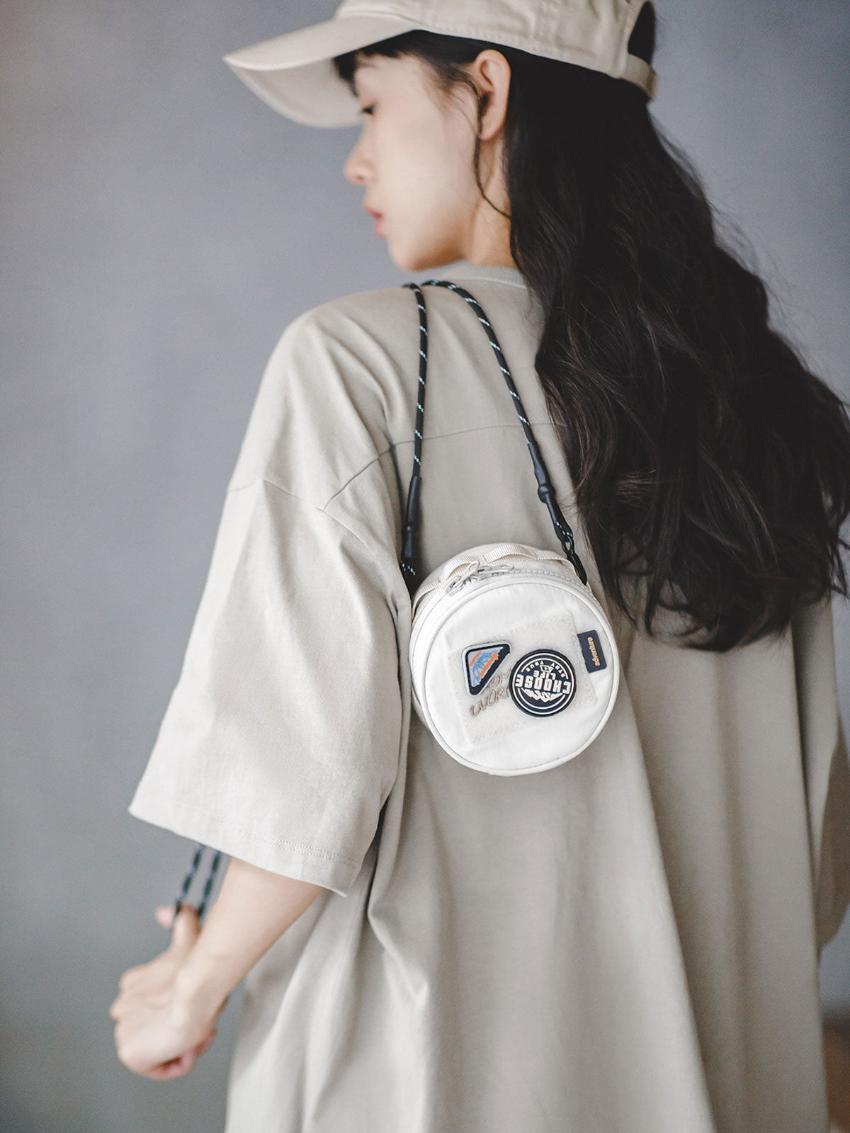 多機能小型ラウンドバッグ、日常使いやアウトドア活動に適し、スタイリッシュで実用的。