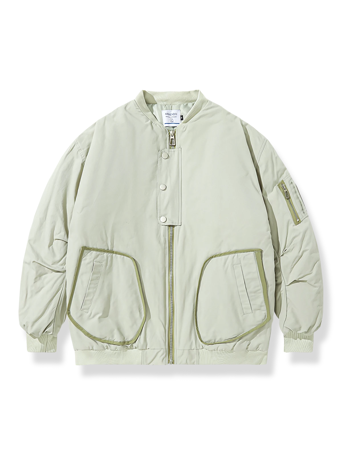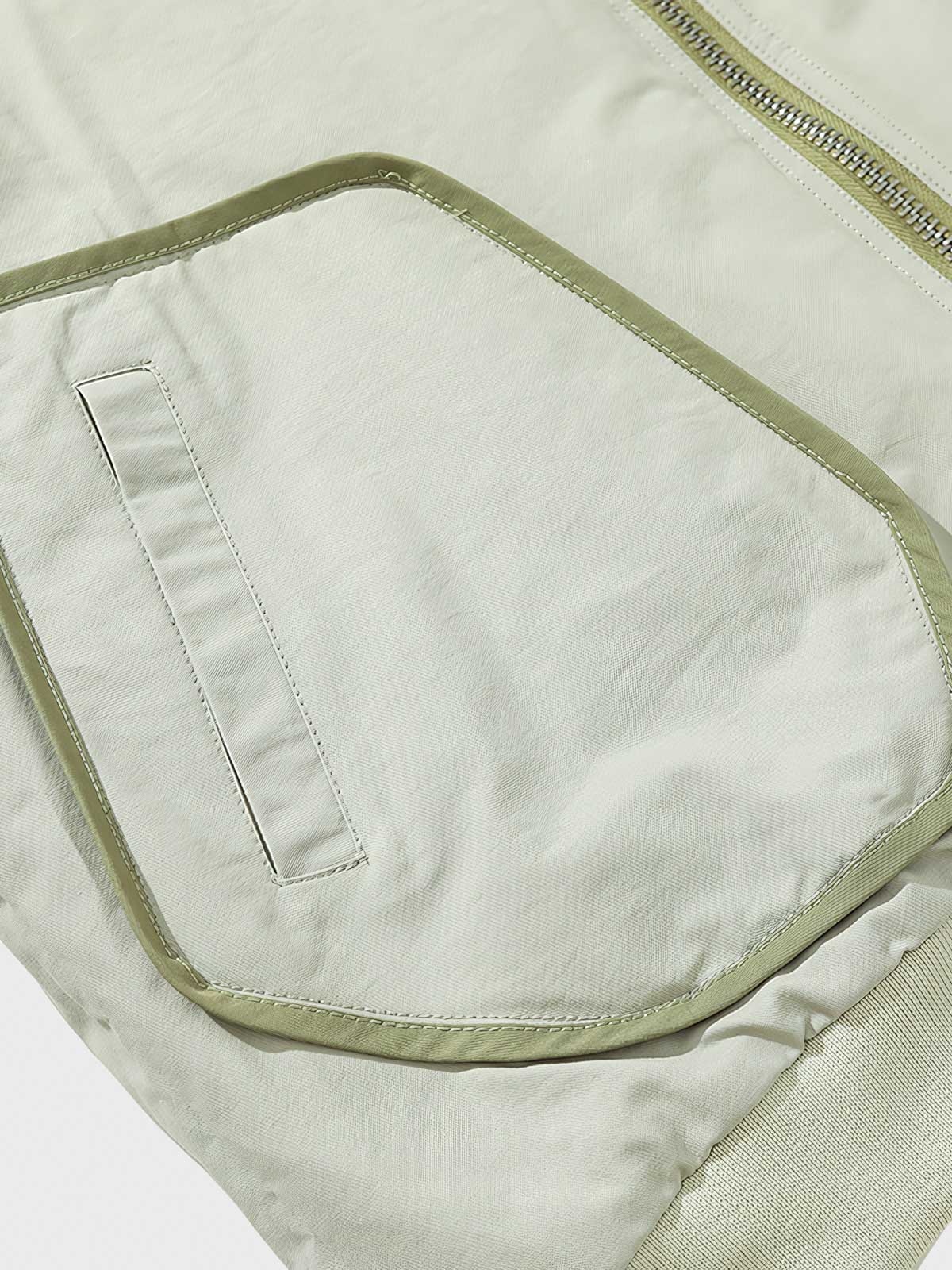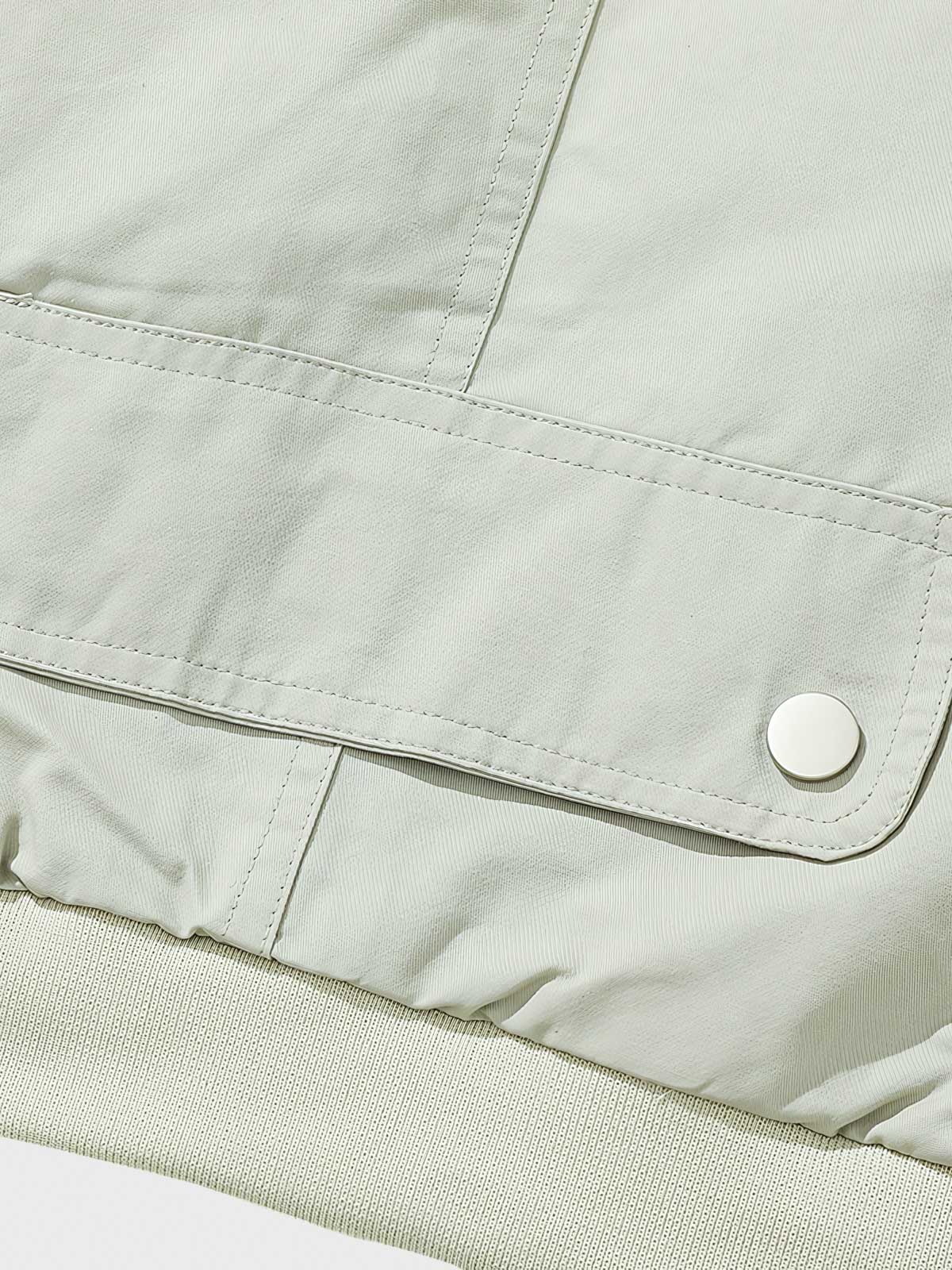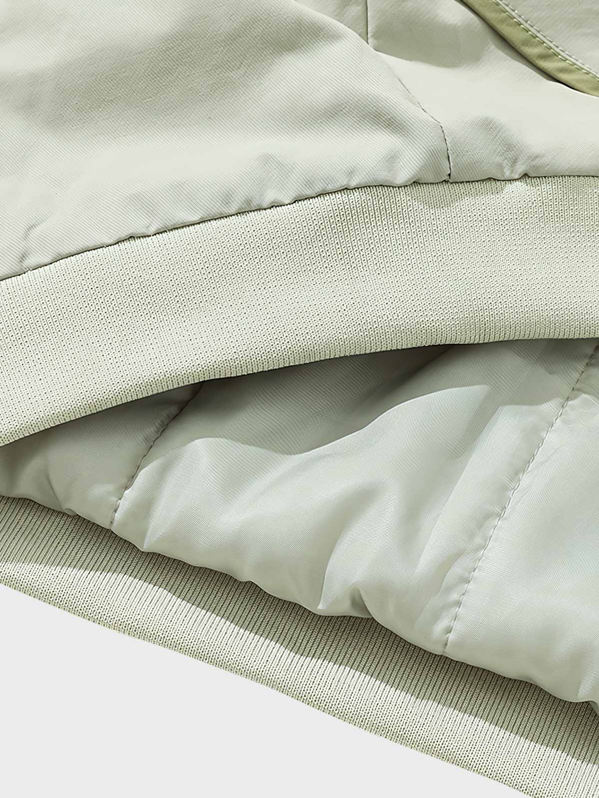 高品質の軽量素材を使用しており、保温性と通気性に優れています。フロントの大きなポケットや袖のディテールは、このジャケットの機能性とファッション性を高めています。柔らかいライトグリーンの色調はコーディネートしやすく、全体のデザインはシンプルで日常着に適しています。