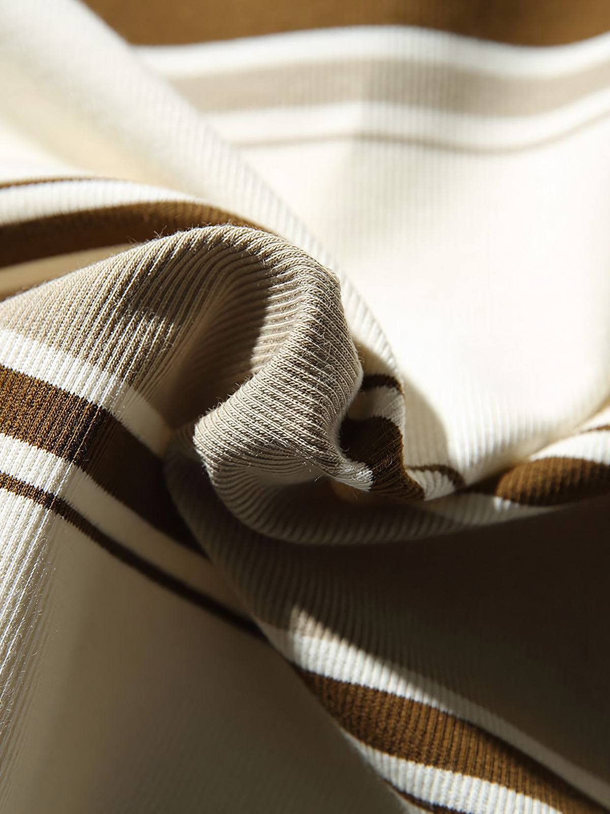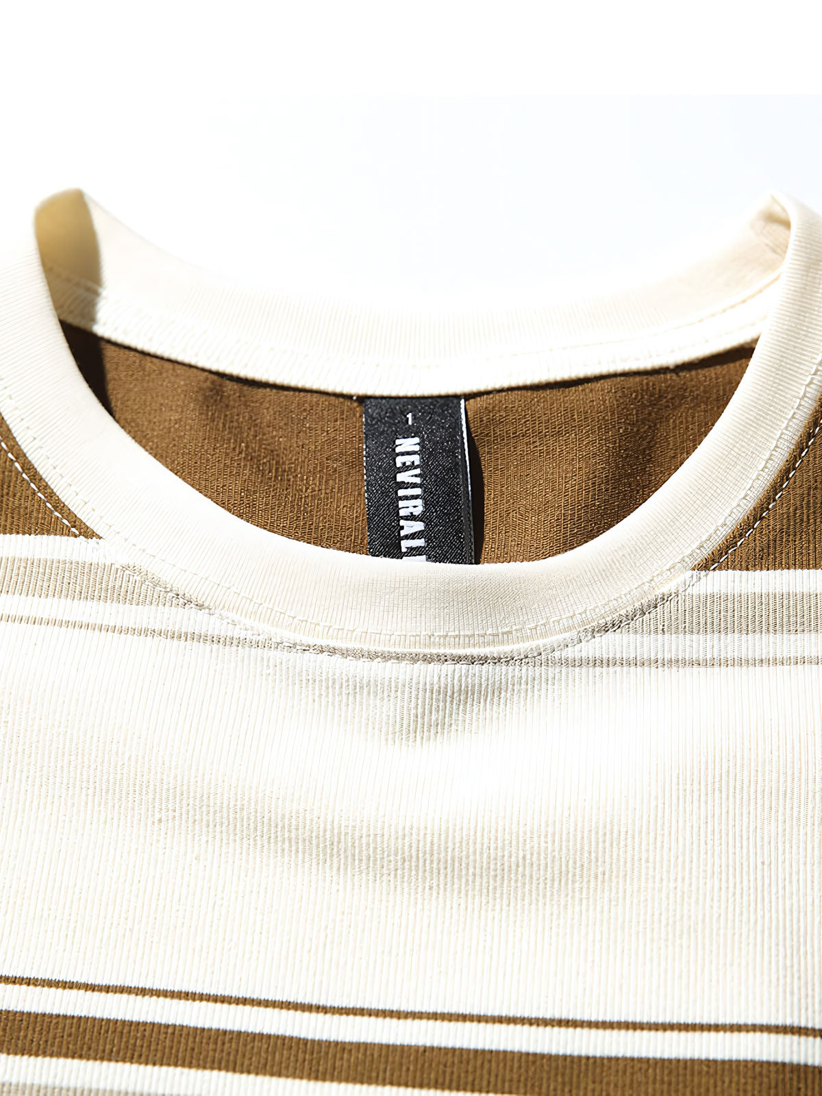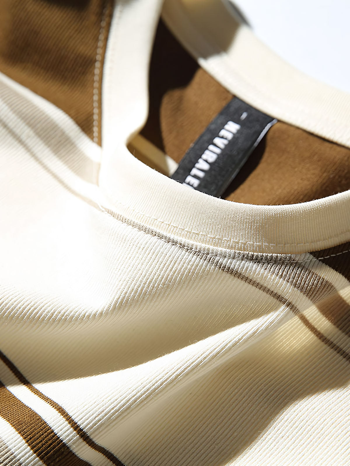 ゆったりシルエットのストライプ切り替え半袖Tシャツ、快適で様々なスタイルにマッチ。