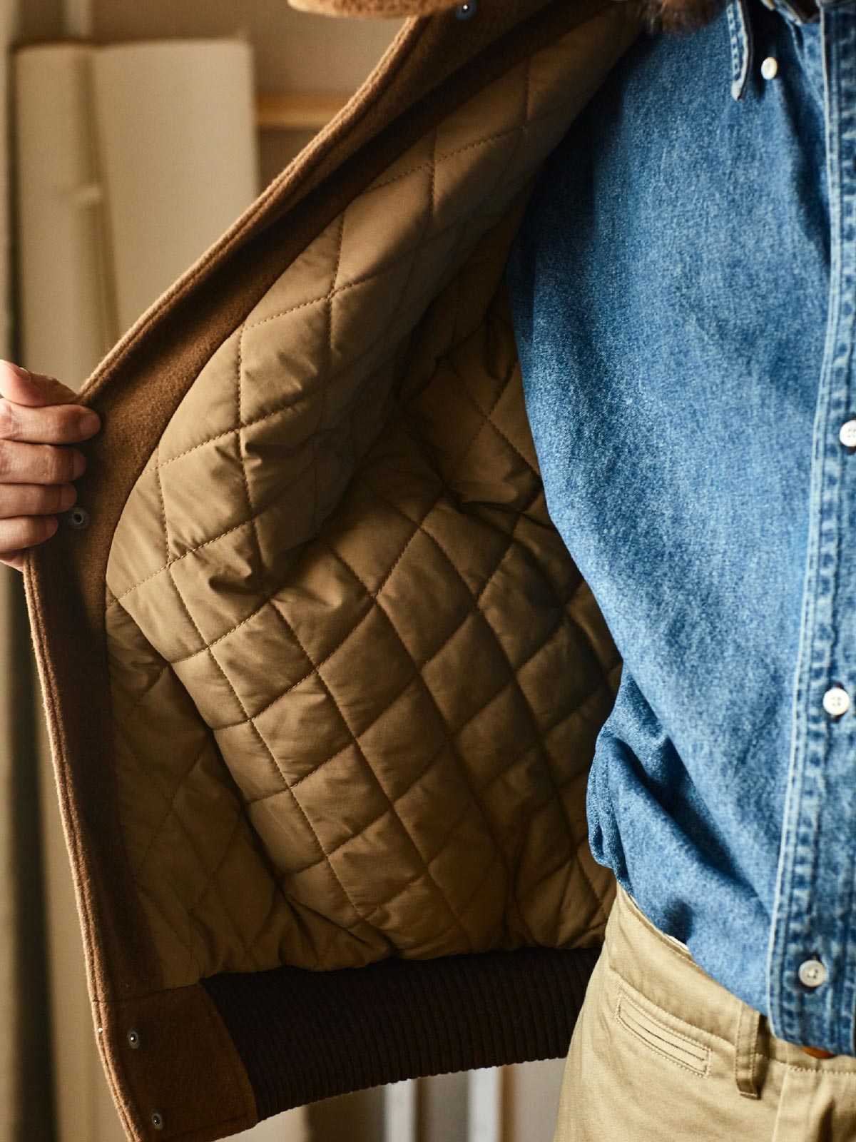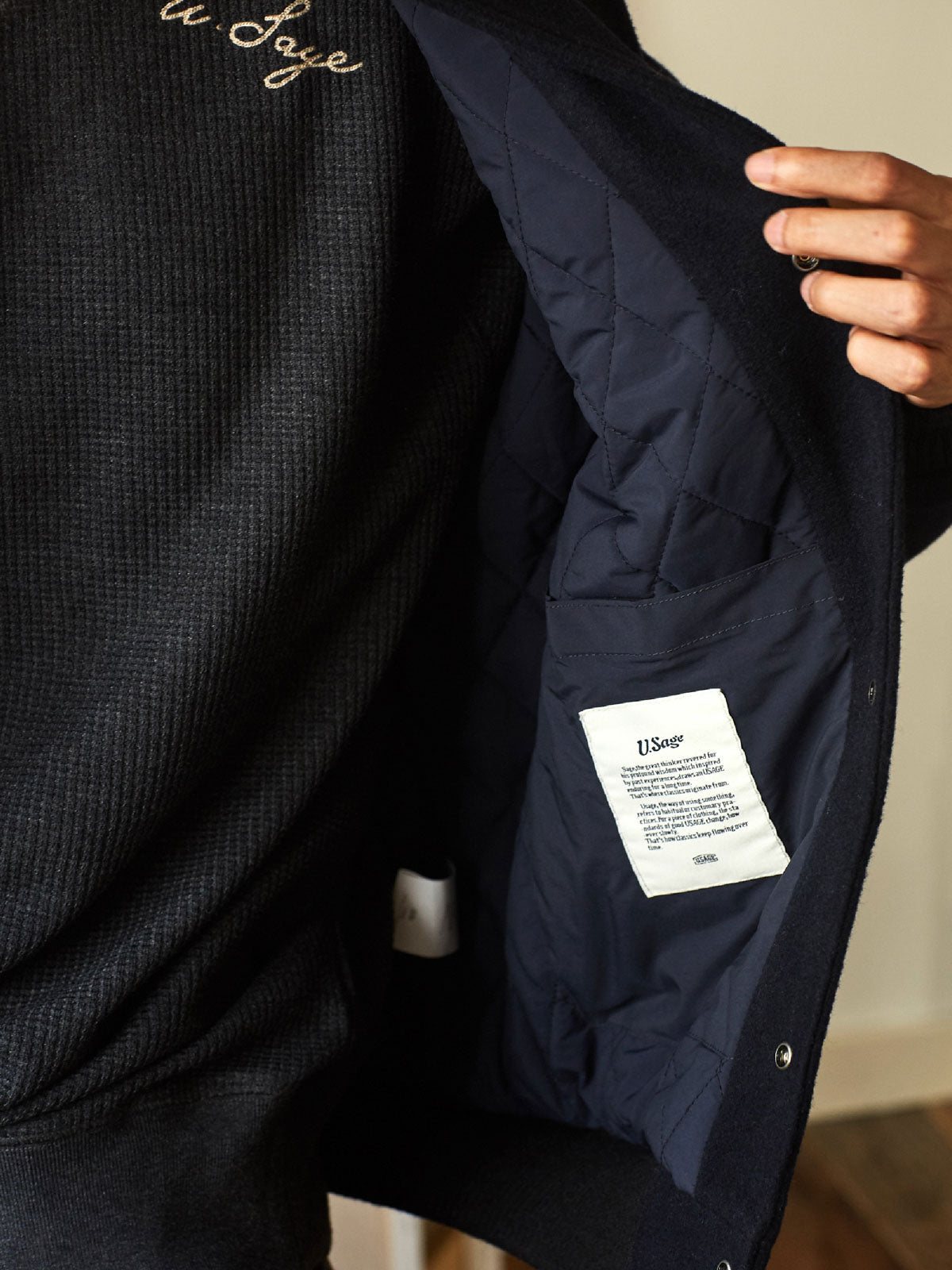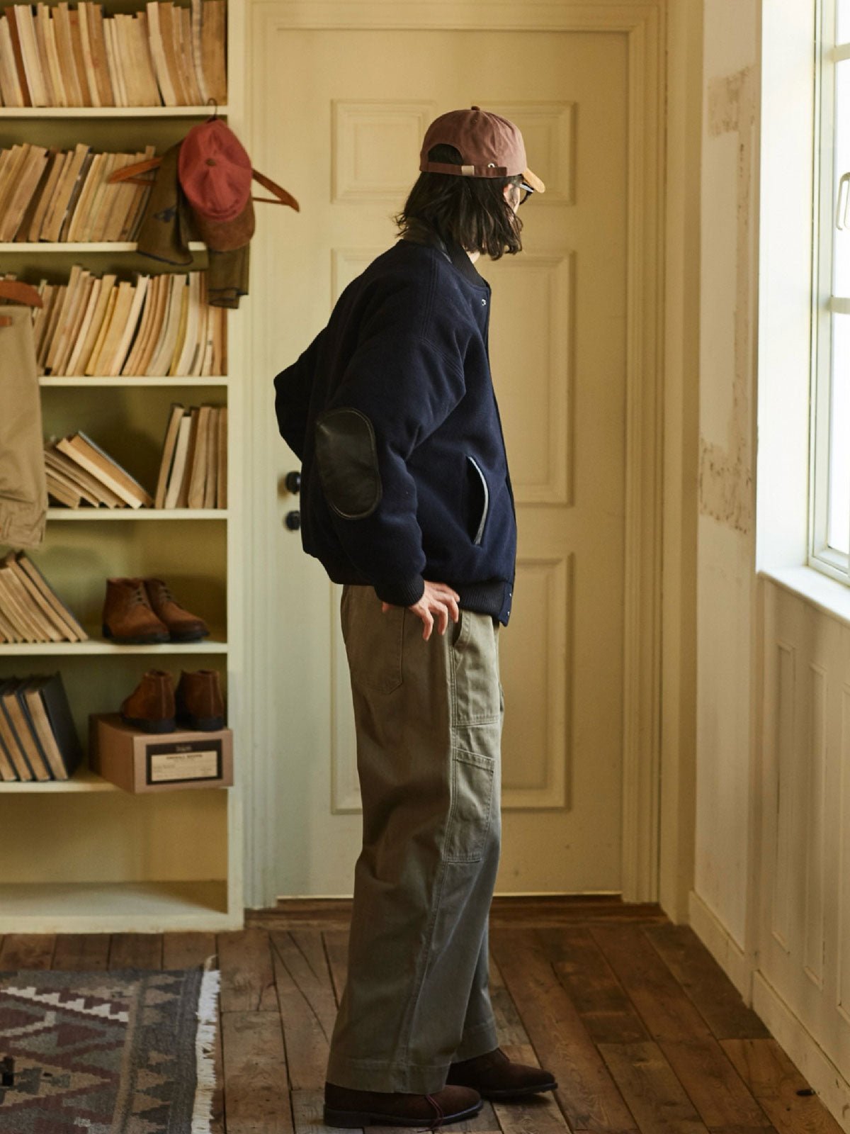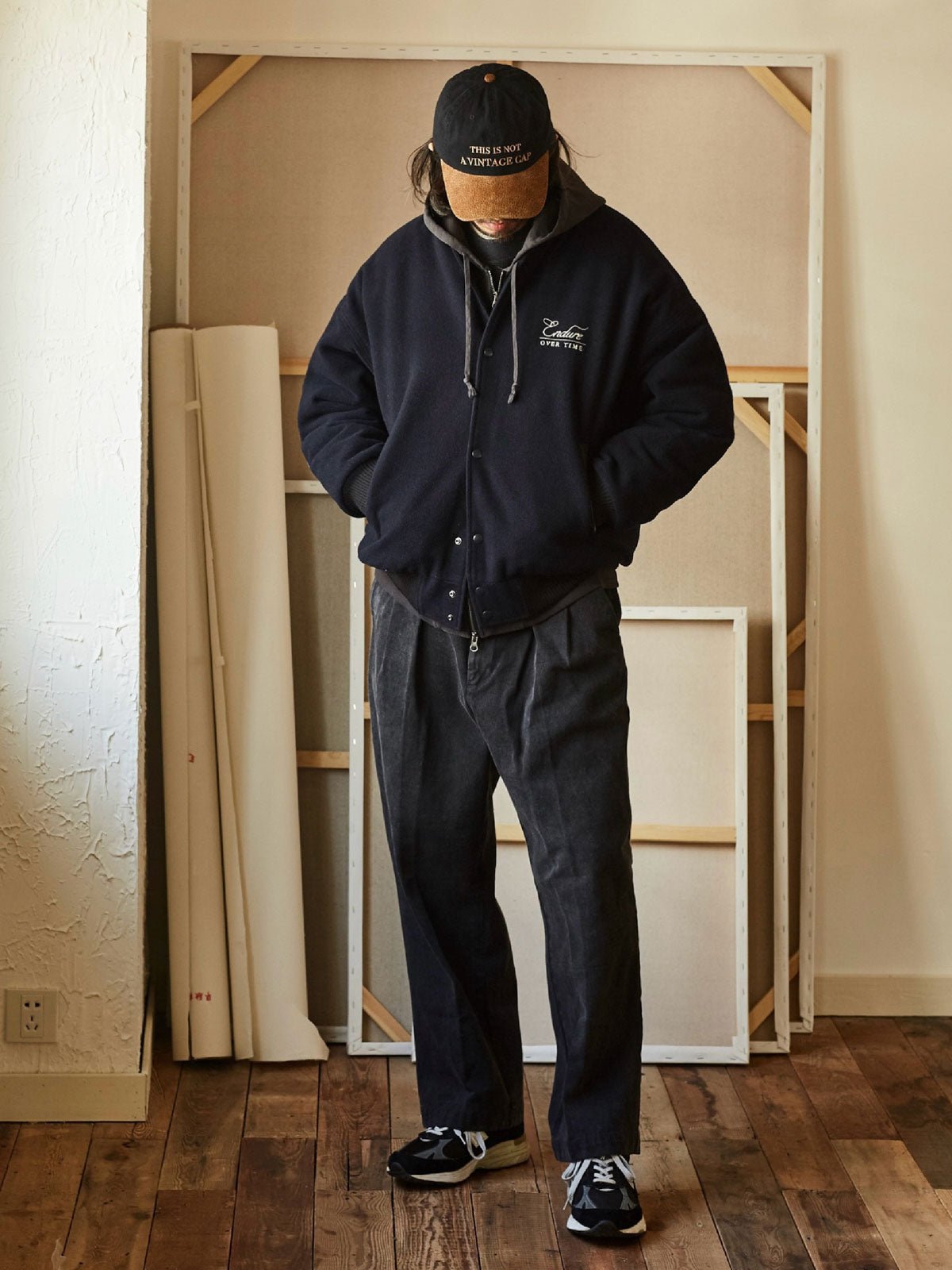 付属のヴィンテージ風のE字刺繍パッチにはピンが付いており、着用者が自由にカスタマイズし、個人のスタイルを表現することができます。深いネイビーと深いカーキの色合いが、レトロでユニークなアメリカンスポーツスタイルを演出し、カジュアルからフォーマルまで様々なスタイルに簡単に溶け込むことができます。