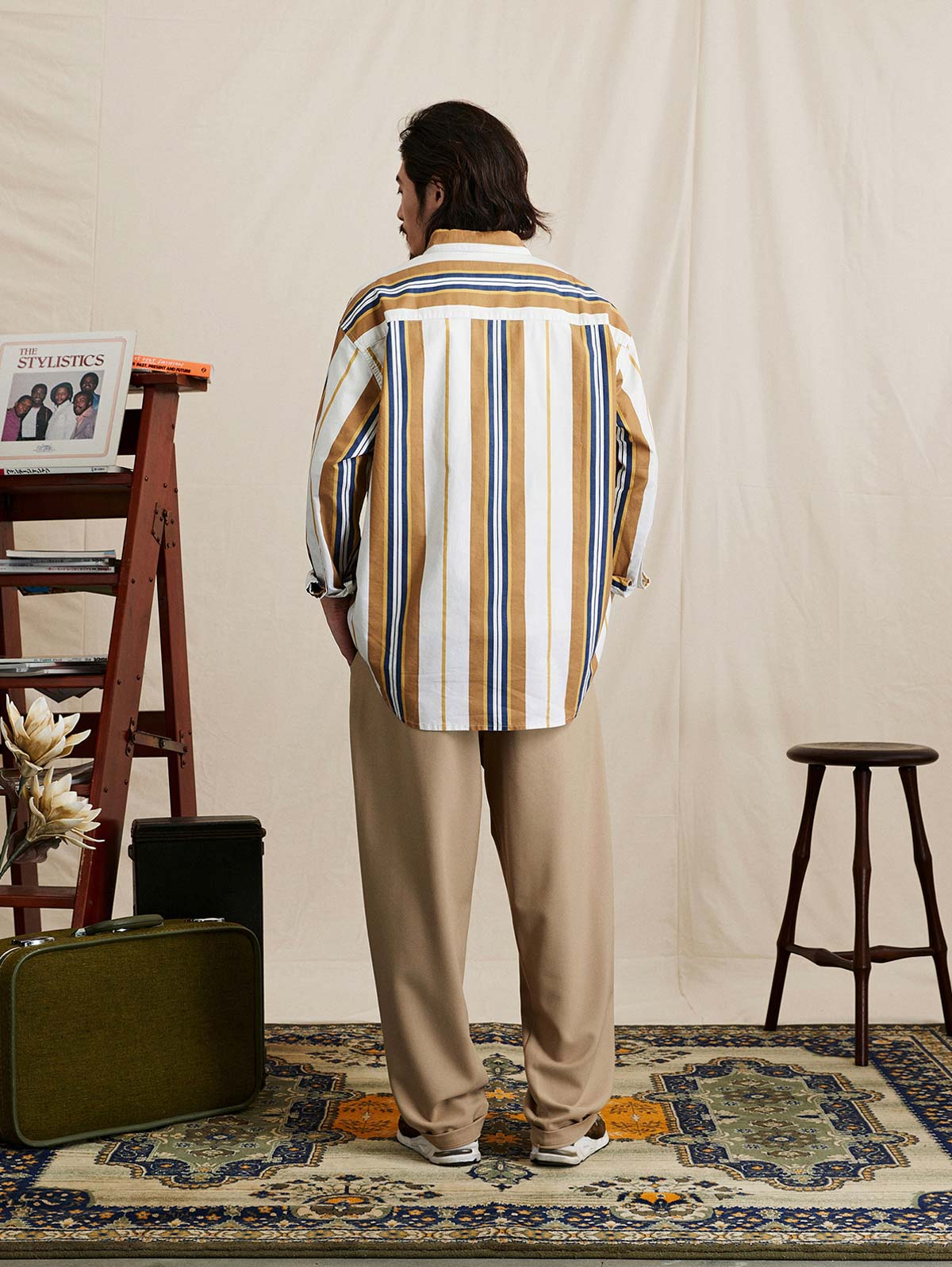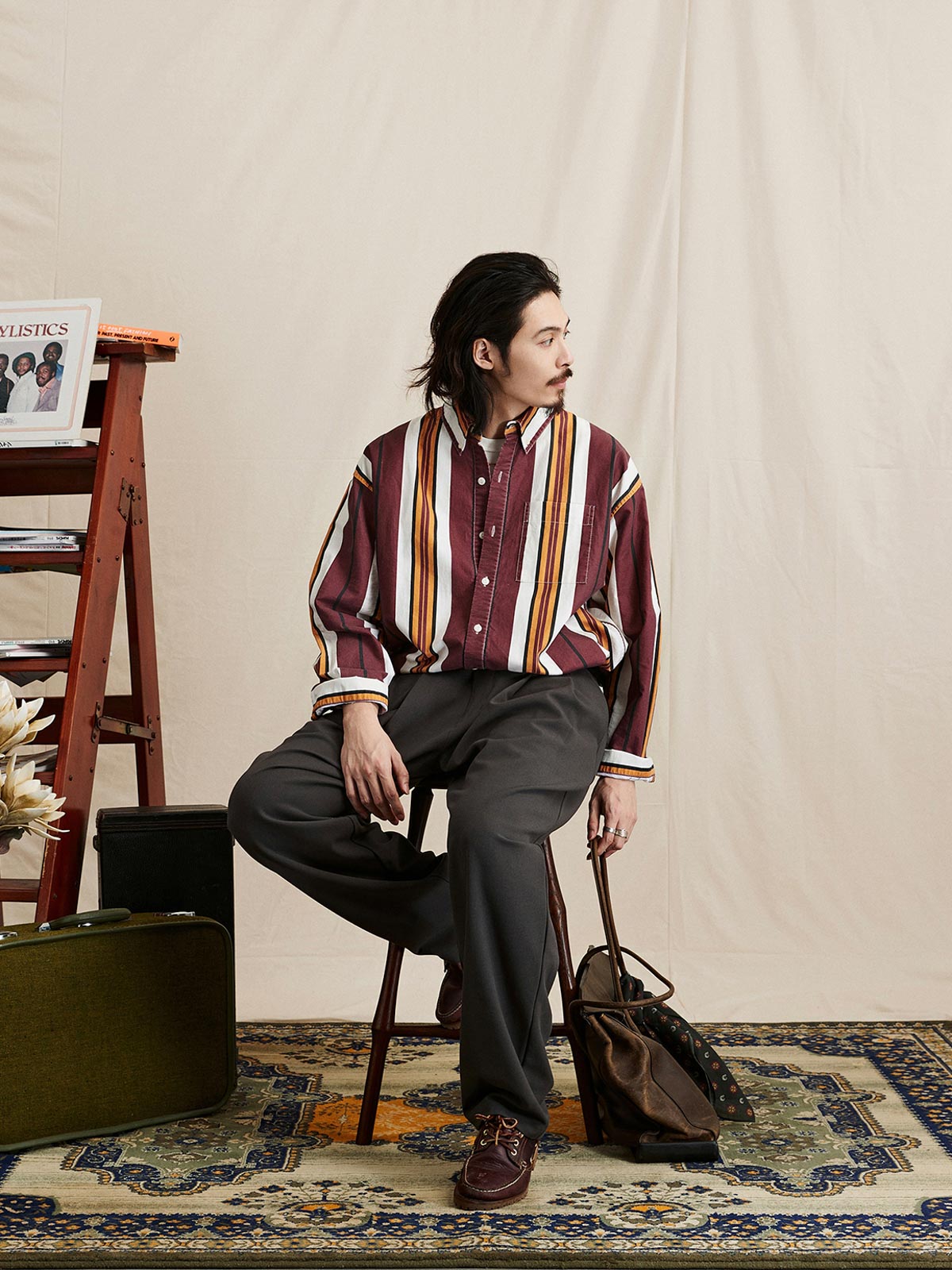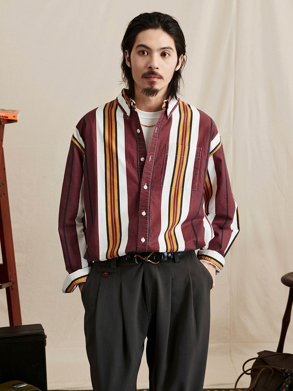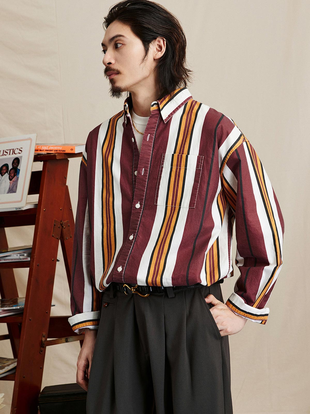 秋冬シーズンに欠かせないこのヴィンテージ加工ストライプ長袖シャツは、カジュアルでリラックスしたスタイルで秋冬に活気を与えます。180gの100%ロングステープルコットンオックスフォード生地を使用しており、快適で柔らかく、耐久性と通気性に優れています。デジタルプリント技術により、ストライプの色がしっかりと固定され、クラシックなストライプ配色がシャツ全体にヴィンテージ感を与えます。ストーンウォッシュ加工により、表面に快適なフランネル感を持たせ、微妙な色落ち感を表現。シャツの襟には古着風の小さなボタンが付いており、形を保ちます。高いスリットとラウンドヘムのデザインが、さらにレトロな魅力を引き立てます。黄色のストライプと赤色のストライプの2色展開で、どちらも秋冬のスタイルに温かさとファッション性をプラスします。