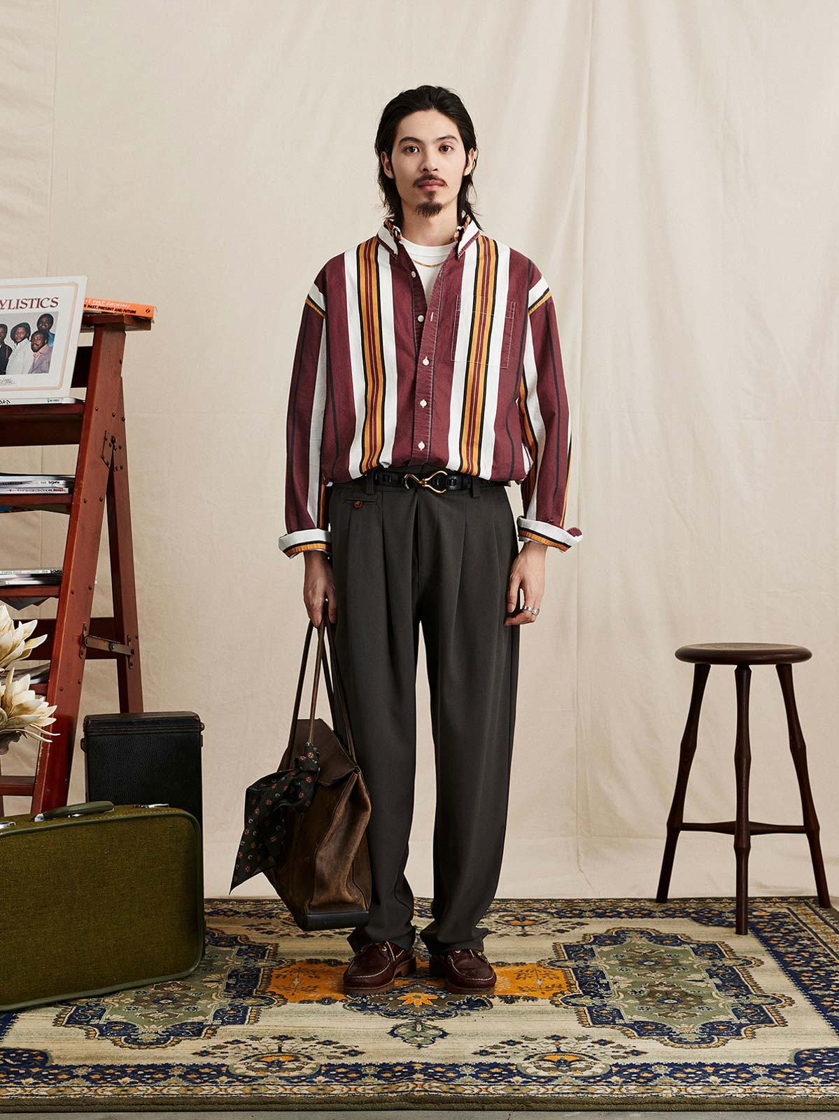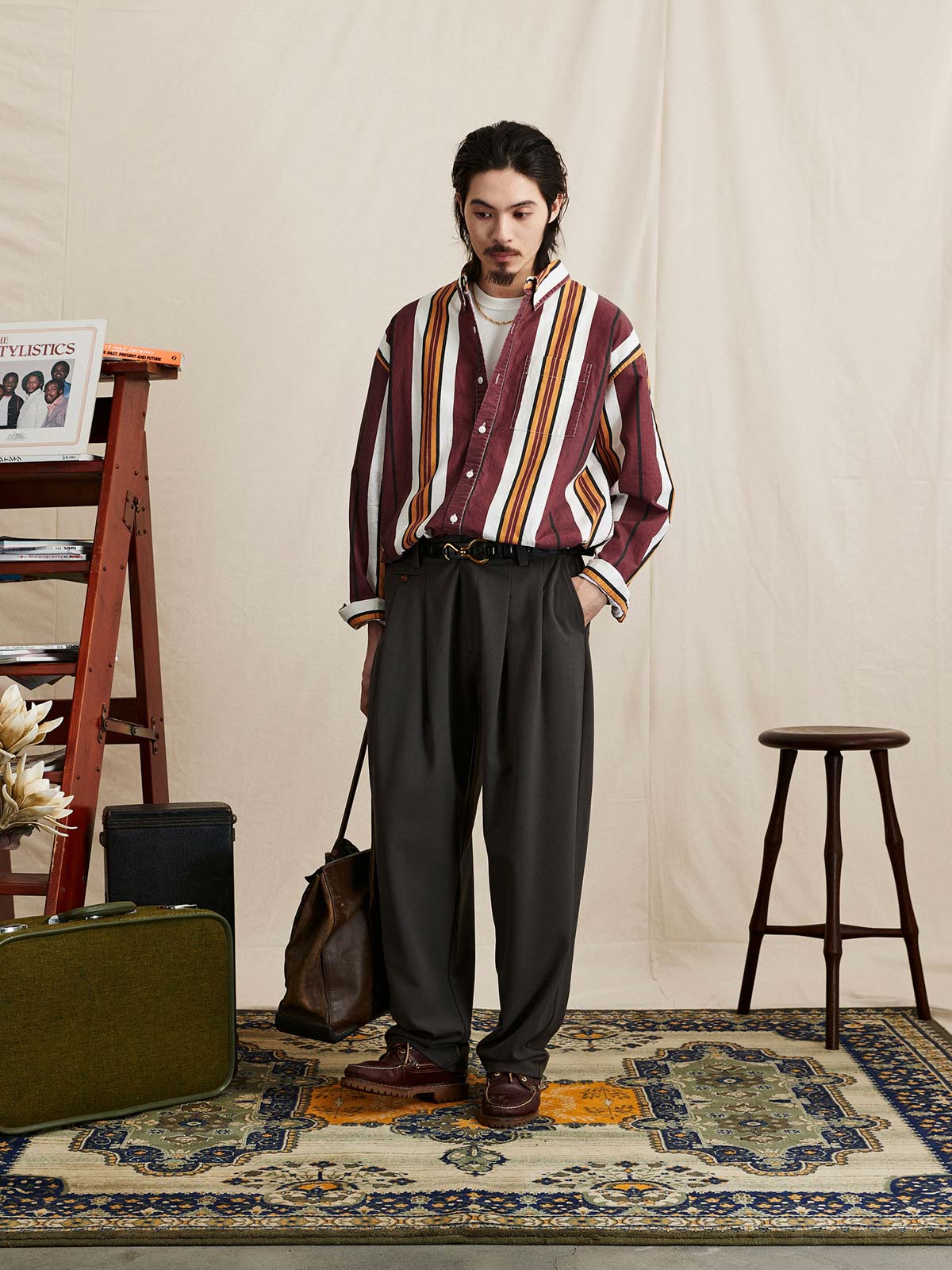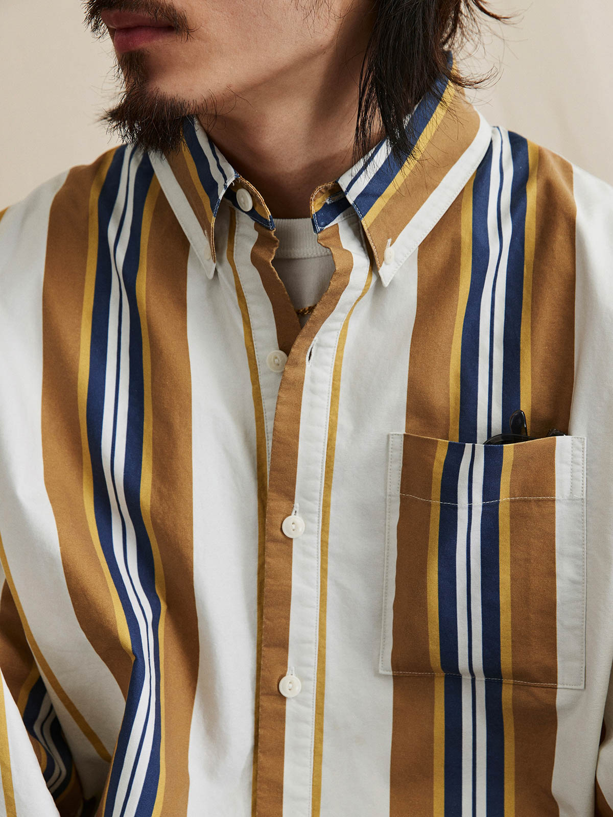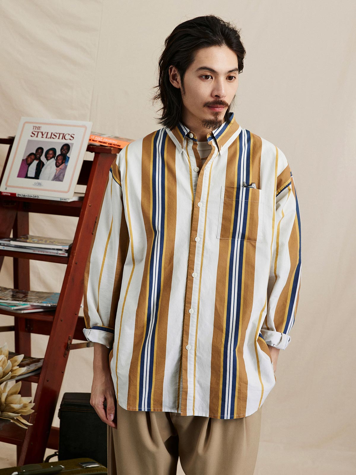 秋冬シーズンに欠かせないこのヴィンテージ加工ストライプ長袖シャツは、カジュアルでリラックスしたスタイルで秋冬に活気を与えます。180gの100%ロングステープルコットンオックスフォード生地を使用しており、快適で柔らかく、耐久性と通気性に優れています。デジタルプリント技術により、ストライプの色がしっかりと固定され、クラシックなストライプ配色がシャツ全体にヴィンテージ感を与えます。ストーンウォッシュ加工により、表面に快適なフランネル感を持たせ、微妙な色落ち感を表現。シャツの襟には古着風の小さなボタンが付いており、形を保ちます。高いスリットとラウンドヘムのデザインが、さらにレトロな魅力を引き立てます。黄色のストライプと赤色のストライプの2色展開で、どちらも秋冬のスタイルに温かさとファッション性をプラスします。