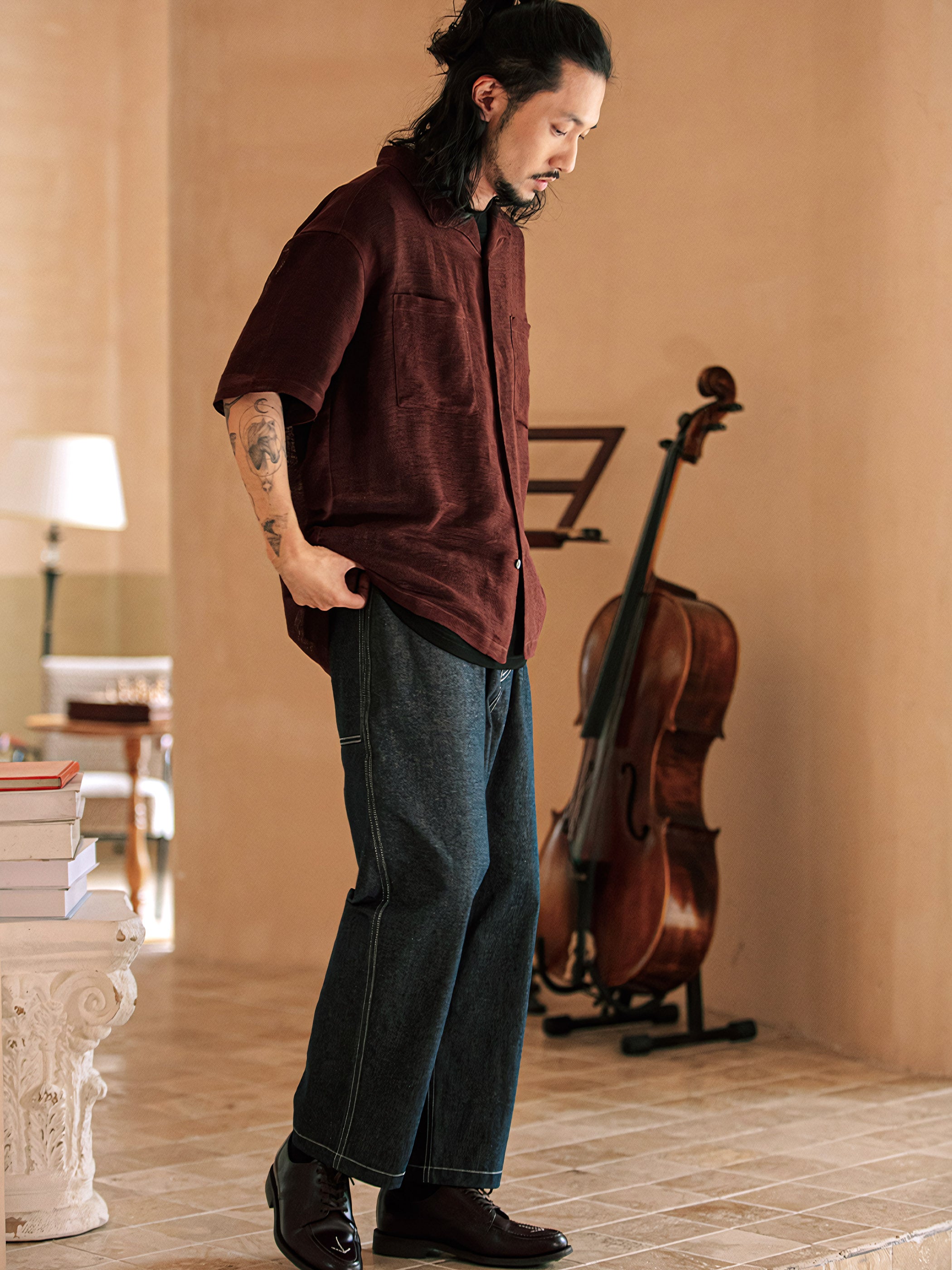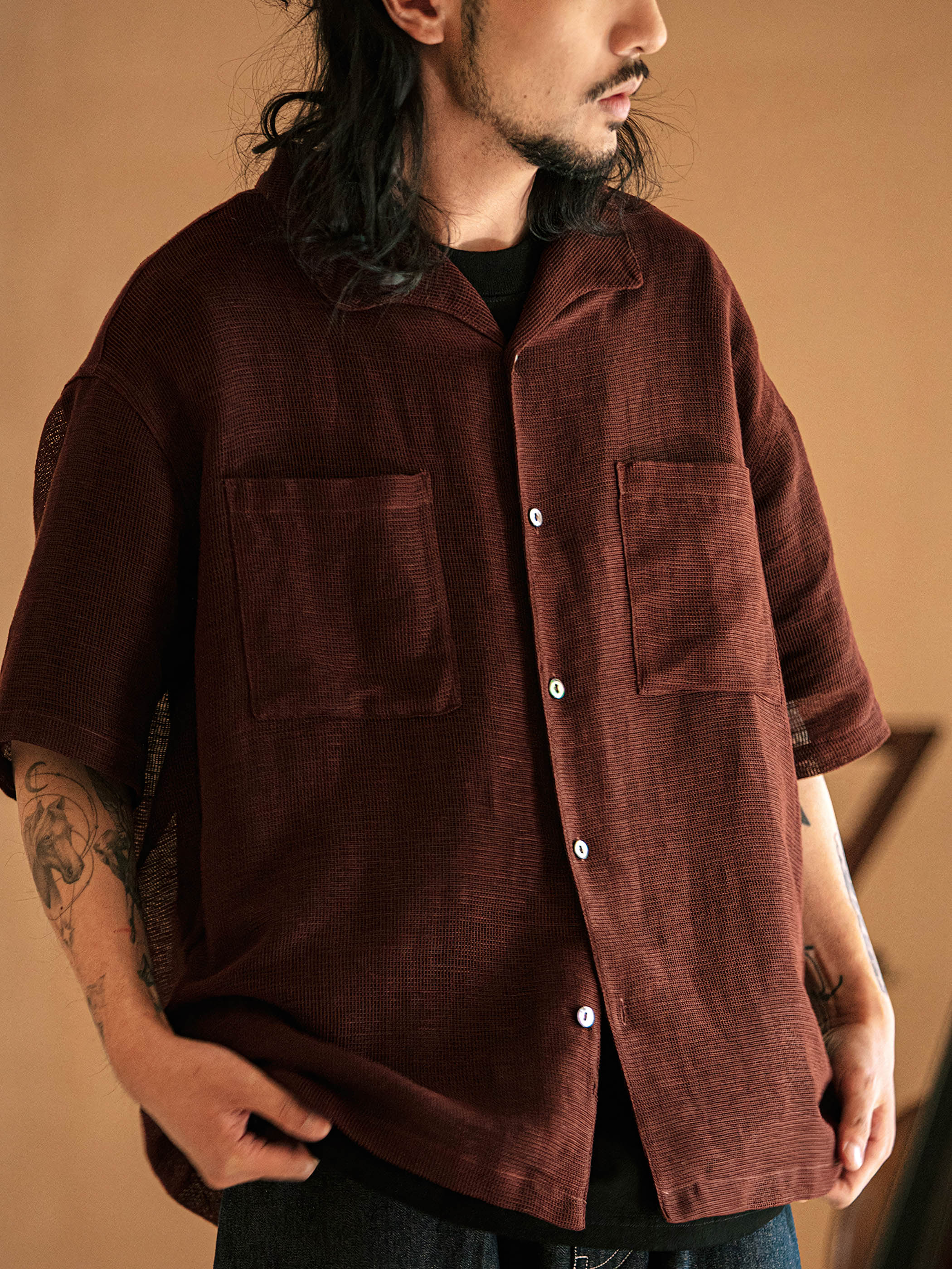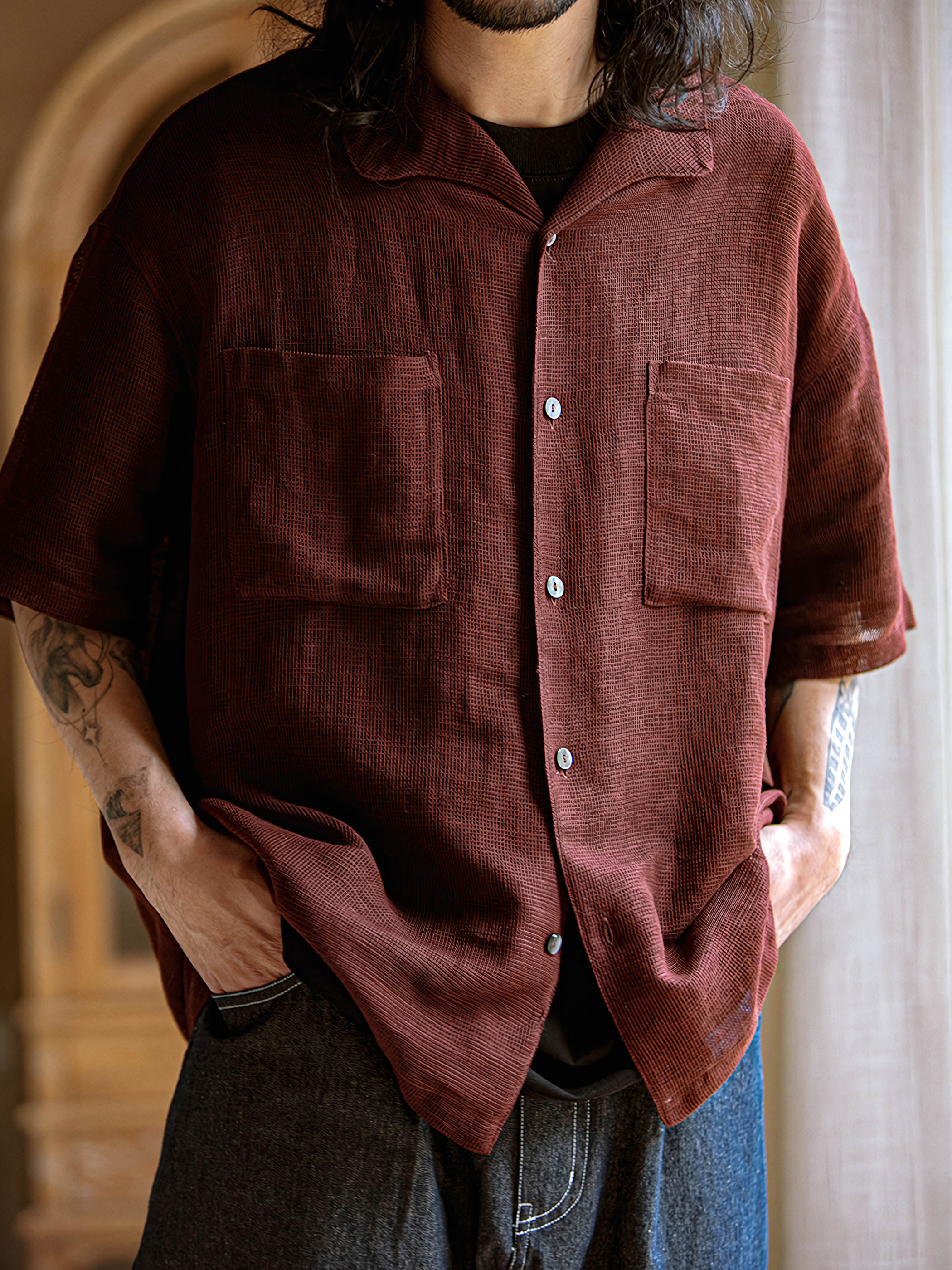 素材にはわずか105グラムのリネンコットンを使用し、交差して織り上げられた独特のメッシュ模様が特徴です。ウォッシュ加工を施した後は、肌に心地よくフィットし、通気性にも優れています。