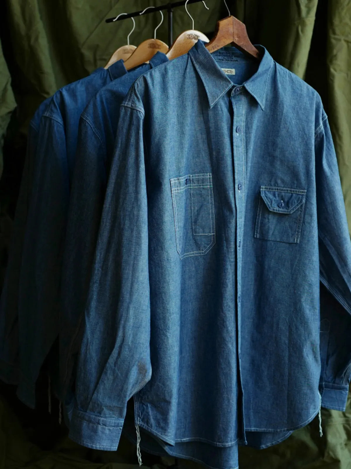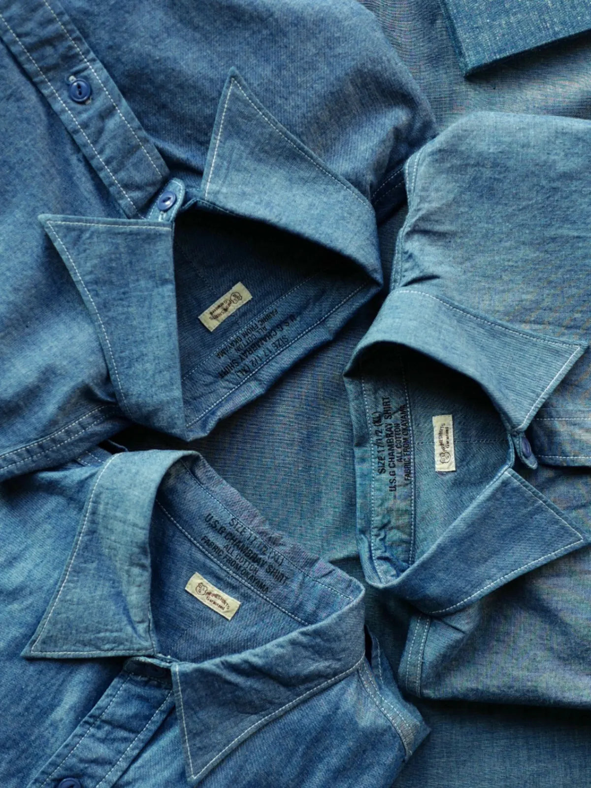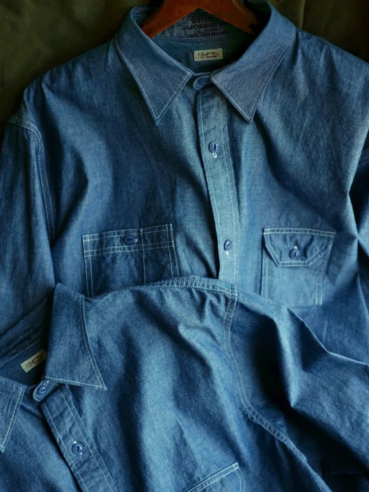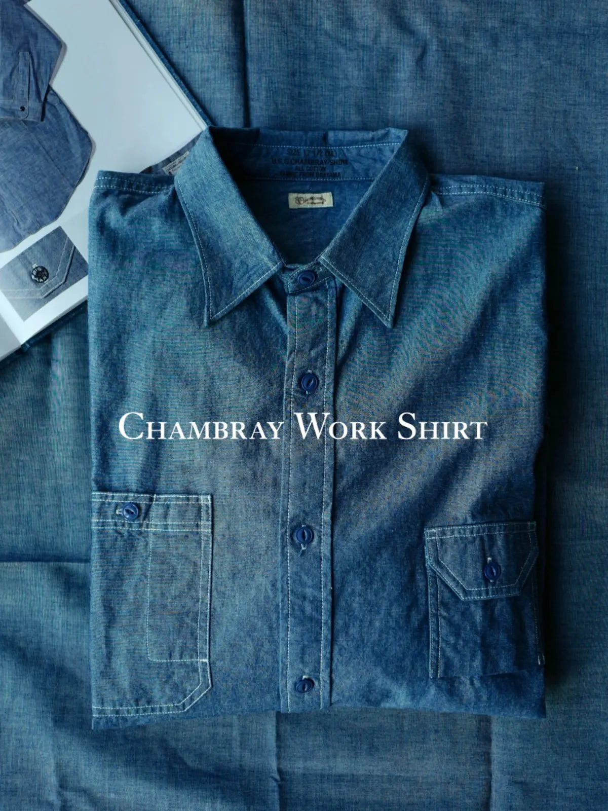 1920年代のアメリカ工装シャツを再現し、日本岡山の老式織機で織り上げたチャンブレー生地を使用した定番ワークシャツ。