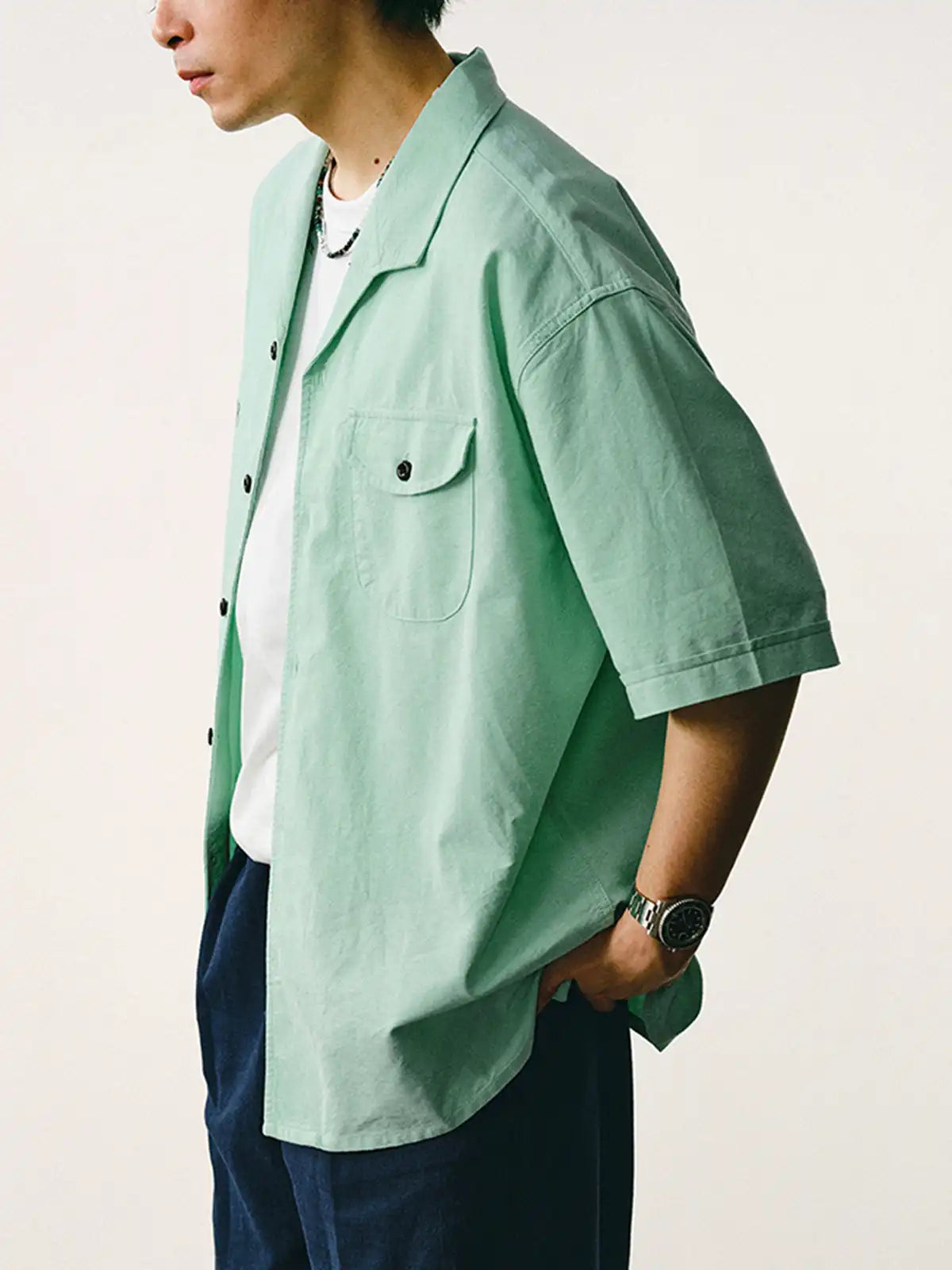 懐かしさを感じさせる色彩と酵洗加工が融合した、ゆったりとした半袖キューバシャツ。
