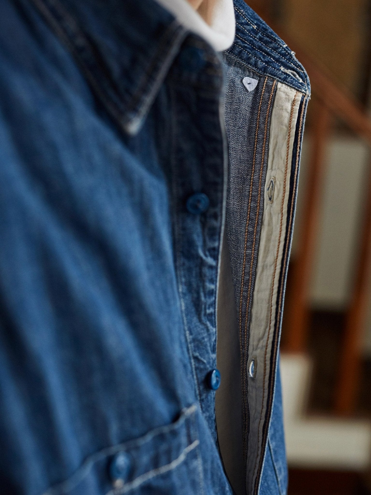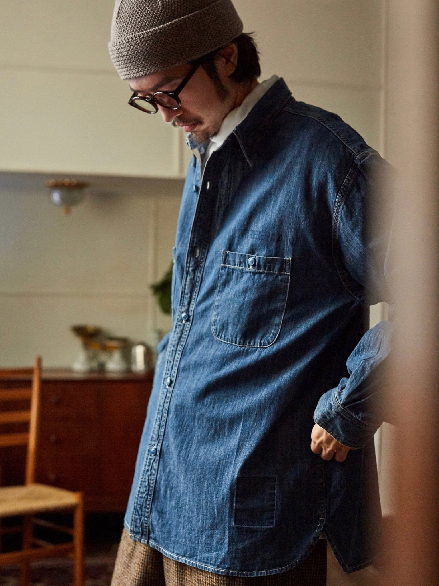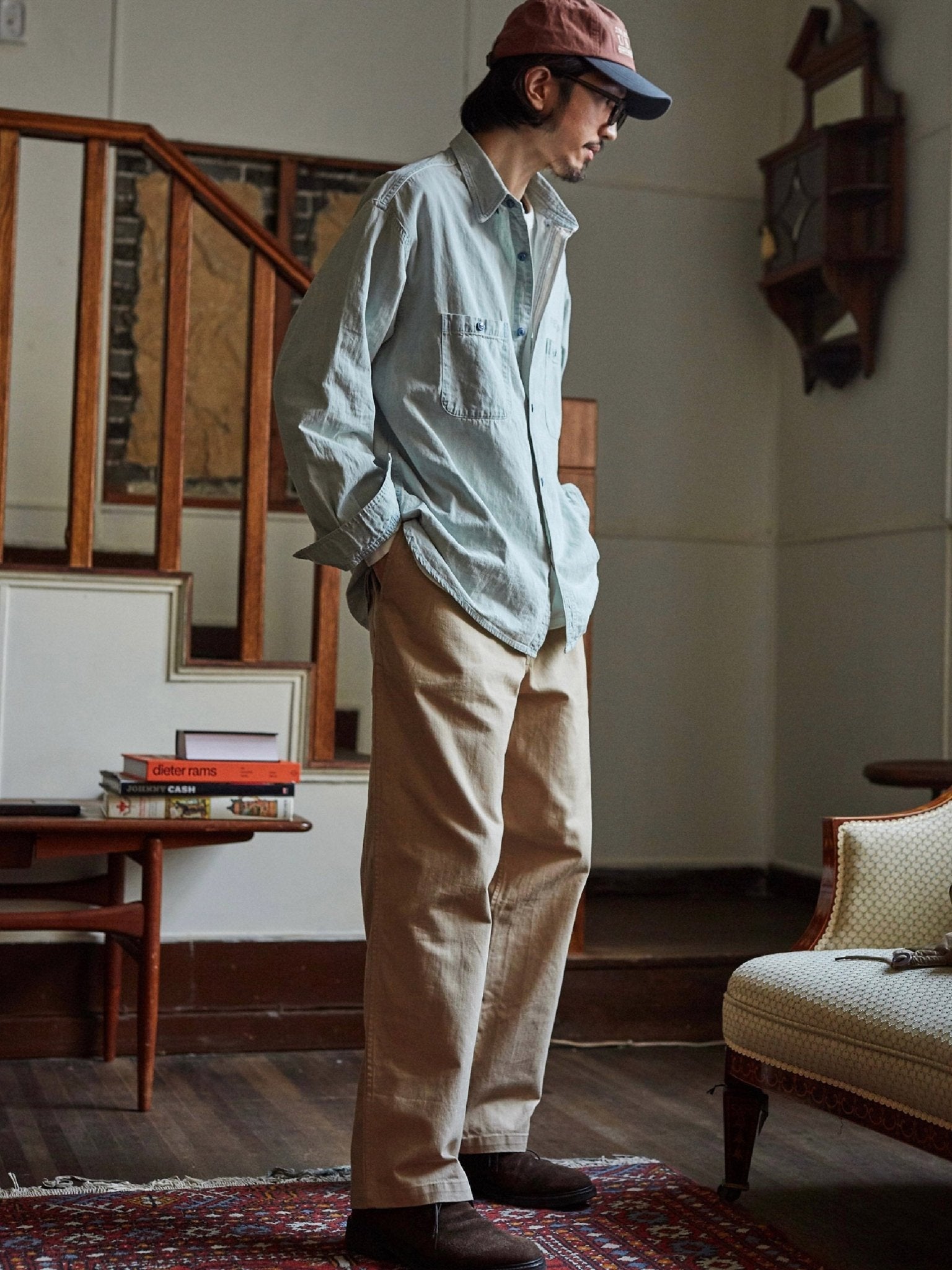 ディテールの処理に特に注意が払われており、異なるウォッシュと石磨き加工によりシャツに深みのある質感が与えられています。ダークバージョンはレトロなしっかりとした質感と粒状感があり、ライトバージョンは柔らかさと快適さに重点が置かれています。ダブルボタンポケットやネイビーカットボタン、シルクスクリーンプリントされたフォントなど、すべてのディテールがシャツのレトロなスタイルを強調しています。
