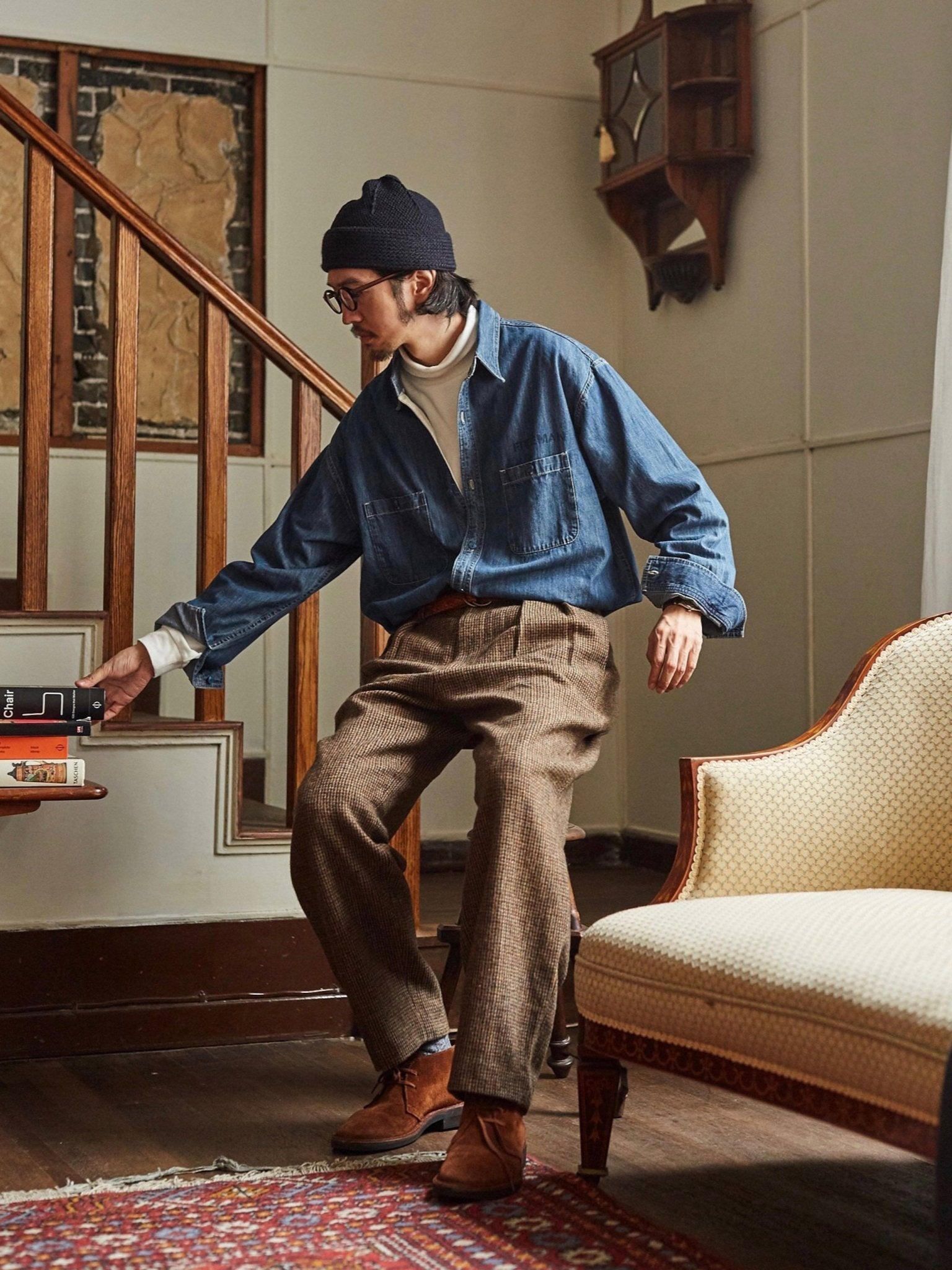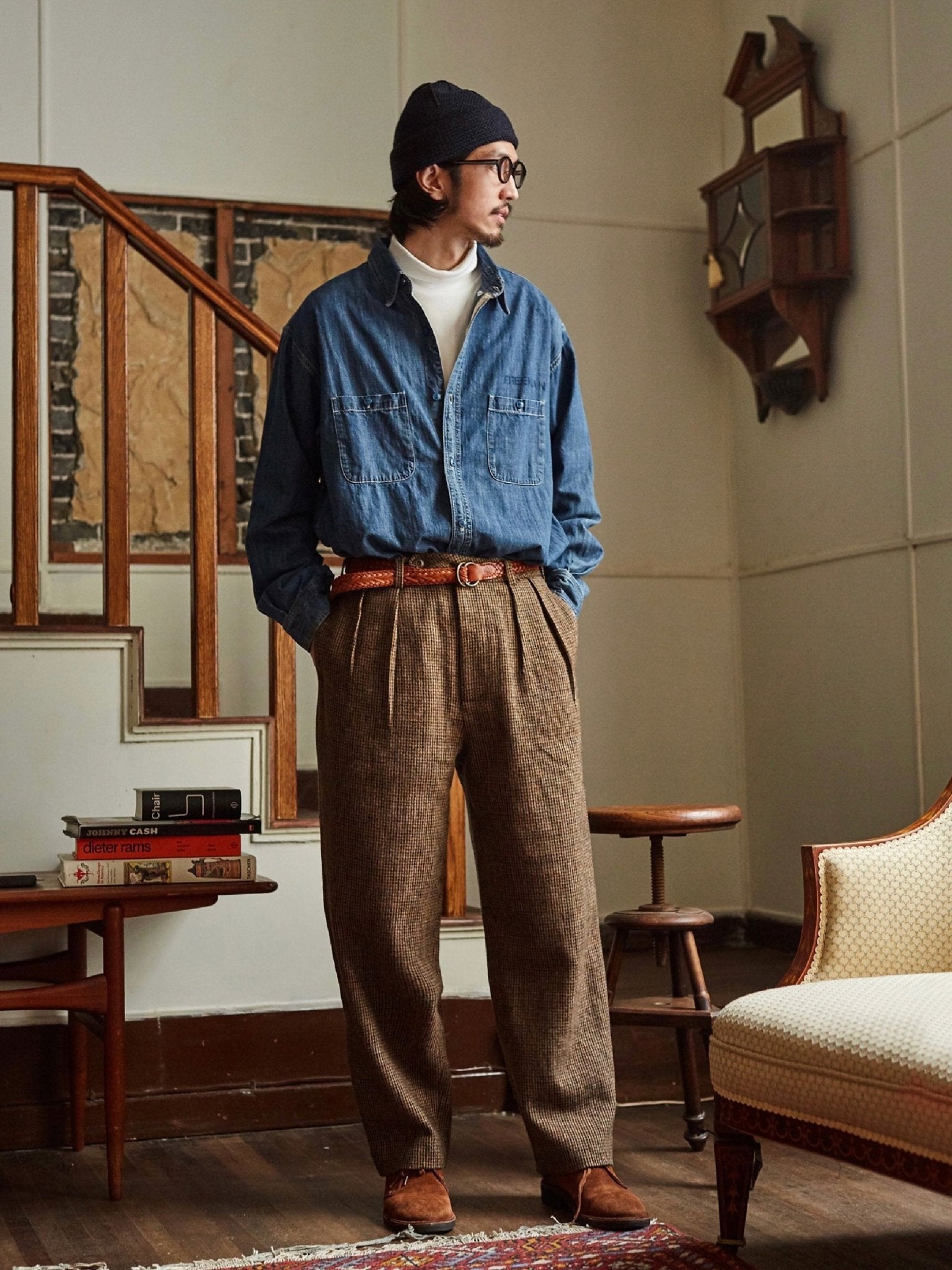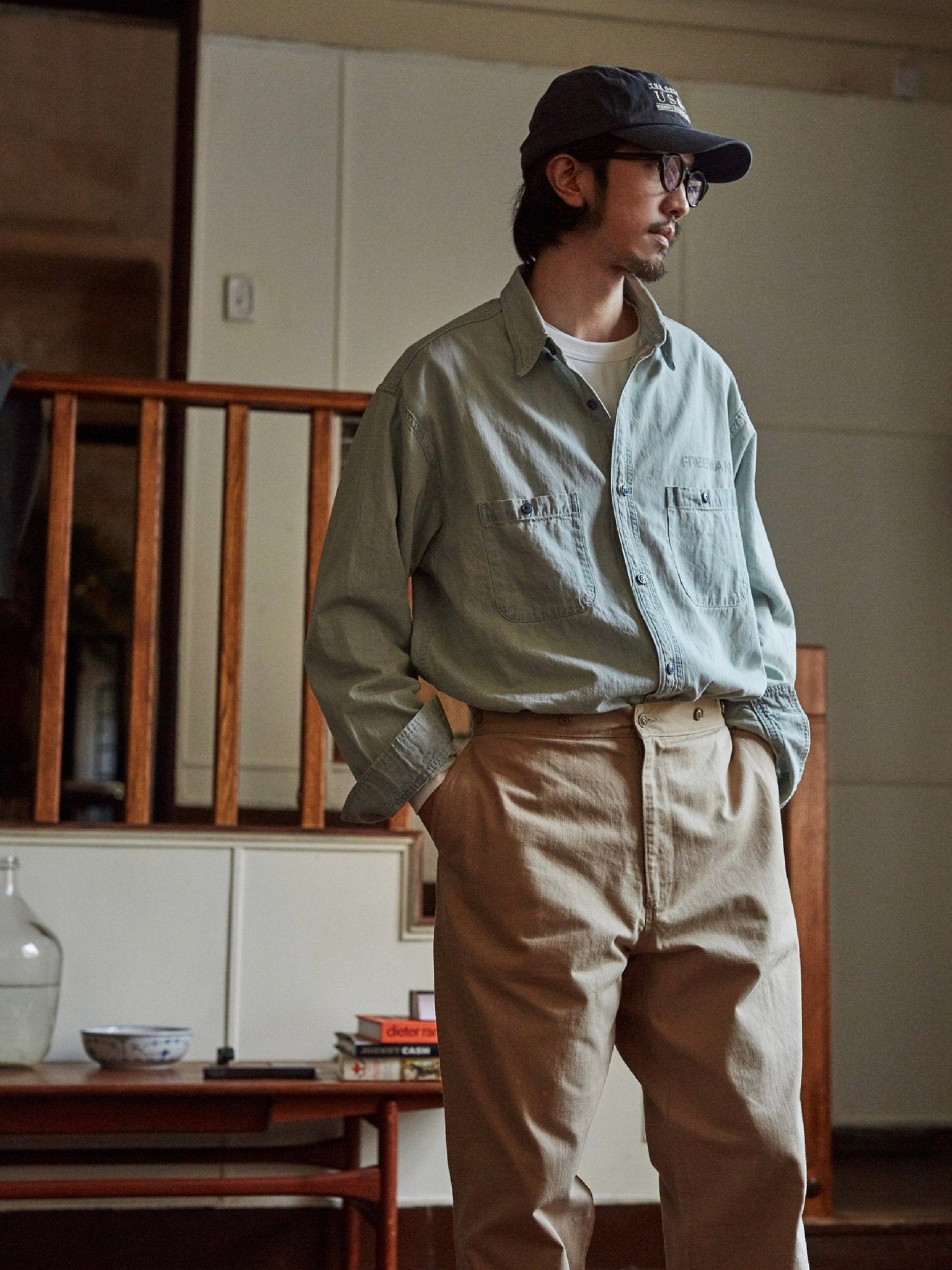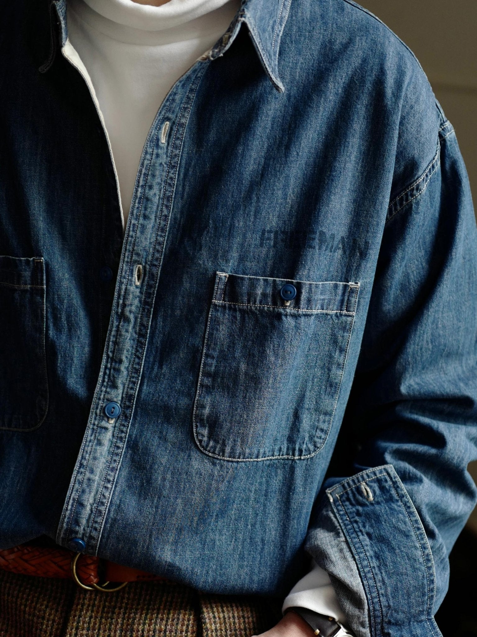 100%コットンの素材は快適な着心地を保証し、横竹節糸織り技術による独特のテクスチャ効果が与えられています。異なるウォッシュと石磨き加工により、各シャツに異なるレトロな質感が与えられ、個々のシャツが独自のヴィンテージスタイルを表現しています。