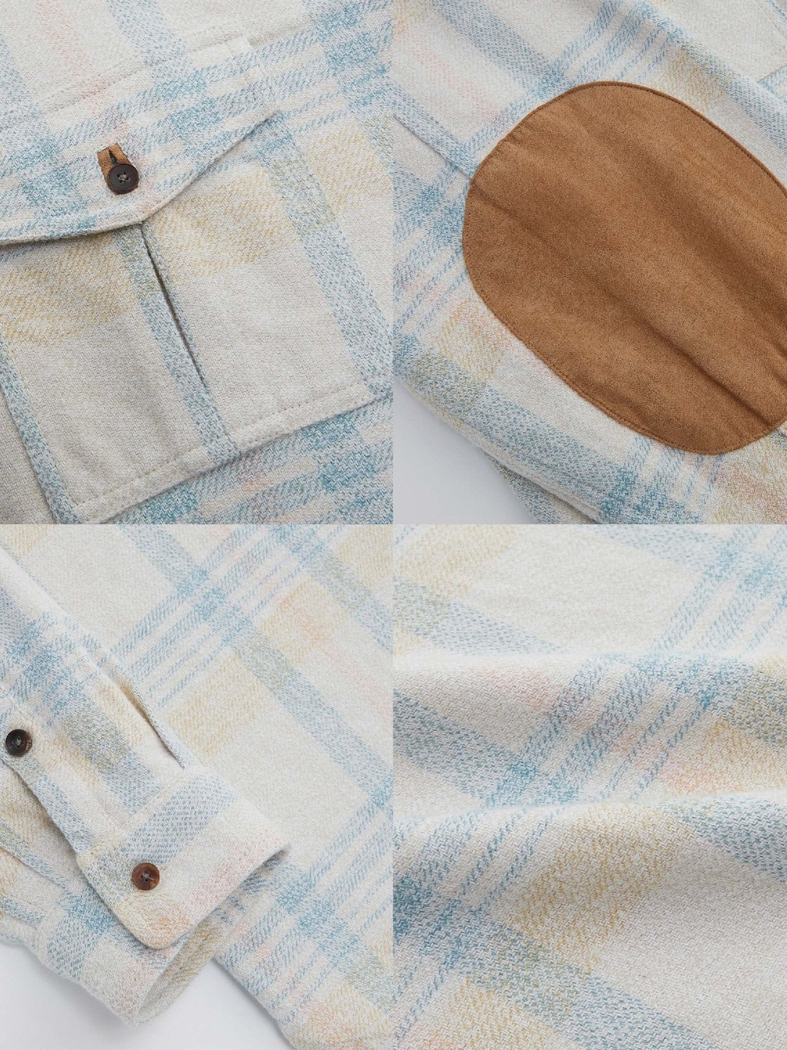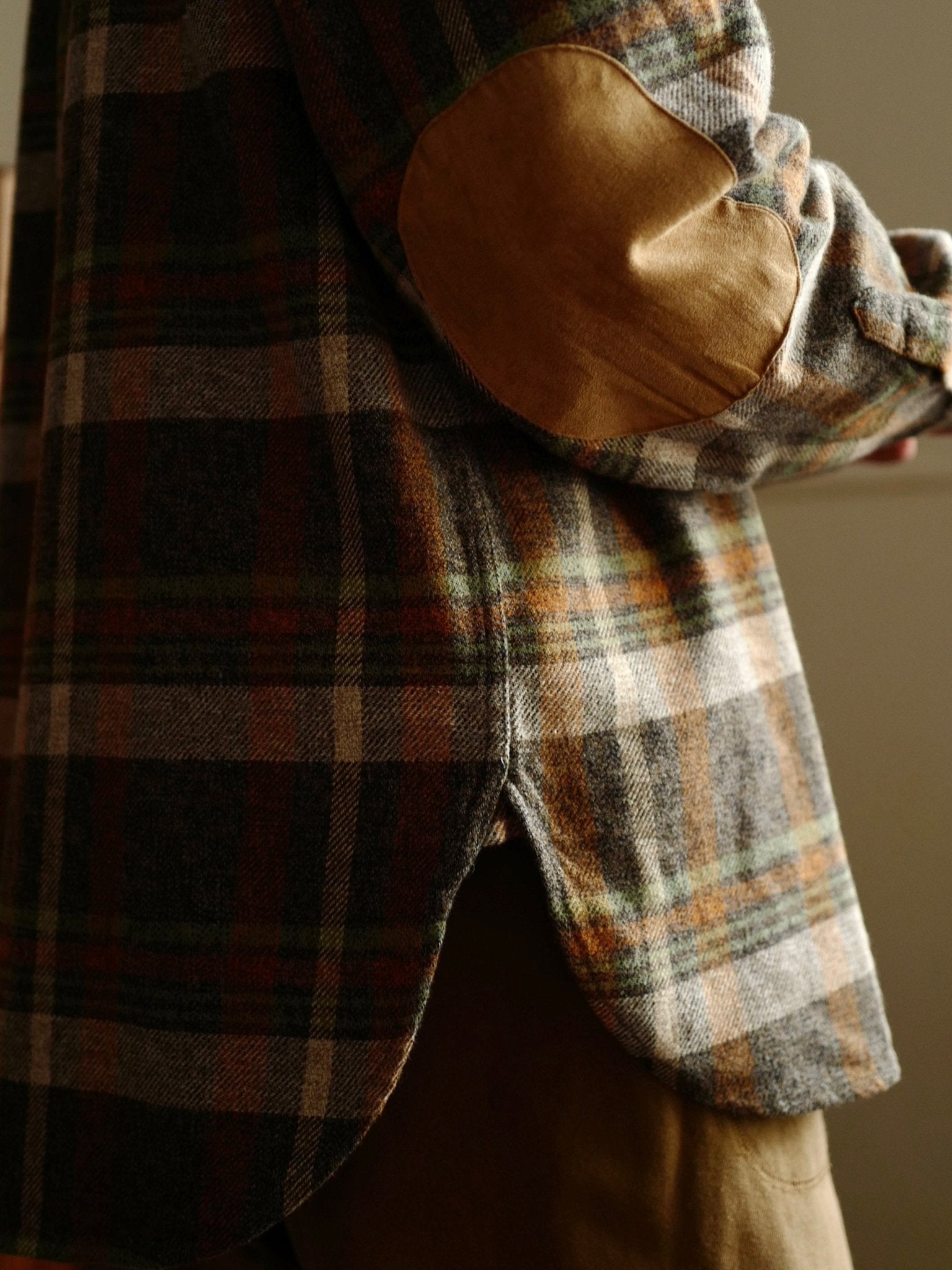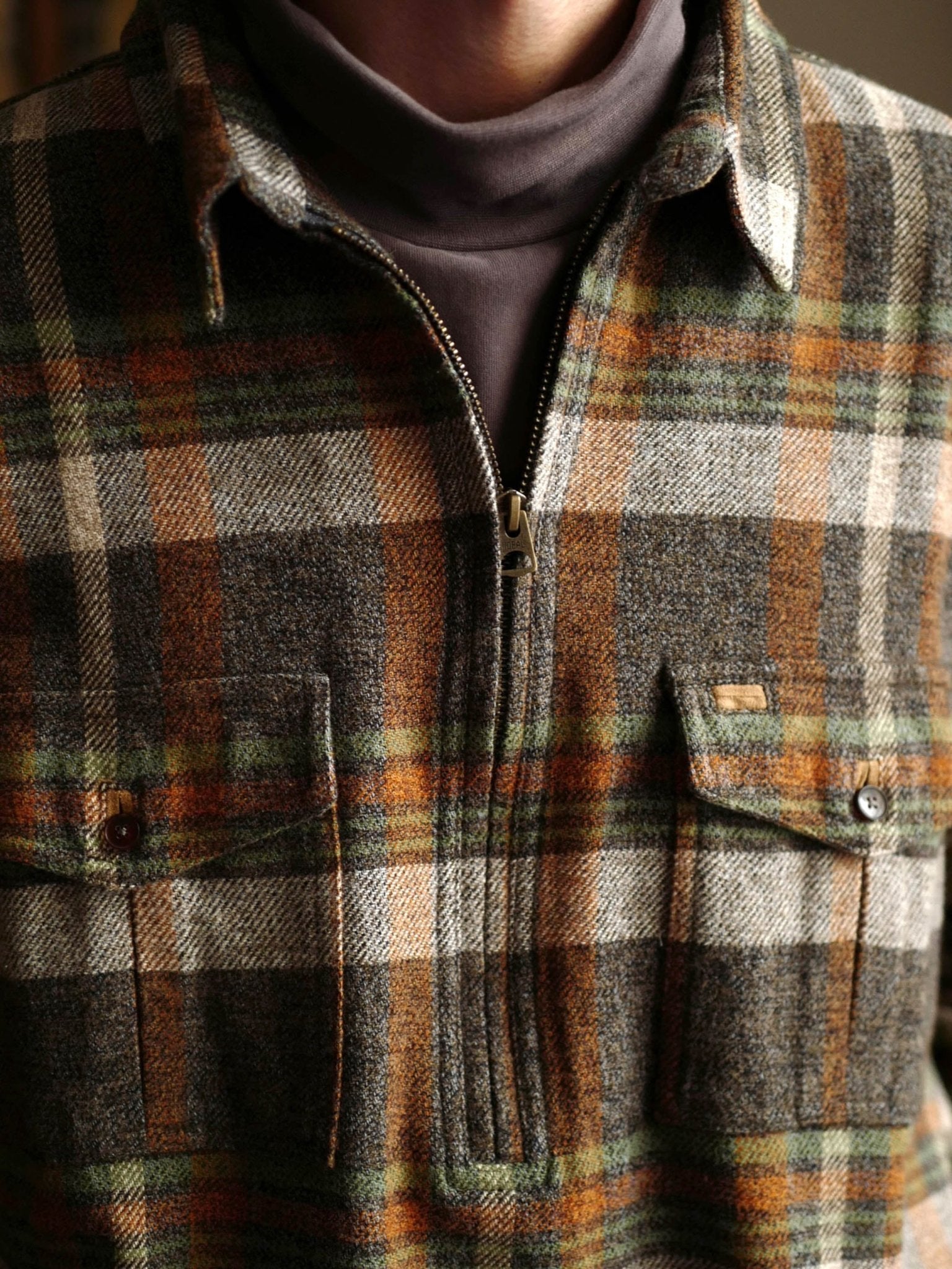 常に人気のあるシャツの中でも、プルオーバーシャツは伝統的なシャツに比べてよりカジュアルでレトロな雰囲気があります。三色糸と斜めのチェック柄によって、生地の色にヘザーグレーのようなカラー効果が加わり、古典的なレトロな雰囲気を持ち、プルオーバーシャツのディテールを豊かに演出しています。