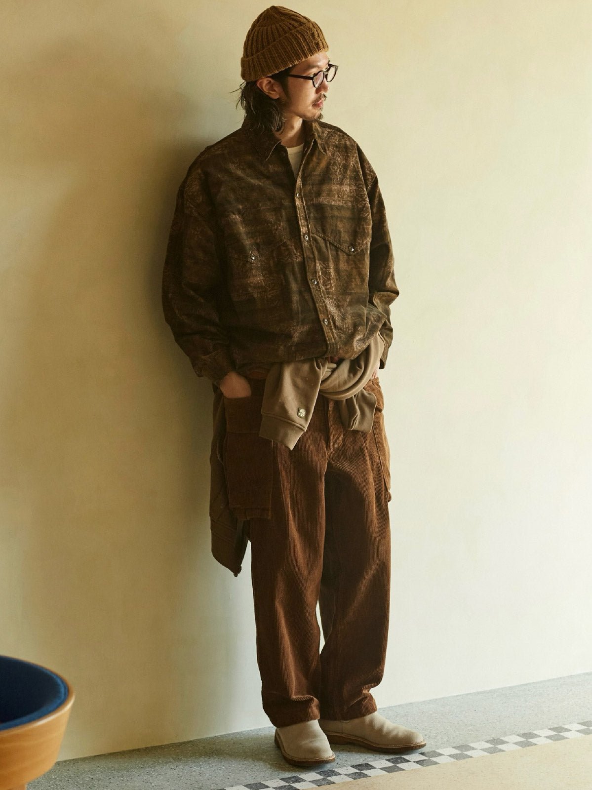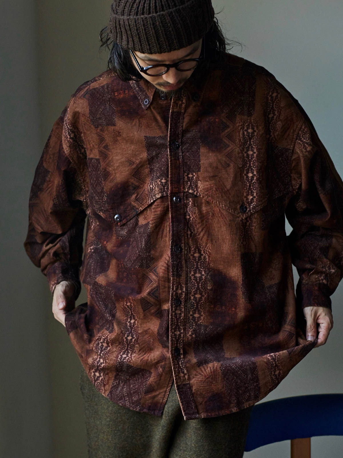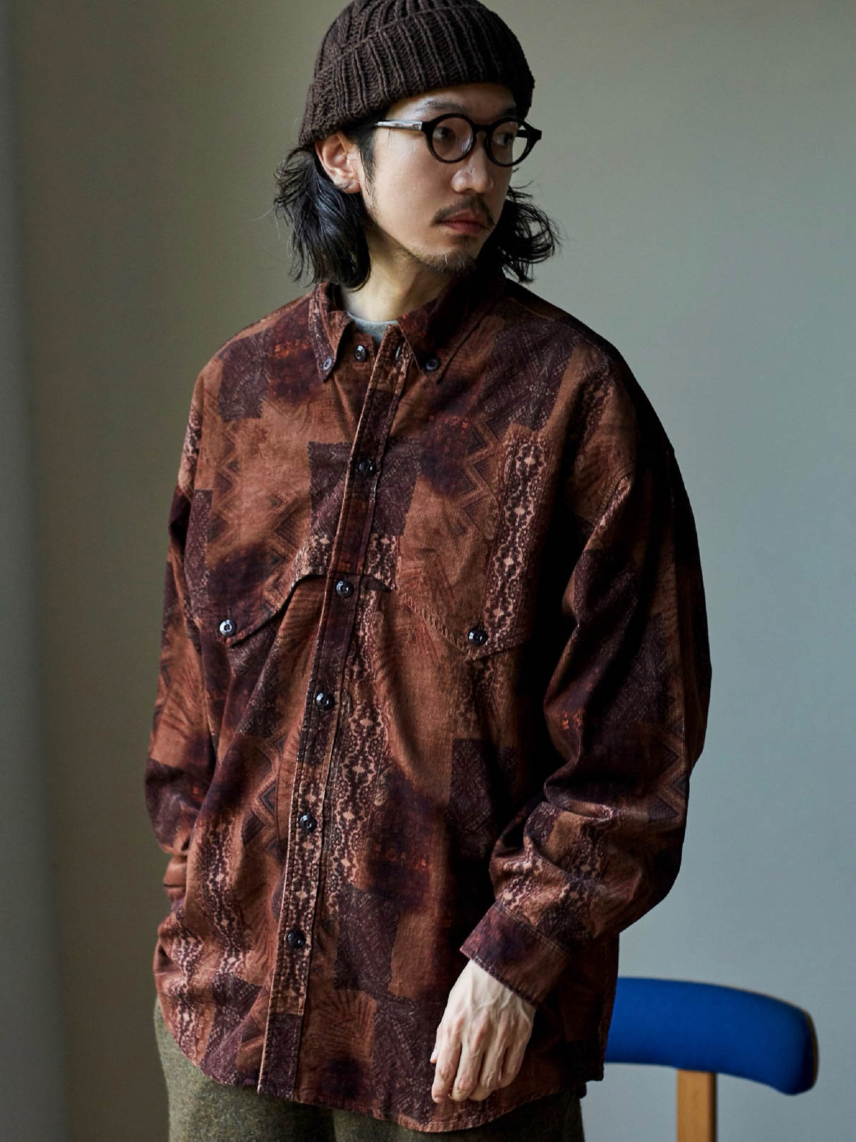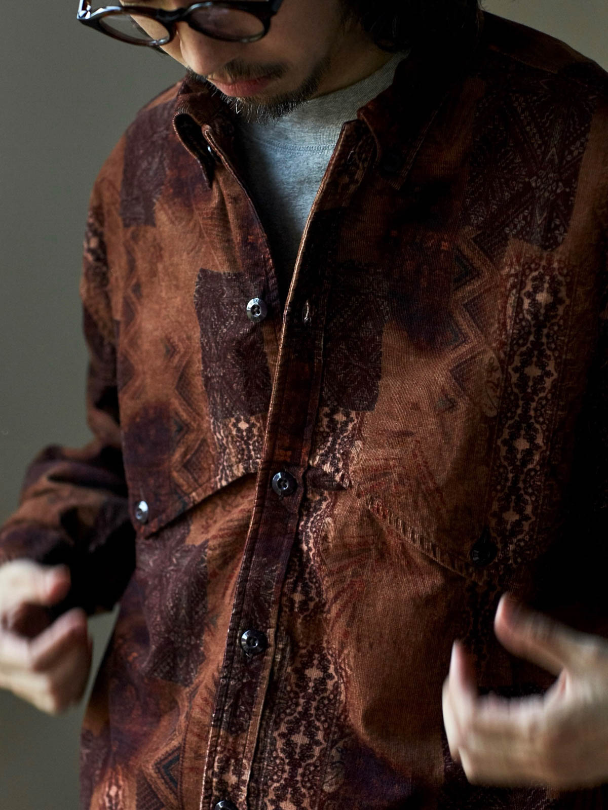 このコーデュロイウエスタンプリントシャツは、西部シャツのクラシックな要素を現代的な手法で再解釈し、レトロとモダンなスタイルを絶妙に融合させています。ウエスタンシャツは、初めて19世紀初頭に米国西部の開拓者とネイティブアメリカンによって実用的な衣類として作られました。このシャツは、伝統的なウエスタンシャツの特徴である両肩の三角形のパッチ、背中の三角形のライン、肘のパッチ、そして特徴的なフラップポケットを保持し、強調しています。