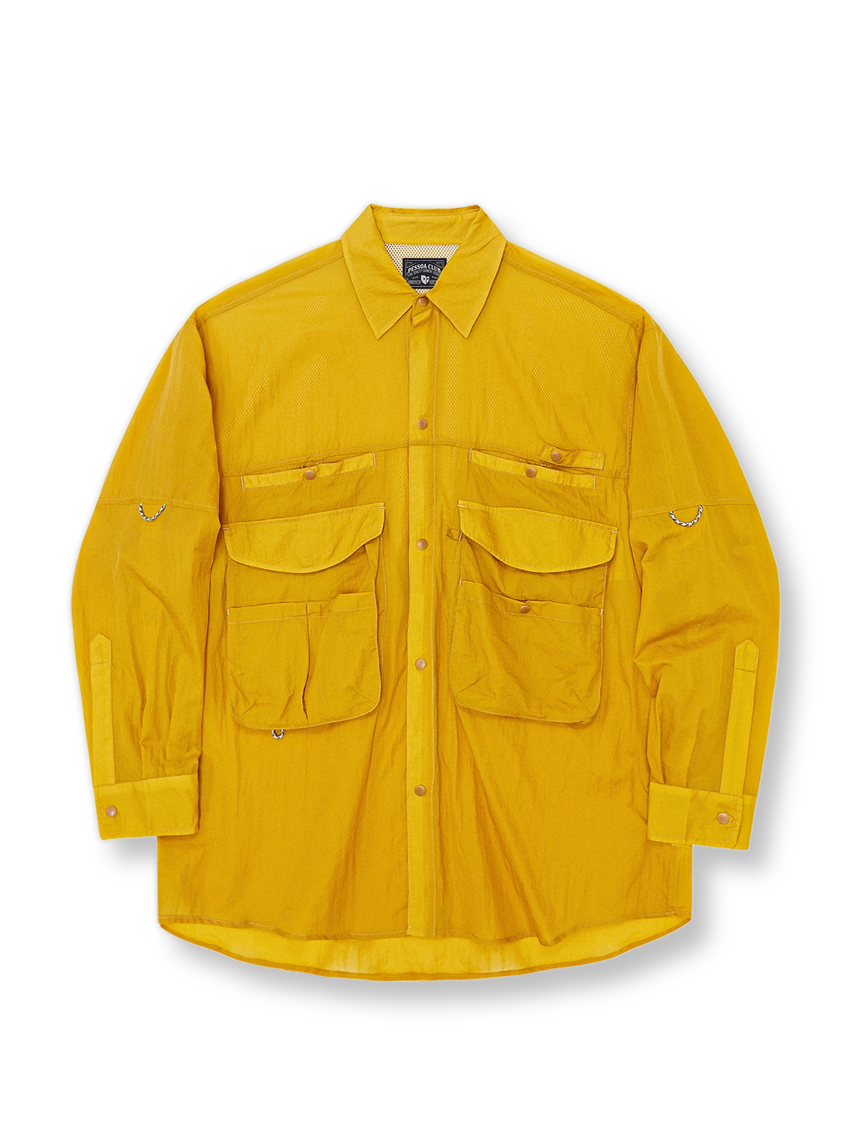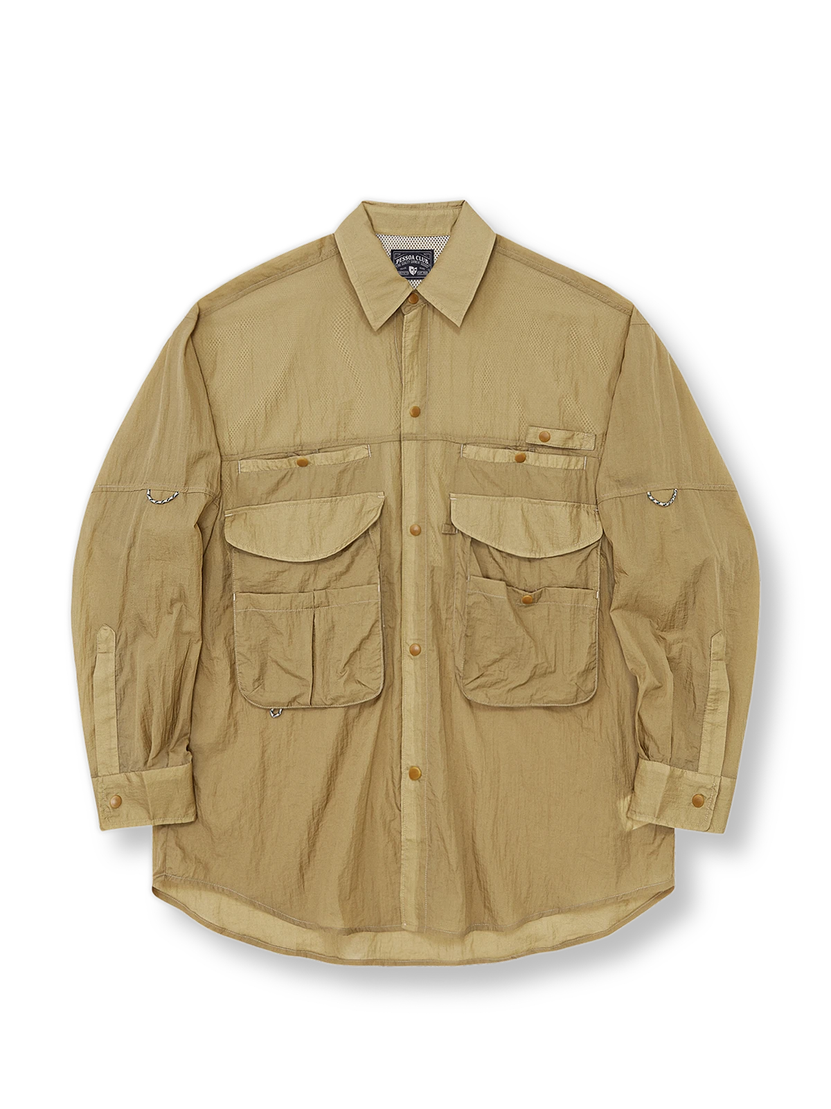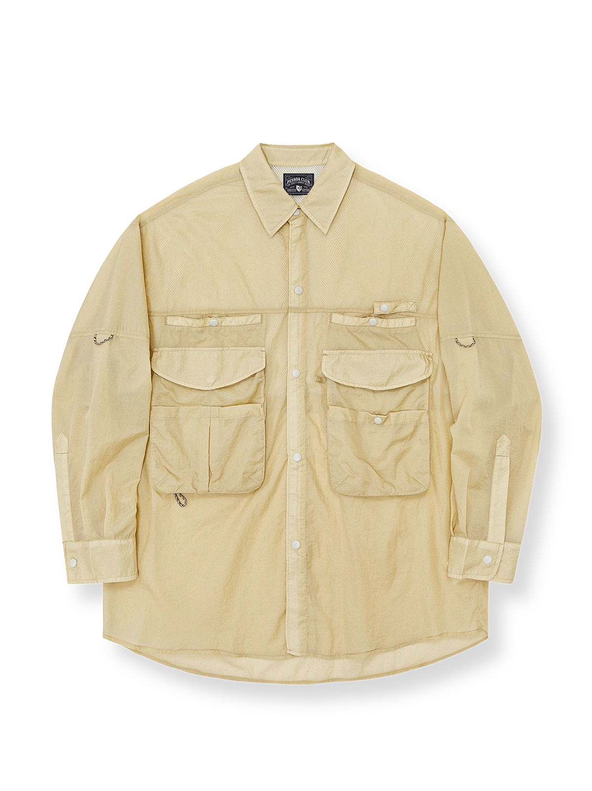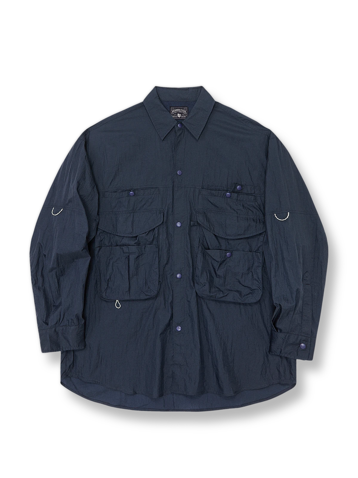 胸部には複数のポケットがあり、背中にはダブルレイヤーのメッシュ生地があり、通気性がさらに向上しています。袖口にはスリーブバンドがあり、夏に袖をまくる着用が容易です。