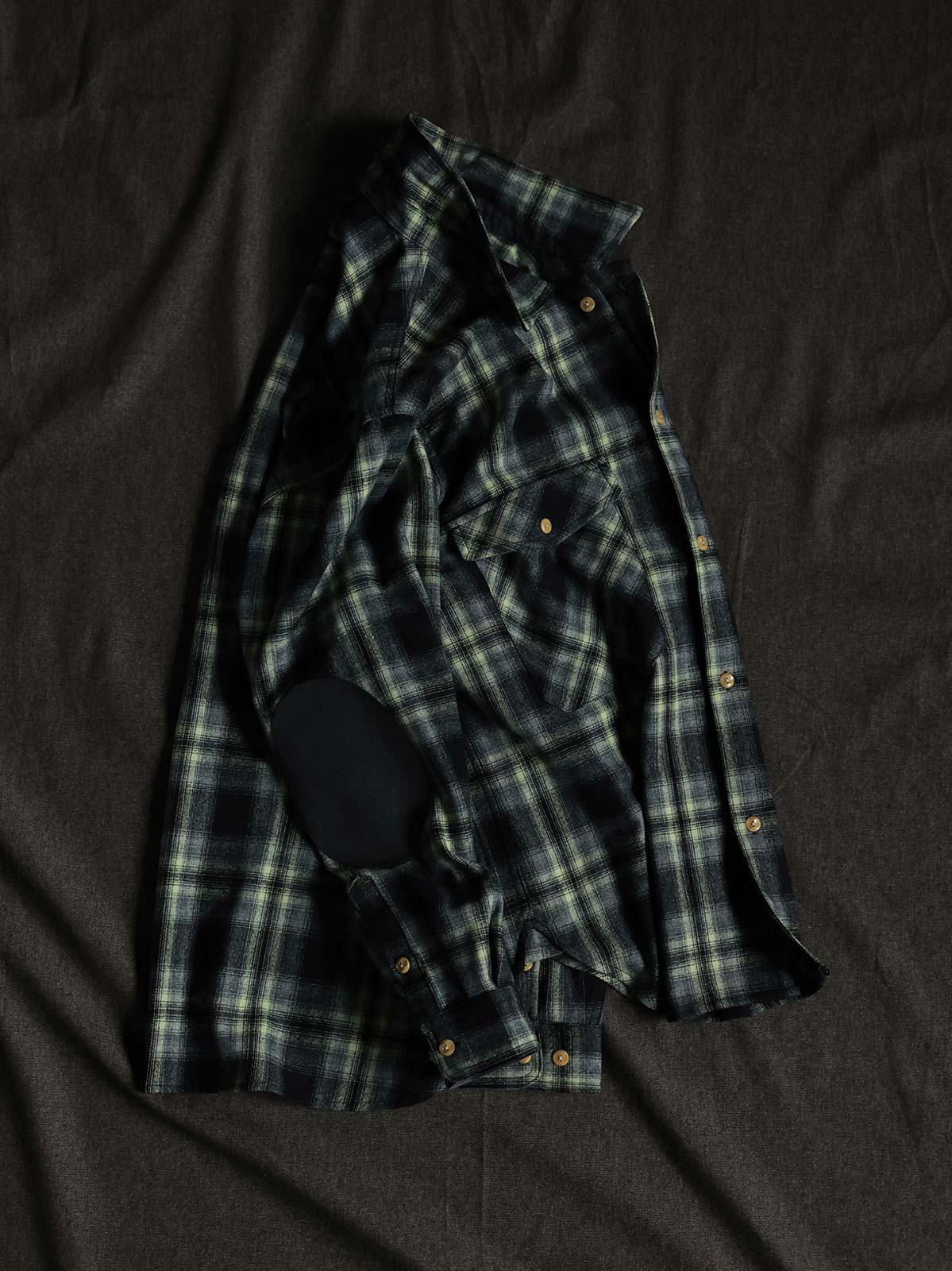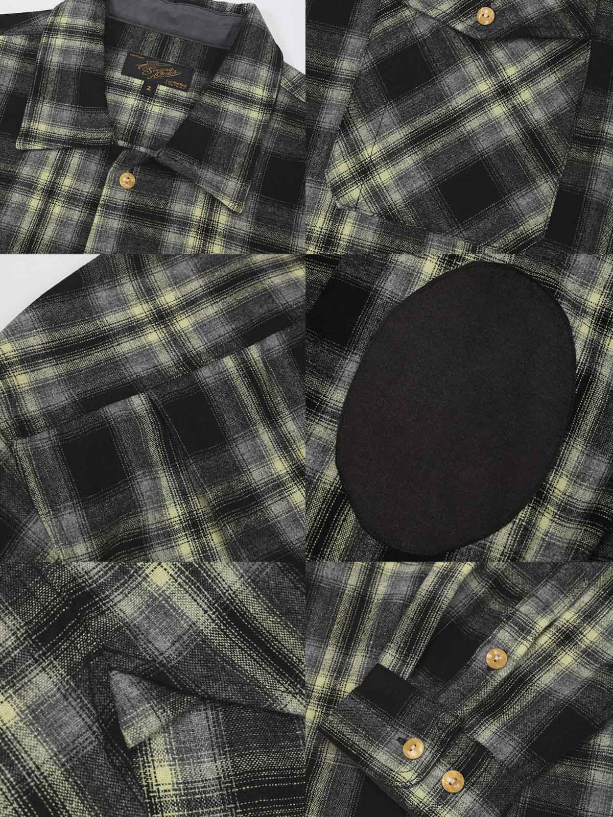 羊毛混紡のチェック生地を使用しており、このような素材選びはウエスタンシャツのレトロなスタイルを保ちつつ、現代の服の快適さと保温性を加えています。グレーグリーンのチェック柄はウエスタンチェックのクラシックな感じを復活させつつ、現代のファッションに簡単に合わせられます。肘の大きな補強は、伝統的なウエスタンシャツへの敬意を表しつつ、耐久性を向上させています。