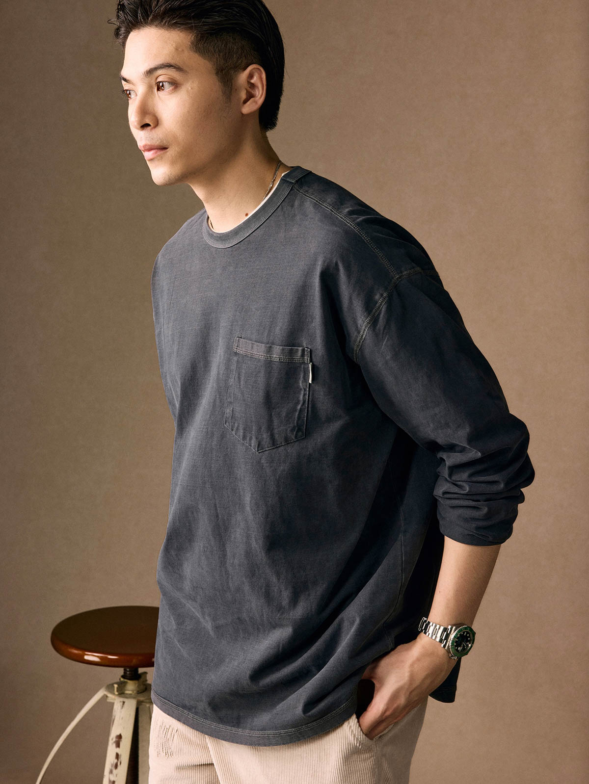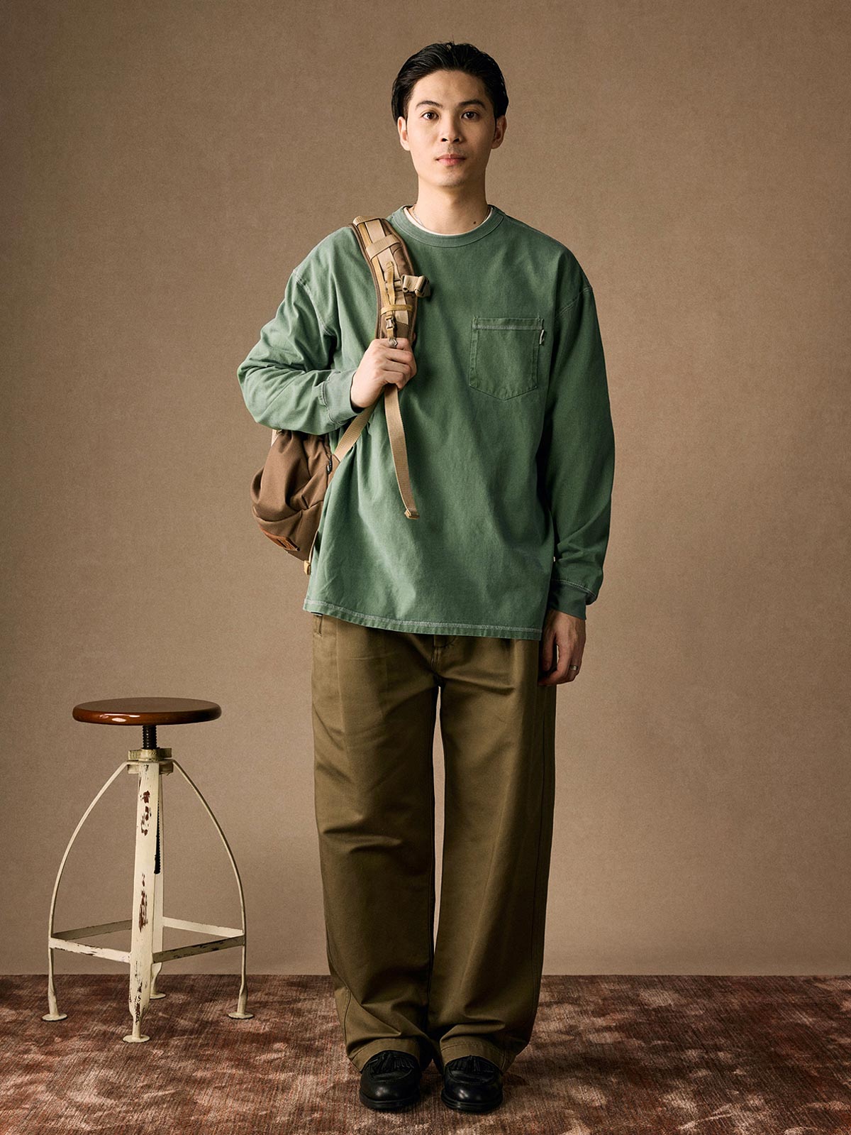 1950年代のフィッシングカーディガンをベースにデザインされ、300gのコットン100%ヘリンボーン生地を使用。水洗い加工で独特のヴィンテージ感と風合いを実現しています。ノーカラーデザインが、インナーとの自然なレイヤードスタイルを可能にし、スウェットやシャツとの組み合わせが容易。裾部分にある二重構造の大きなポケットが、実用性を高めつつ、クラシカルなアクセントをプラスします。胸ポケットのボアトリムや、背面に施されたチェーン刺繍のブランドロゴが、ヴィンテージスタイルをさらに引き立て、ディテールにまでこだわった一着です。裏地にはフリースを採用し、秋の寒さから身を守る保温性も備えています。