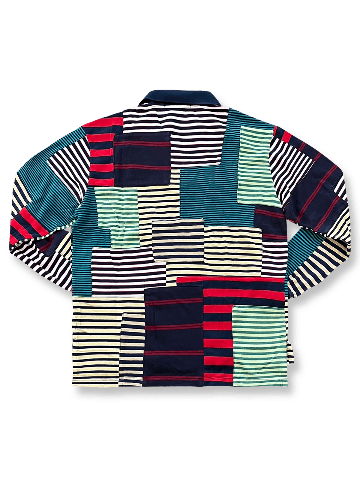 コントラストのあるレトロなパッチワークデザインで、ユニークなスタイルと高い着心地を実現した長袖シャツです。
