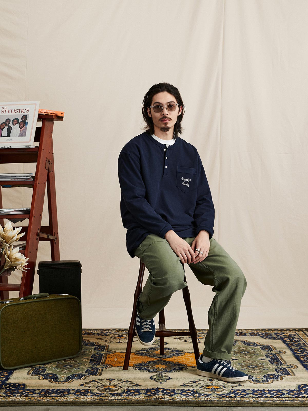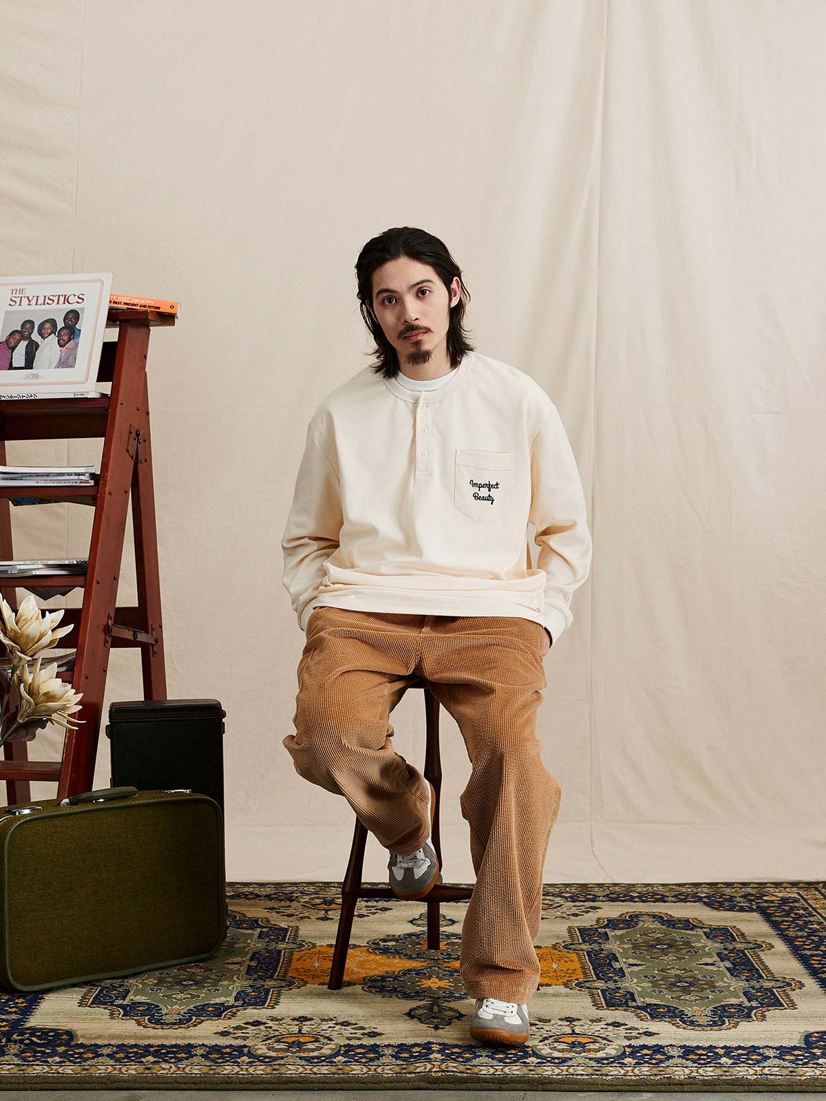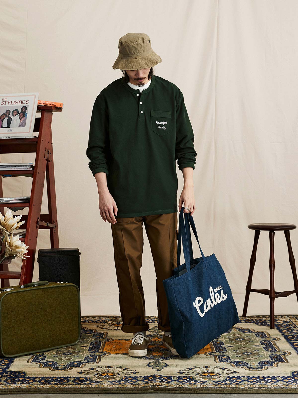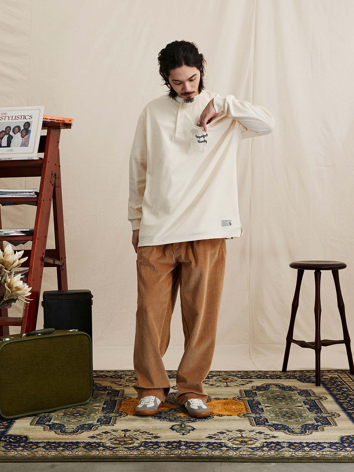 ヘンリーネックTシャツは、18世紀のボート競技から起源し、その襟なしデザインで首元の摩擦を軽減し、従来のポロシャツよりも涼しく快適です。半開きの襟デザインにより、着脱が簡単で通気性も向上し、インナーとしてもアウターとしても適しています。本Tシャツは230gのコットン混紡ワッフル生地を使用し、素材は41.3%コットン、53.4%ポリエステル、5.3%ポリウレタンで構成されています。細かい格子模様のテクスチャーが強く、ルーズフィットのシルエットが快適で通気性を提供します。サイドシームと裾の縫製にはハッスルステッチを採用し、視覚的および触感的に独特の魅力を演出しています。裾のスリットデザインとドロップショルダーのシルエットが自然でリラックスした着用感を提供し、レトロなスタイルを強調しています。胸ポケットのデザインはテクスチャーを巧みに分け、ユニークなデザイン感を増しています。このTシャツは、アイボリー、ネイビー、ダークグリーンの3つのクラシックな色合いで展開され、様々なコーディネートに適しており、秋冬の季節に多彩なレトロな風情を加えます。