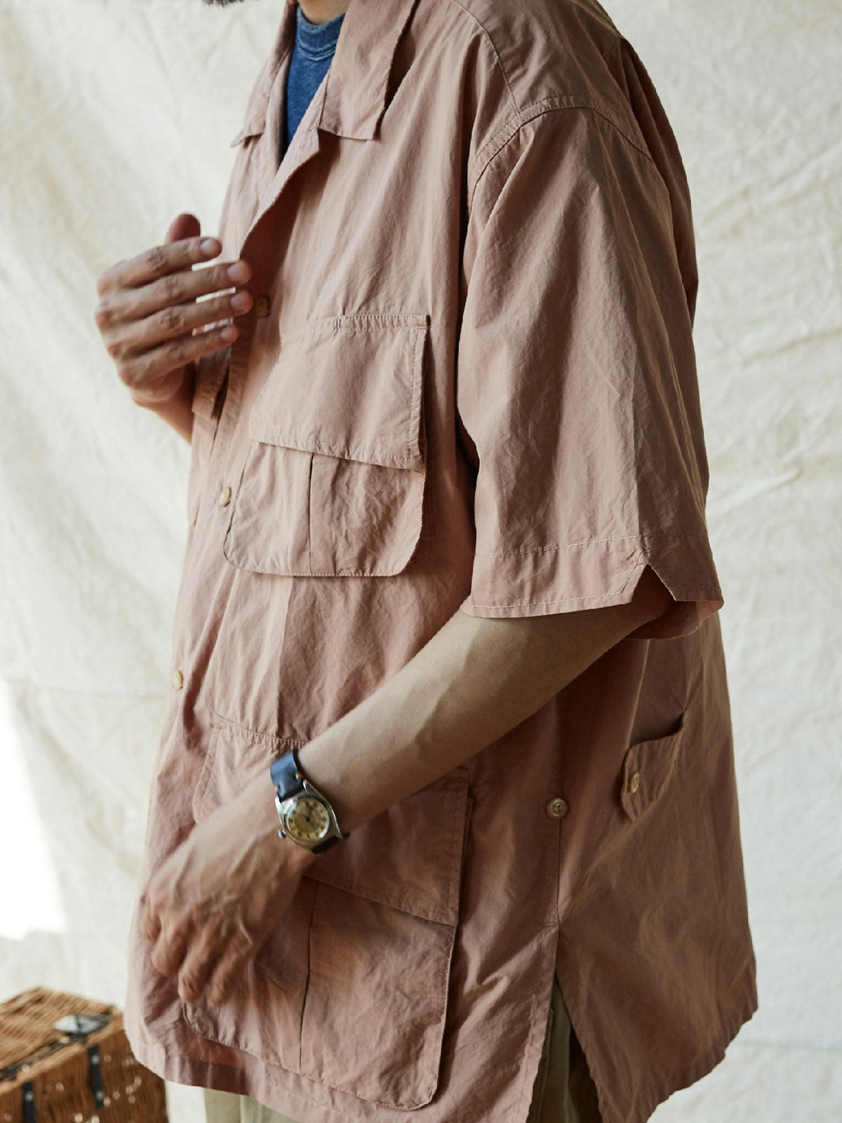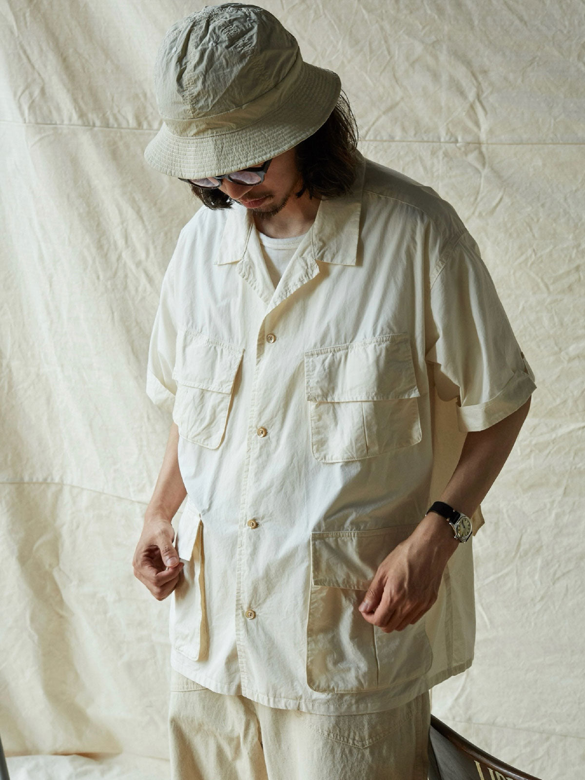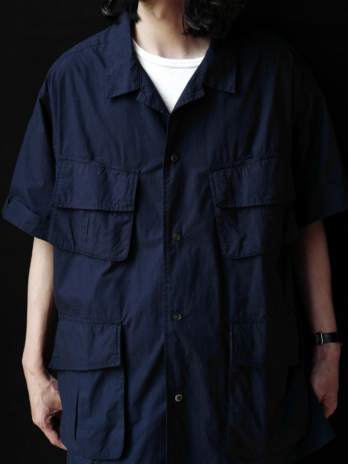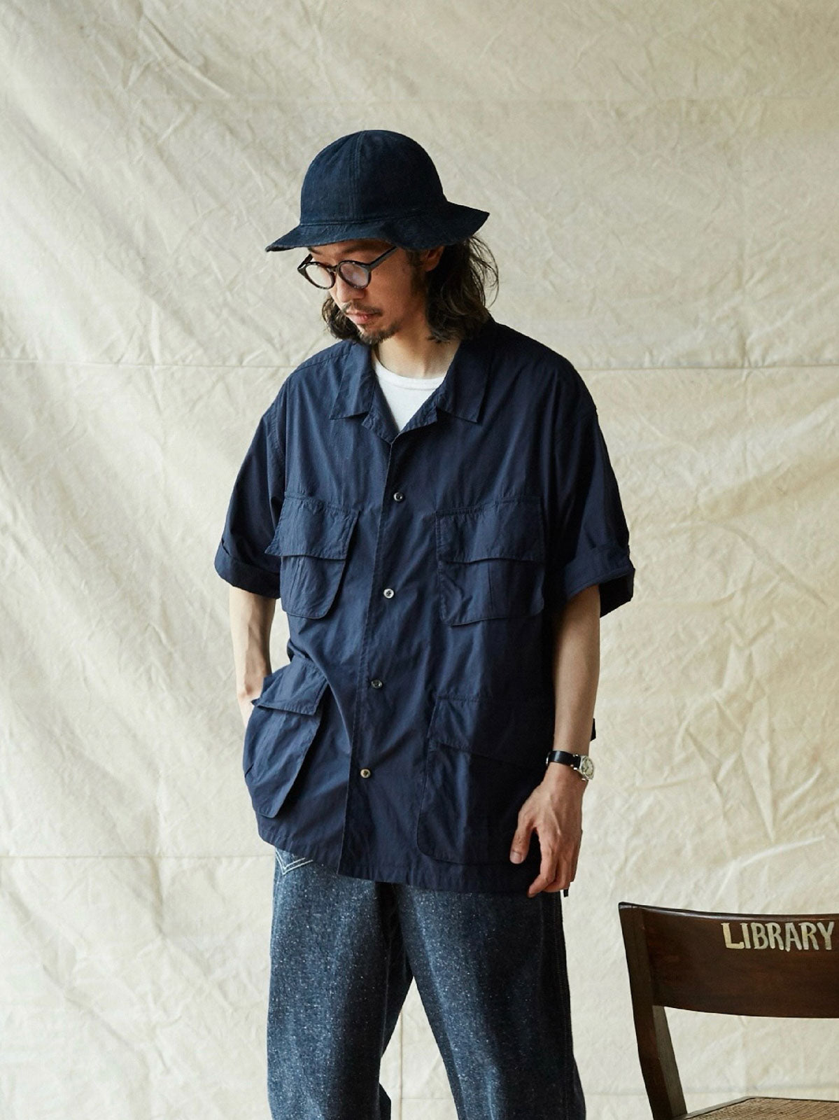 この半袖シャツは、クラシックなファティーグジャケットデザインとモダンな高支綿素材を融合し、優雅さと実用性を兼ね備えた夏の着用体験を提供する。