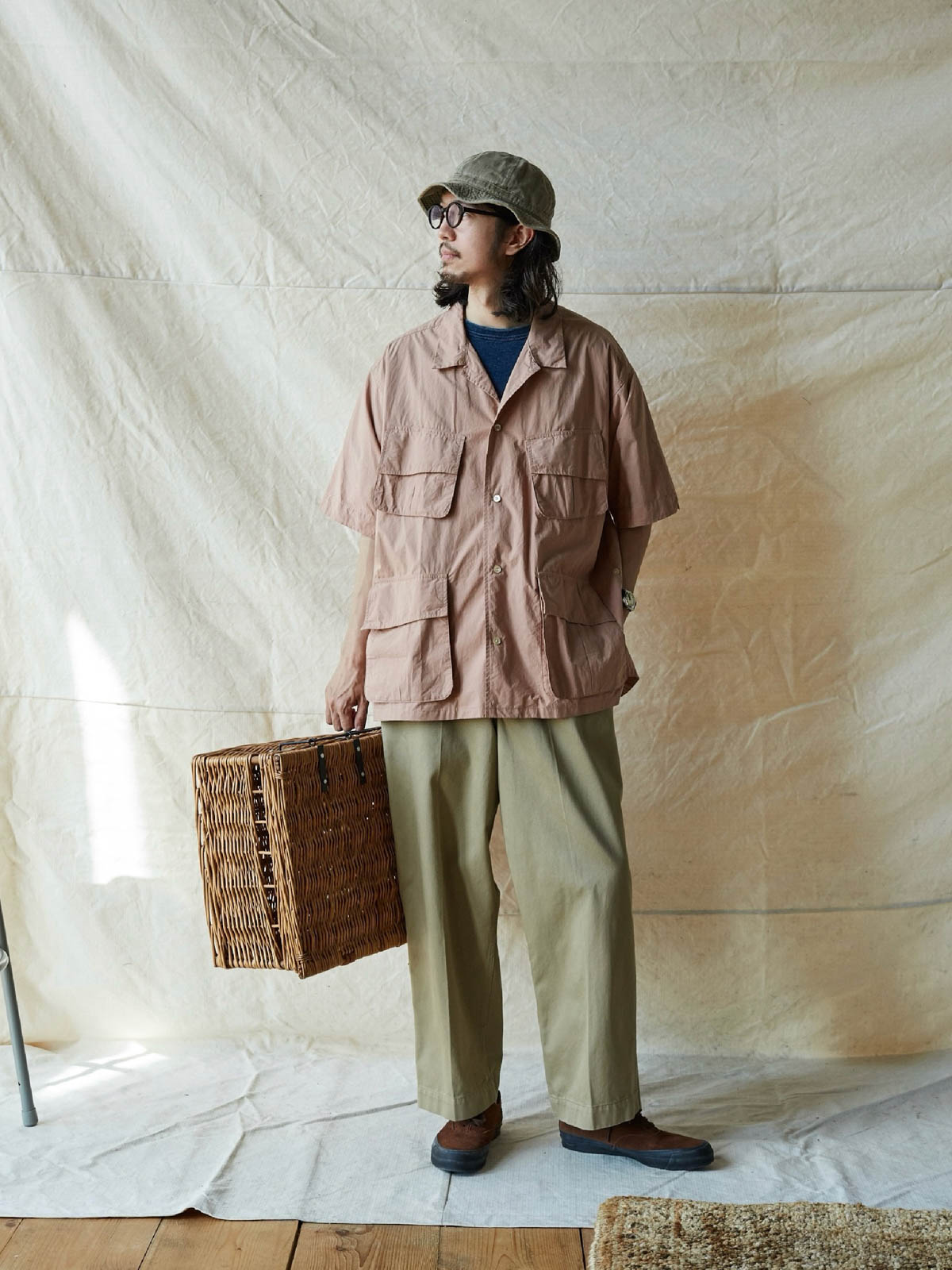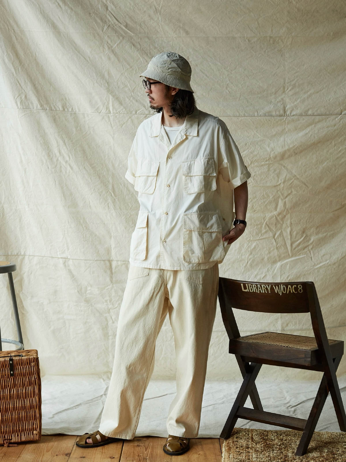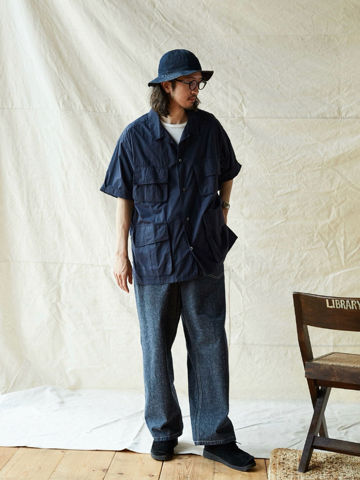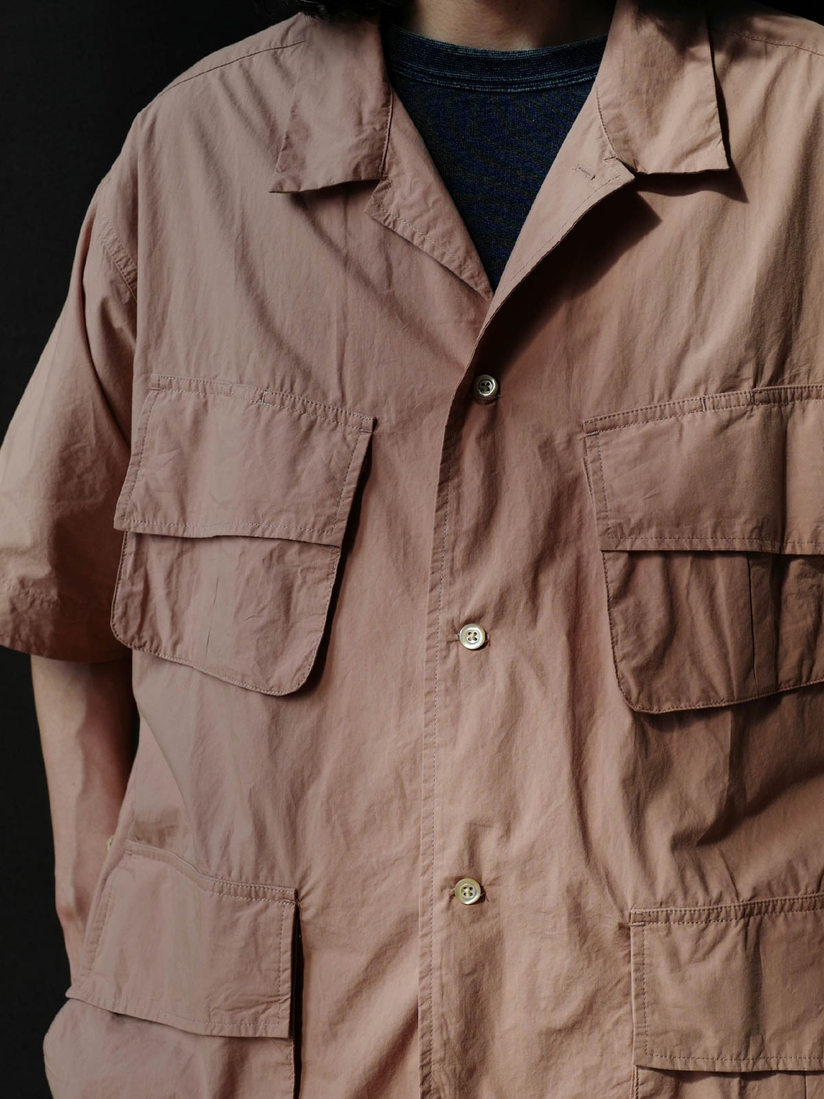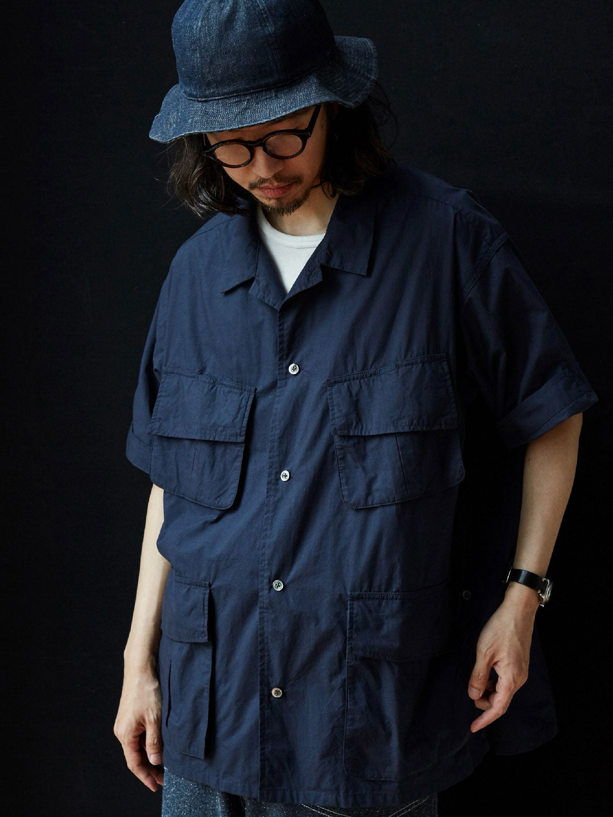 この半袖シャツは、クラシックなファティーグジャケットデザインとモダンな高支綿素材を融合し、優雅さと実用性を兼ね備えた夏の着用体験を提供する。