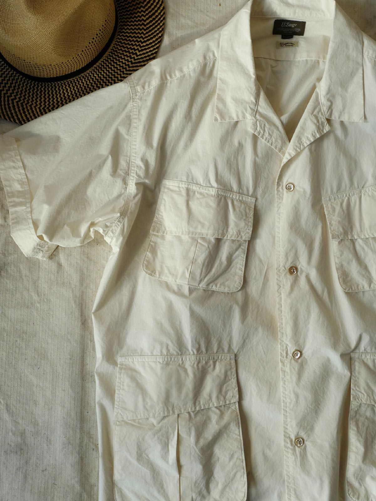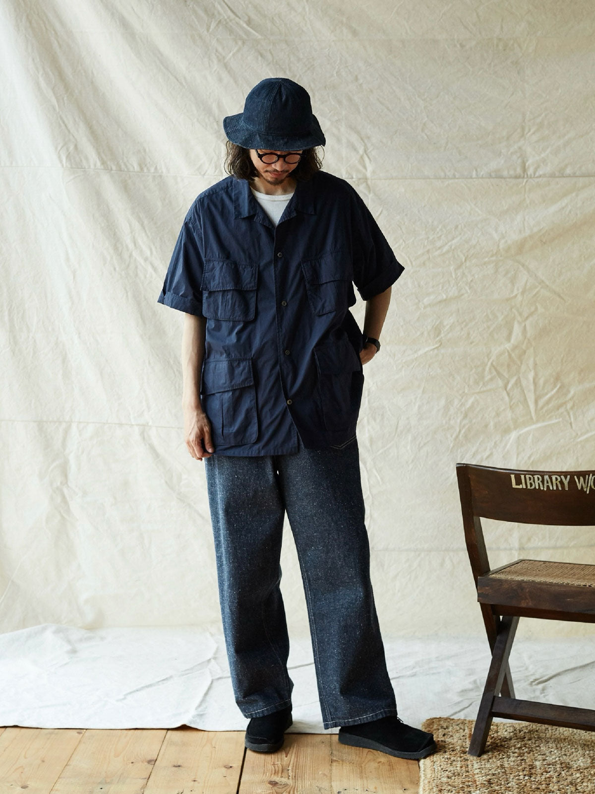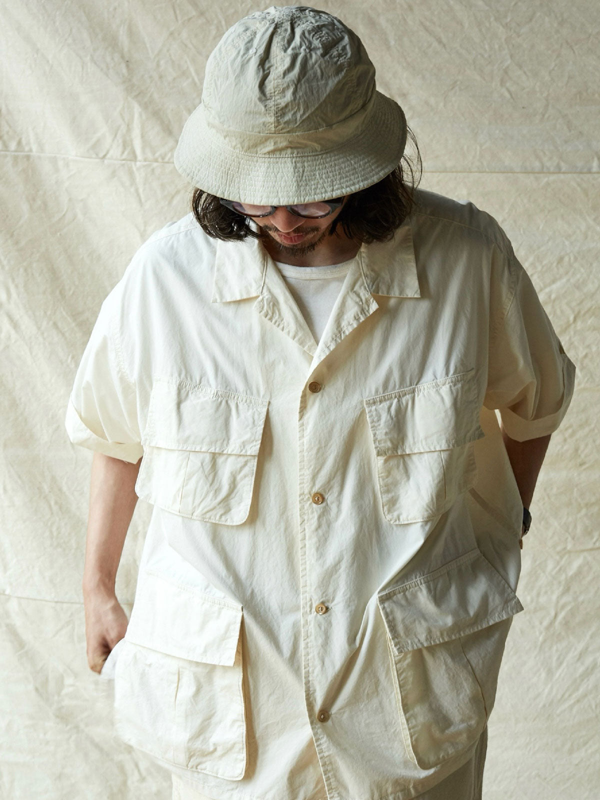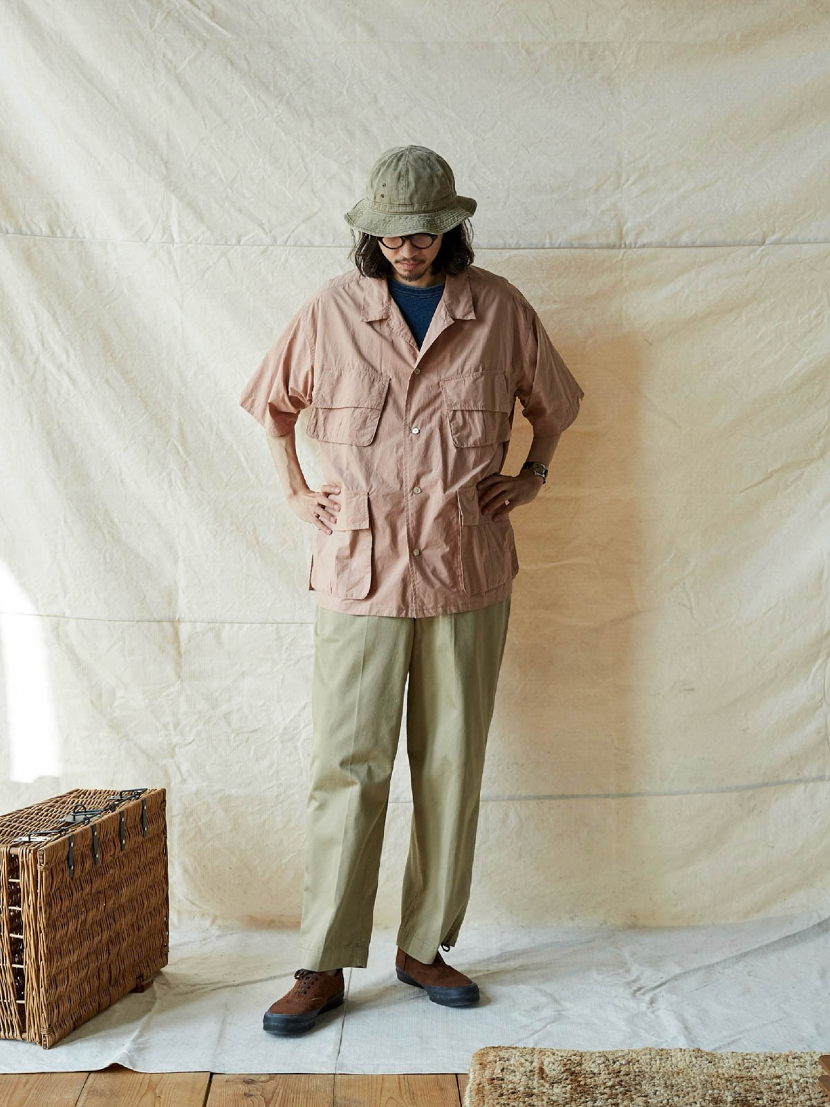 この半袖シャツは、クラシックなファティーグジャケットデザインとモダンな高支綿素材を融合し、優雅さと実用性を兼ね備えた夏の着用体験を提供する。