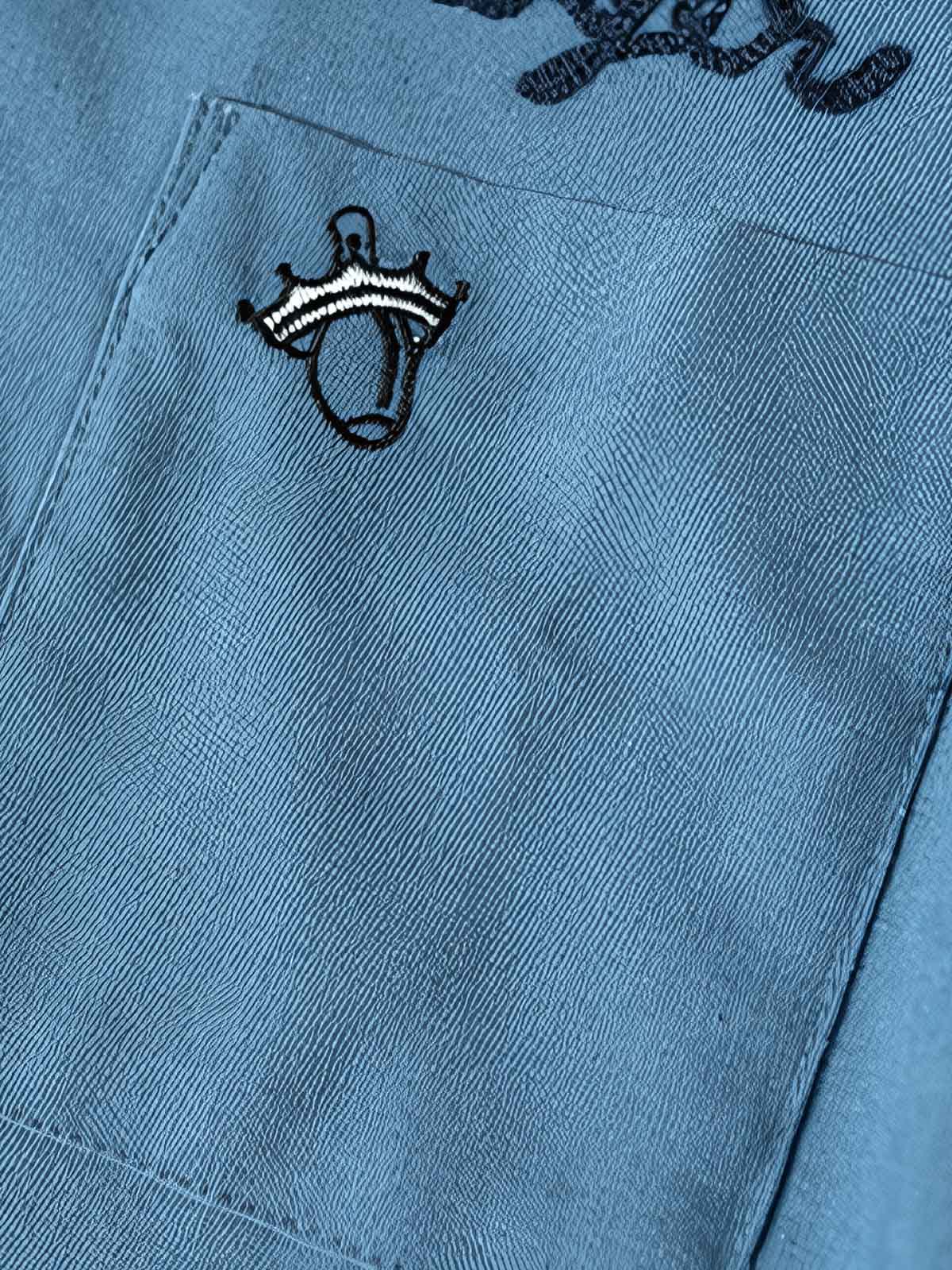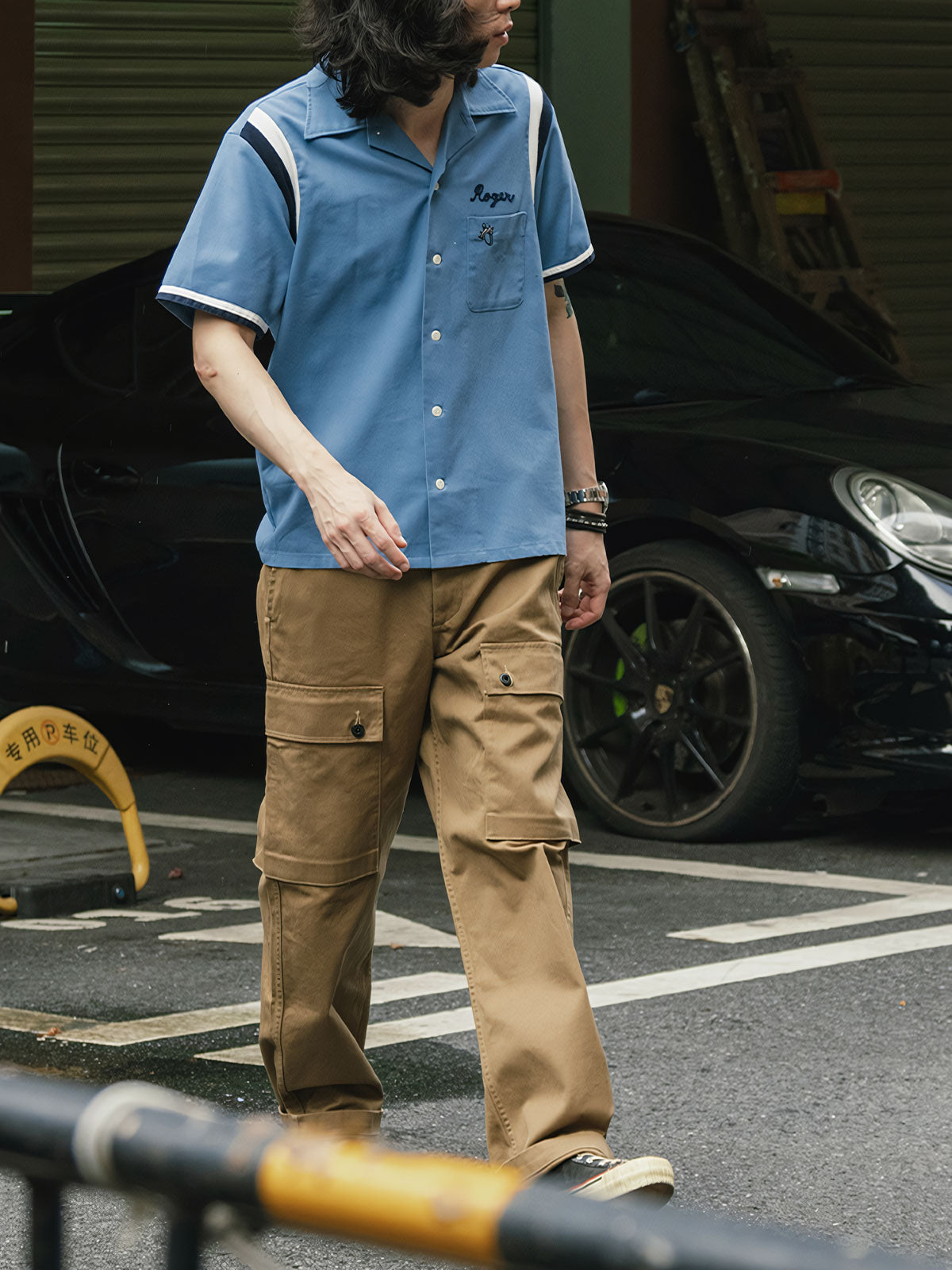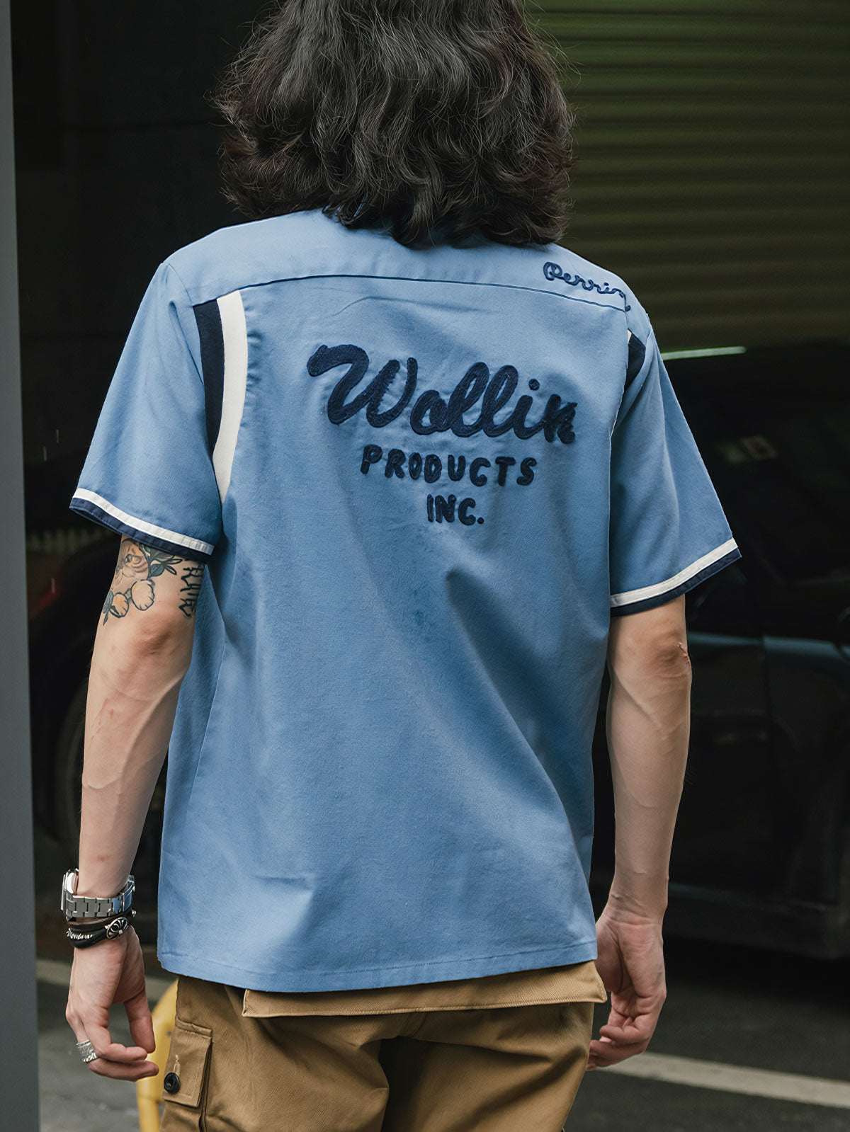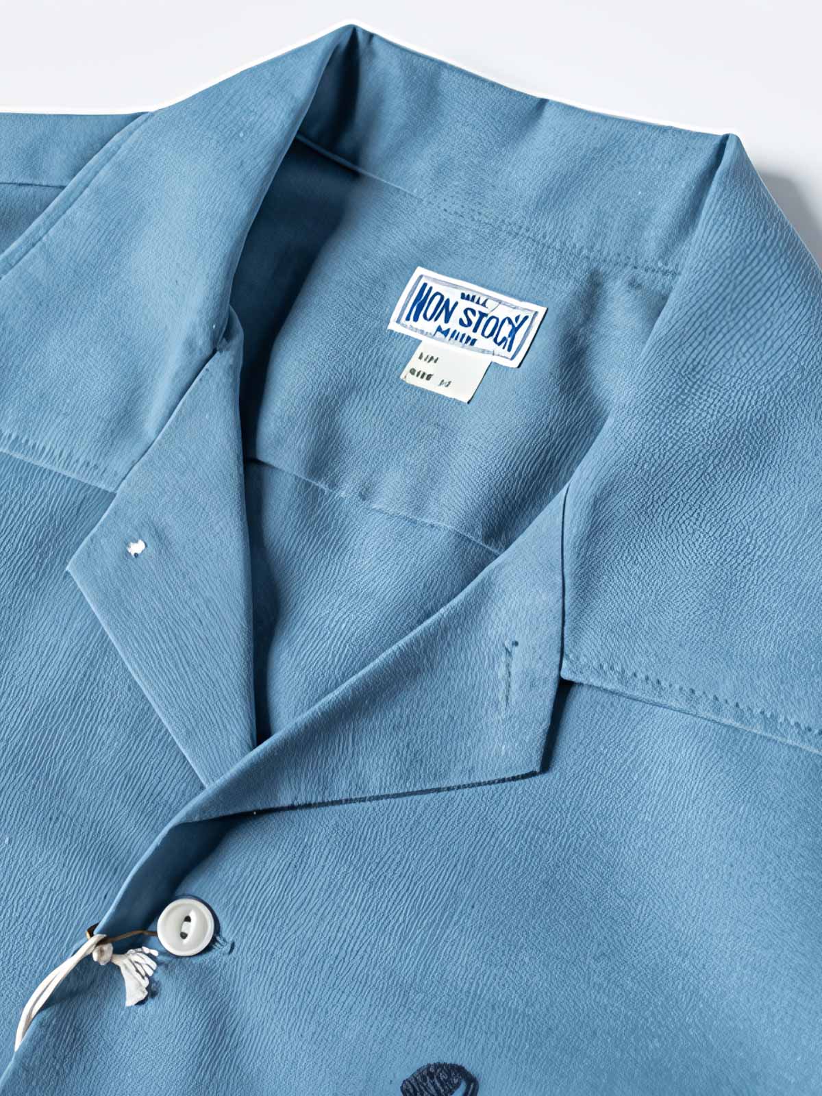 このシャツは、クラシックなボウリングスタイルにインスパイアされたデザインで、刺繍のディテールと快適な着心地を提供します。