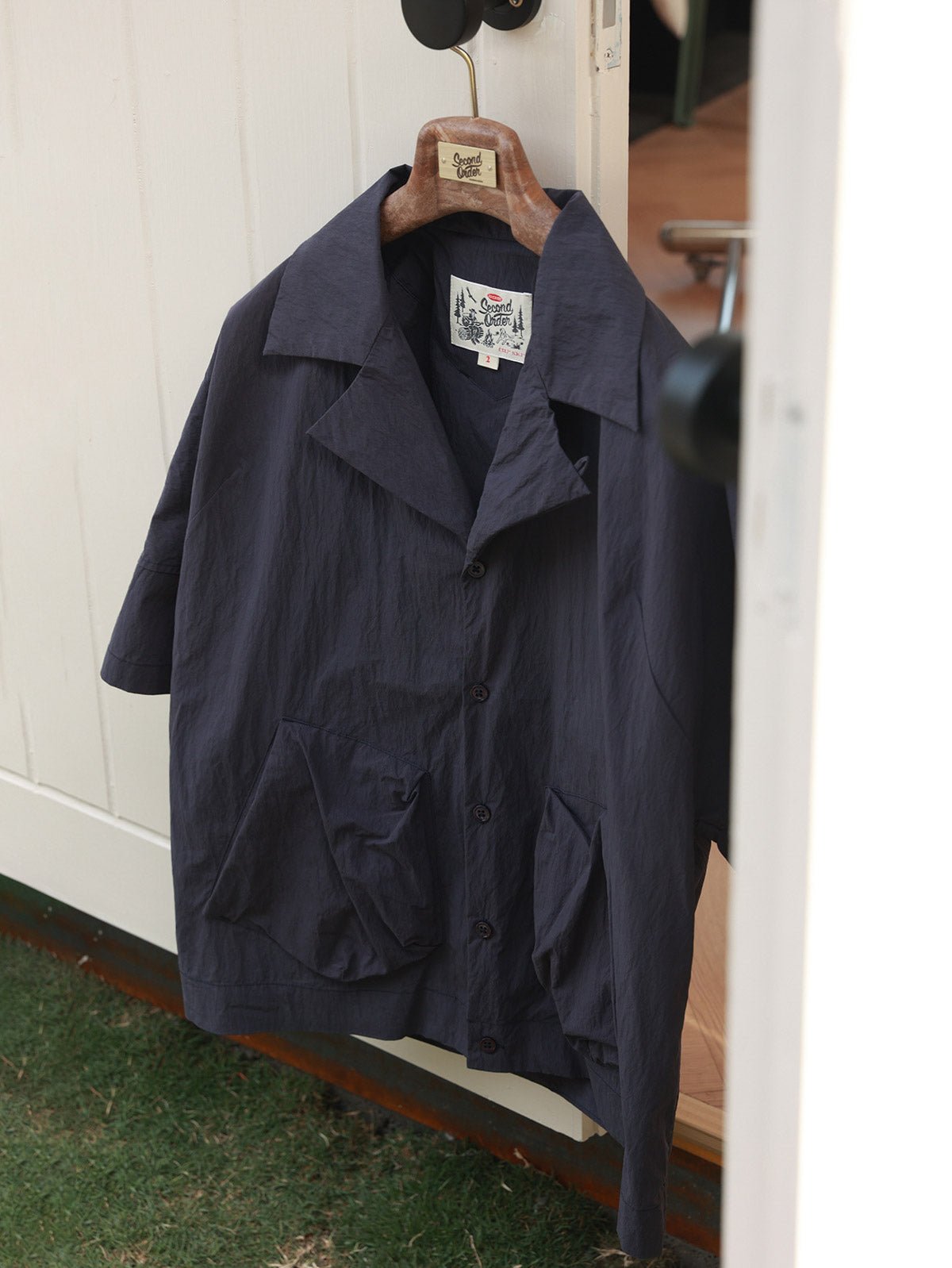 このキューバカラーシャツは、60%コットンと40%ナイロンの混紡素材で作られており、軽量で乾きやすく、形状が崩れにくい特徴があります。生地には軽いしわの質感と上品な光沢があり、18世紀の南米起源の伝統的な衣服であるグアヤベラを元にしたデザインです。V字形のフラットカラーとワイドフィットのカットが特徴で、1950年代に流行しました。襟元には隠しボタンがあり、閉じることができ、幅広の襟と快適なワイドフィットシルエットが特徴です。左右のポケットは隠しYKKファスナー付きで、アウトドアスタイルと実用性を兼ね備えています。半袖のラグランスリーブと非対称の背面プリーツデザインにより、十分な動きやすさが提供され、ショート丈のデザインはレイヤリングにも最適です。裾の両側には調節可能なボタンがあり、ウエストを簡単に調整でき、遊び心と実用性をプラスします。クラシックなカーキ色と使いやすいライトグリーンが、ヴィンテージでエレガントなスタイルを演出します。
