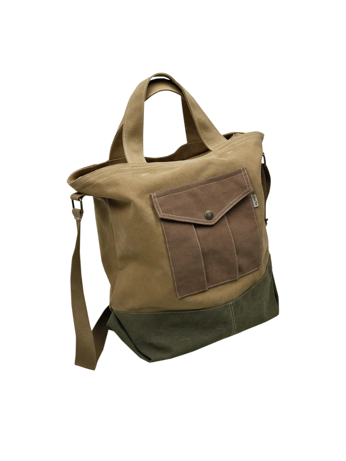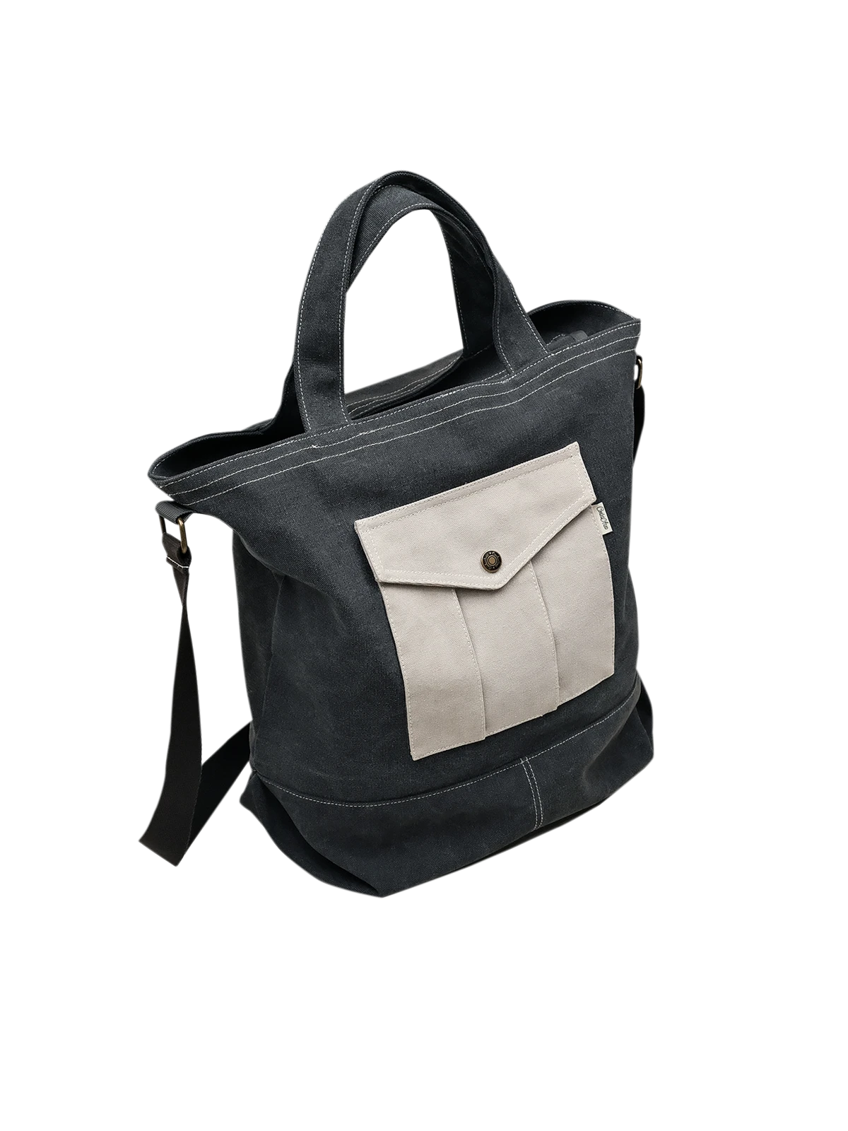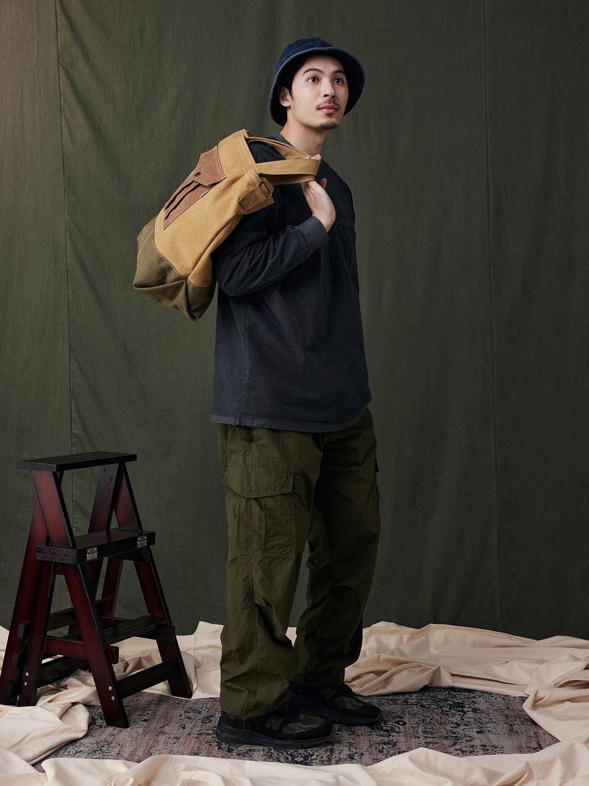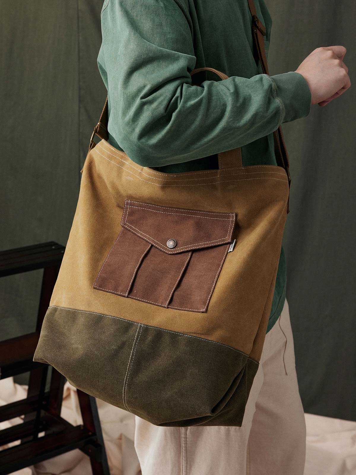 高品質のウォッシュドキャンバスを使用し、精密な縫製技術を組み合わせることで耐久性が向上しています。時間の経過と共に表れる摩耗はバッグにユニークな個性をもたらします。カラーブロックのポケットデザインは、ファッション性と実用性を両立させています。