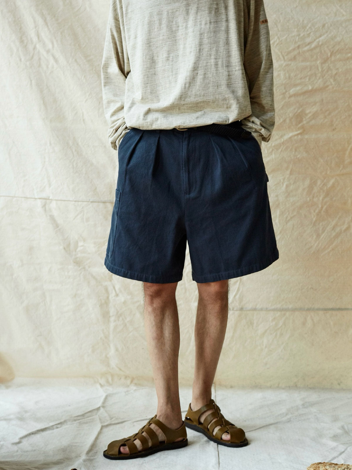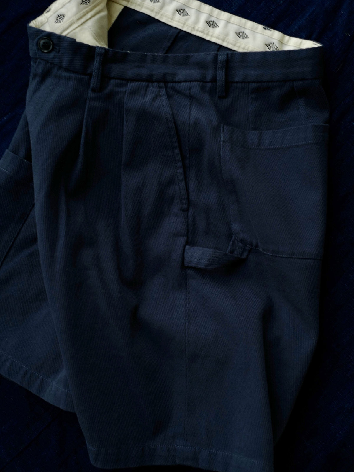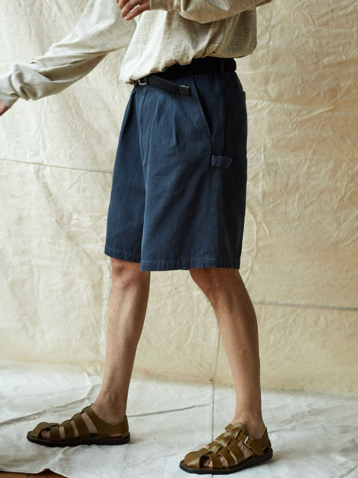 このヴィンテージダブルプリーツショーツは、クラシックなペインターパンツの機能性デザインと現代の快適性を融合し、夏の実用的かつスタイリッシュな選択肢を提供。