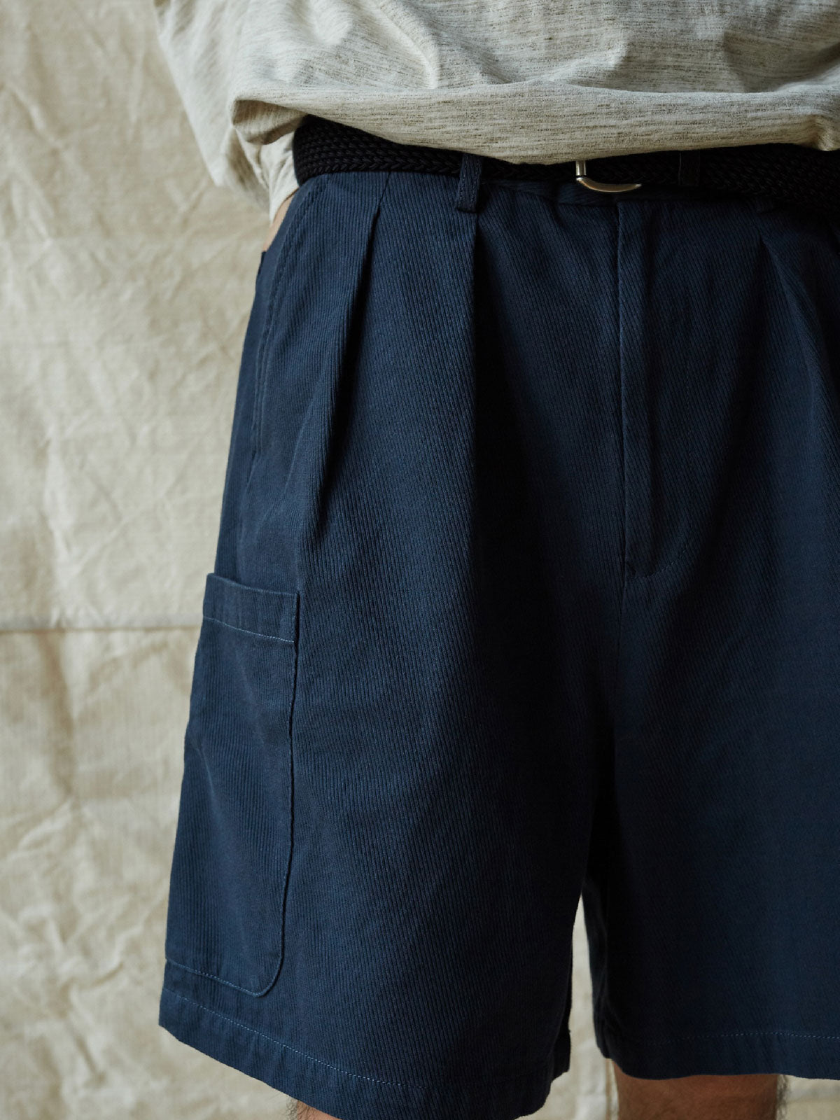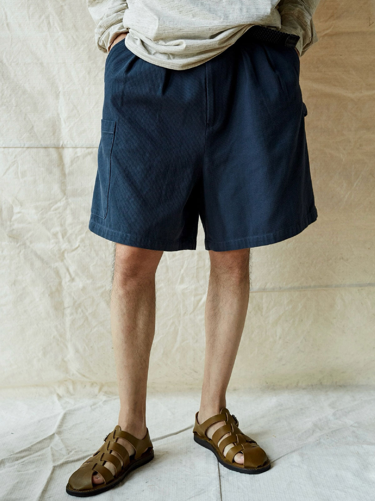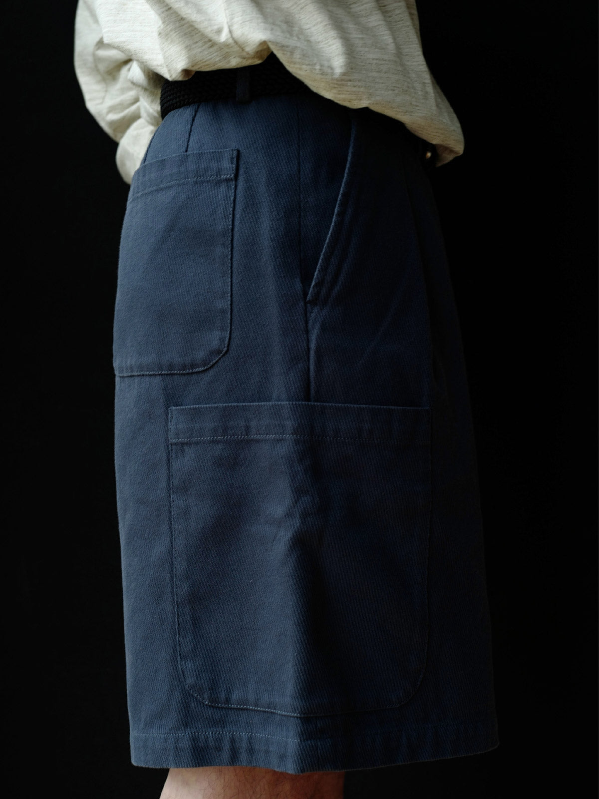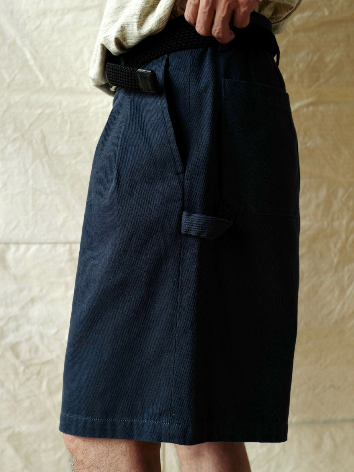 このヴィンテージダブルプリーツショーツは、クラシックなペインターパンツの機能性デザインと現代の快適性を融合し、夏の実用的かつスタイリッシュな選択肢を提供。